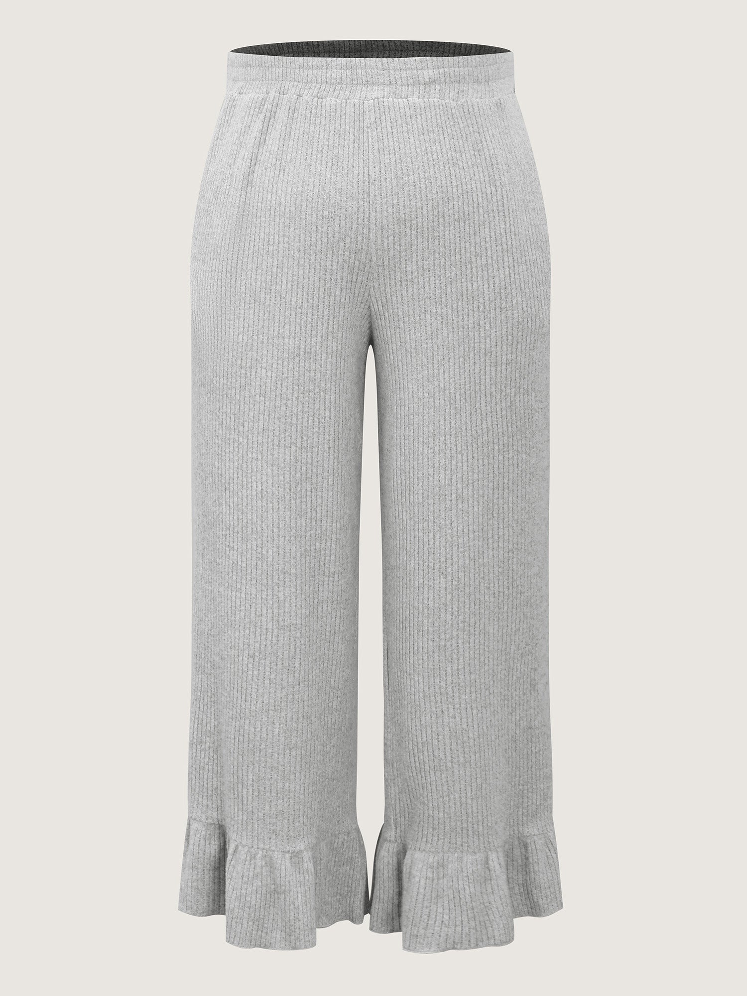 Shop Ruffled Edge Ribbed Lounge Bottoms now and redefine your style with confidence at BloomChic. Tailored for mid and plus-size women. This trendy Loungewear Women, sizes 10-30. Color:LightGray;Style:Leisure;Neckline:Non;Sleeve Type:Sleeveless;Prints:Non;Details:Ruffles, Texture;Pocket:Slanted pocket;Belt:No-belt;Closure Type:Non