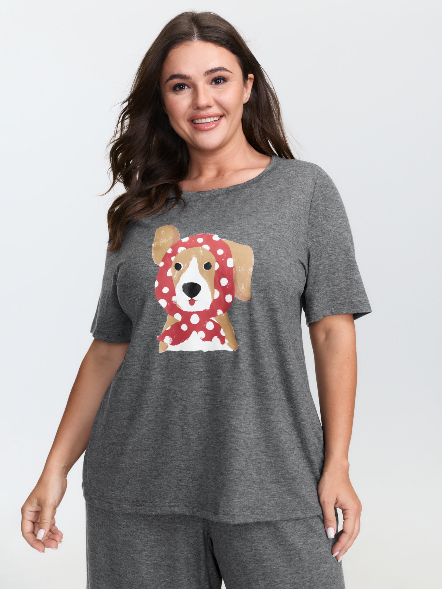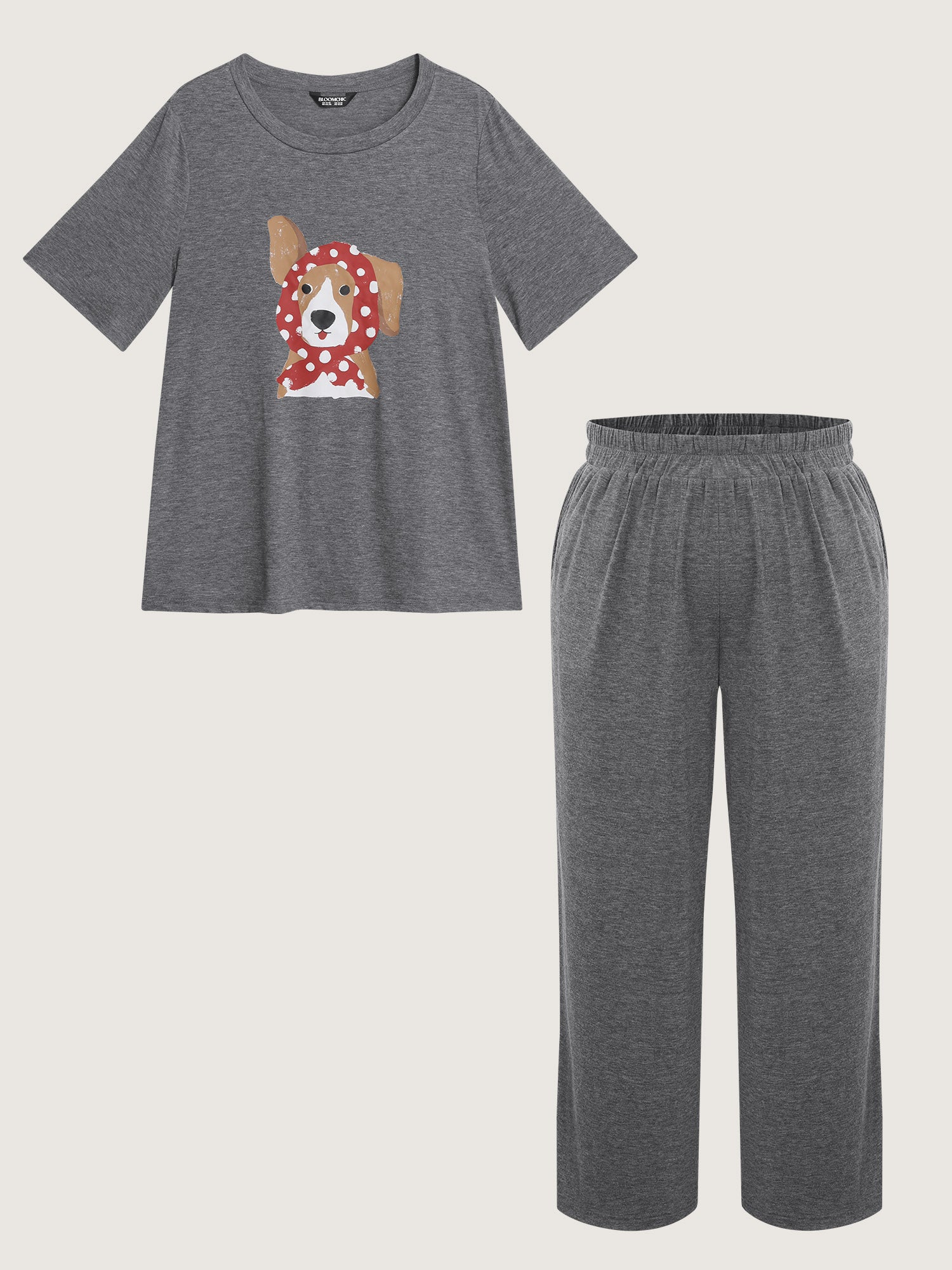 Shop Supersoft Puppy Print Lounge Set now and redefine your style with confidence at BloomChic. Tailored for mid and plus-size women. This trendy Loungewear Women, sizes 10-30. Color:Dim Gray;Style:Leisure;Neckline:Round Neck;Sleeve Type:Regular Sleeve;Pattern Type:Animals;Prints:Non;Pocket:Side seam pocket;Belt:No-belt;Closure Type:Non