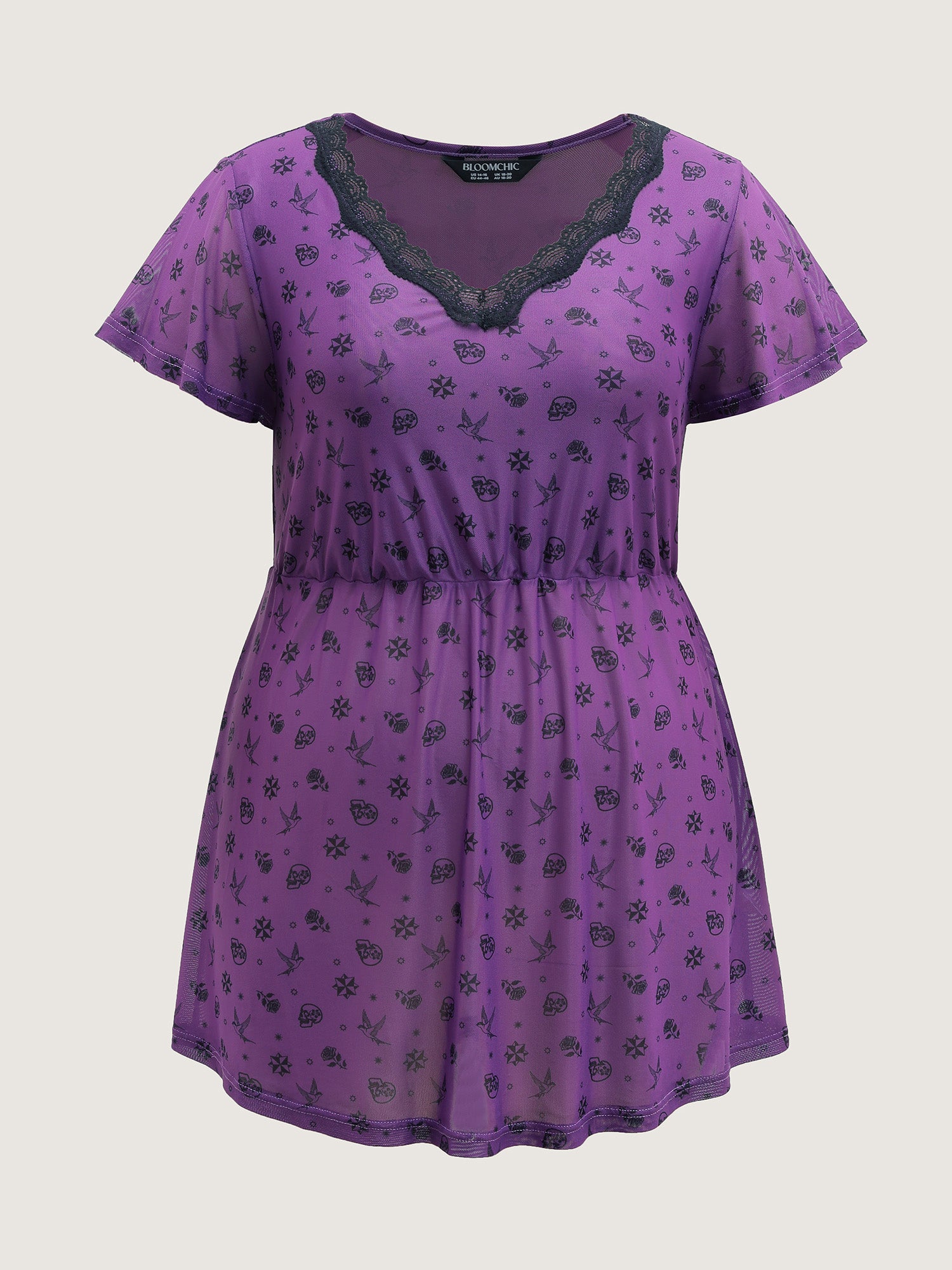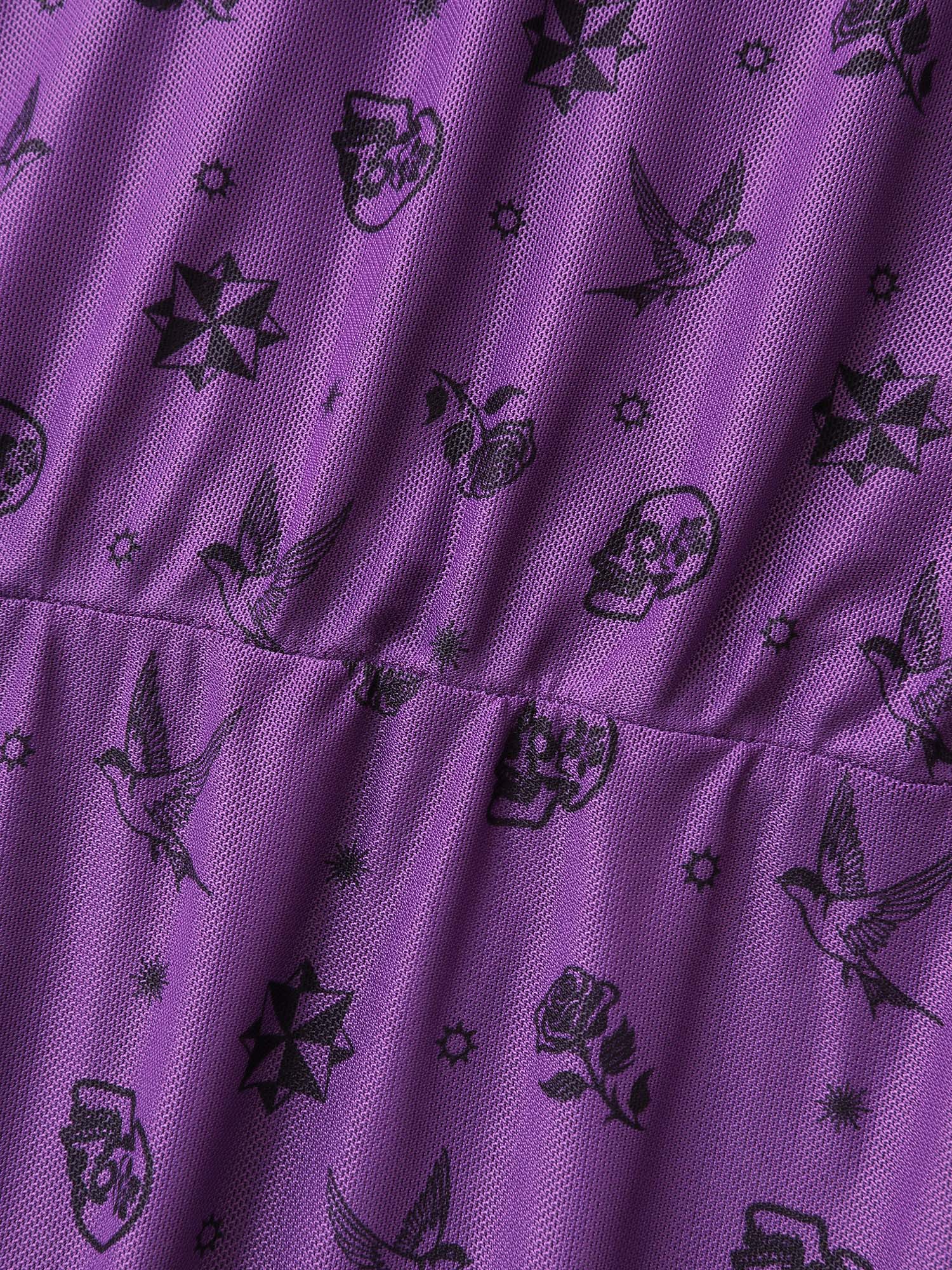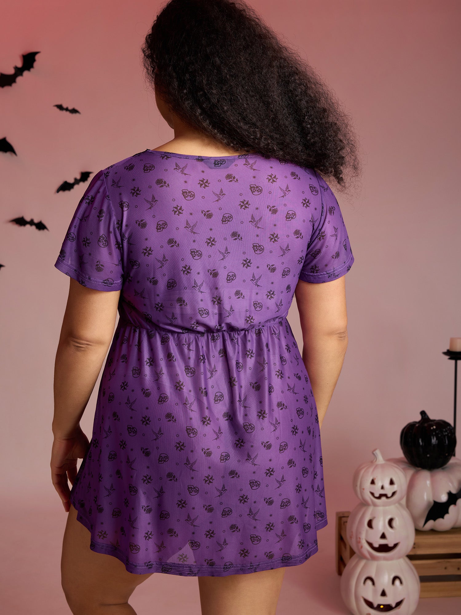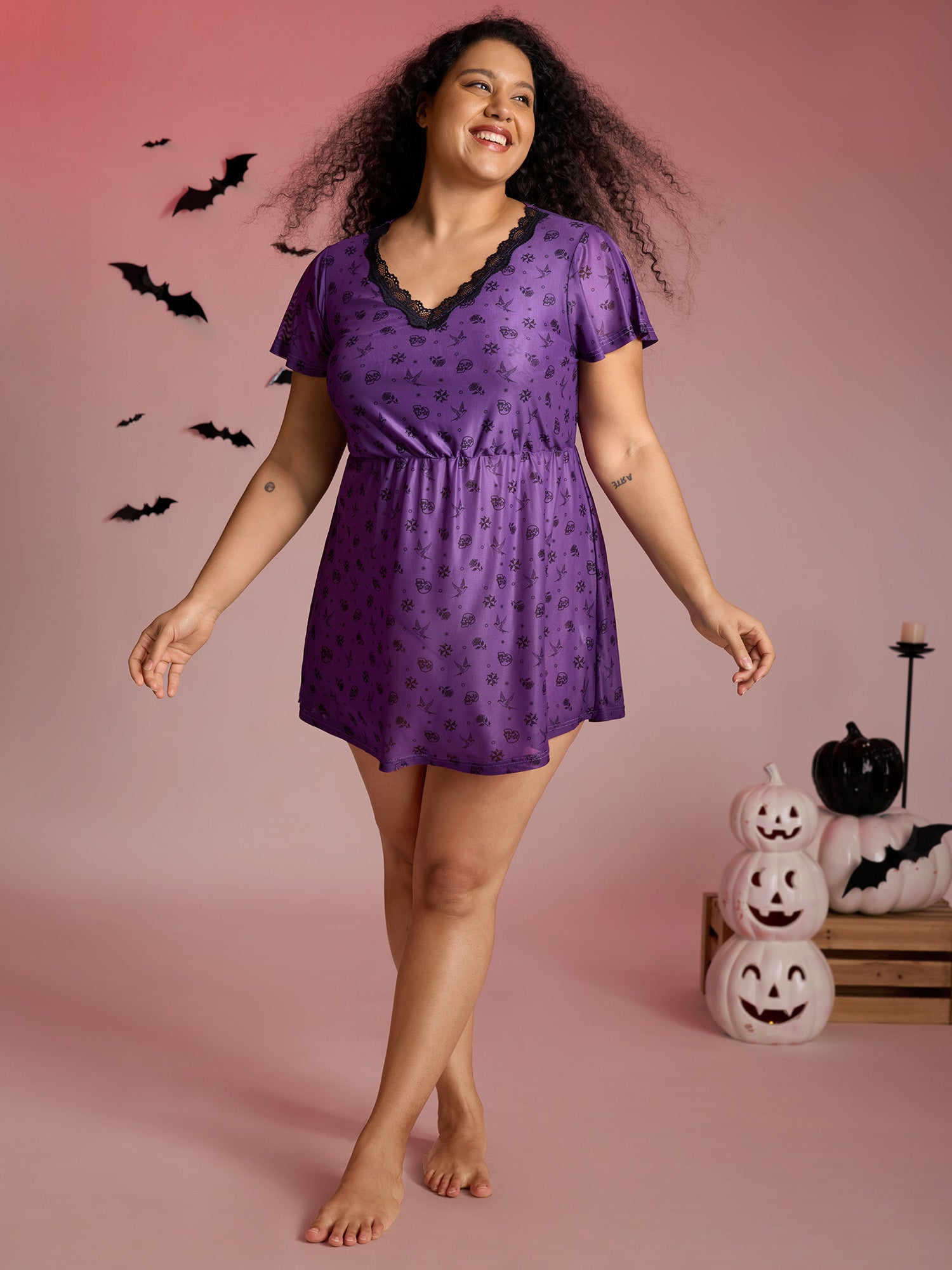 Shop Timeless Halloween Print Stretchy Waist Sleep Dress now and redefine your style with confidence at BloomChic. Tailored for mid and plus-size women. This trendy Loungewear Women, sizes 10-30. Color:Deeppurple;Neckline:V-neck;Sleeve Type:Ruffle Sleeve;Pattern Type:Halloween;Prints:Animal print;Pocket:No-pocket;Belt:No-belt;Closure Type:Non