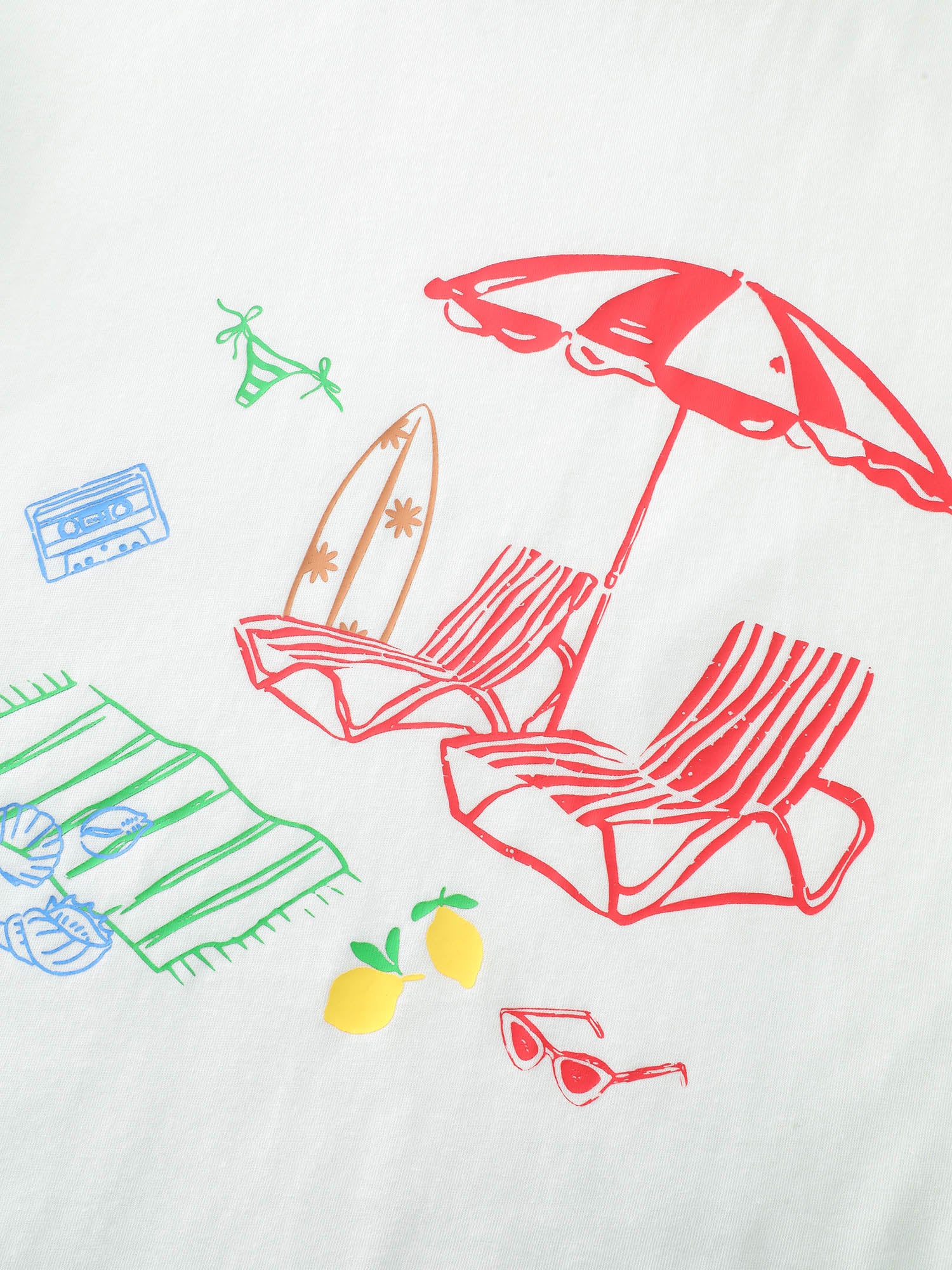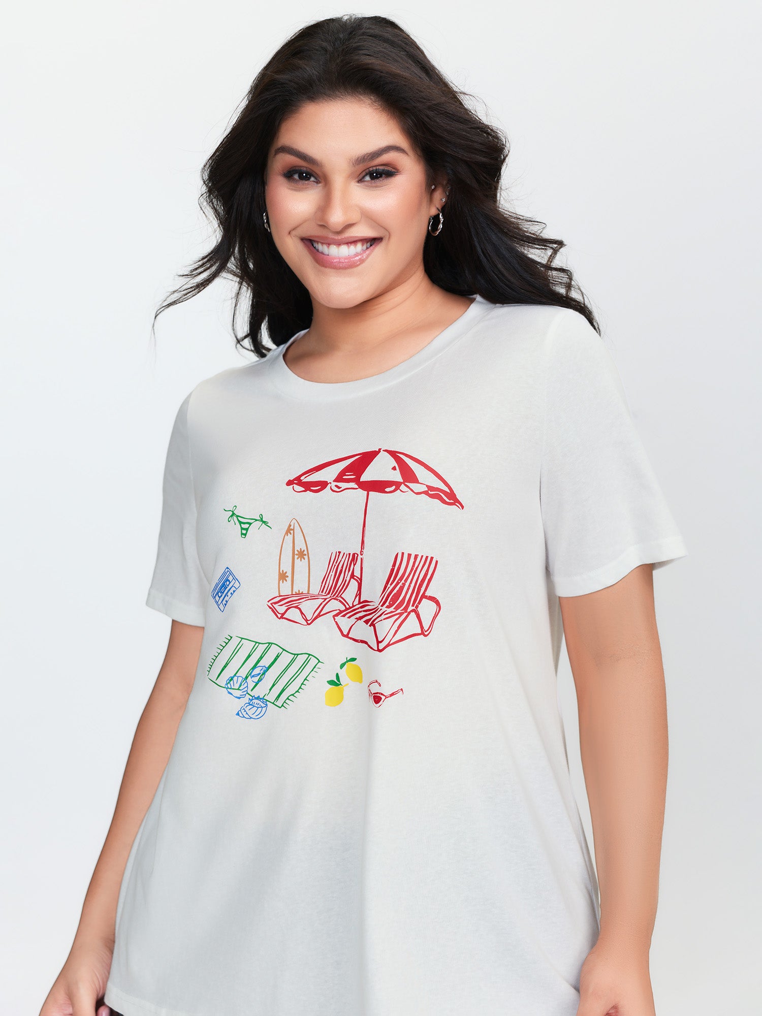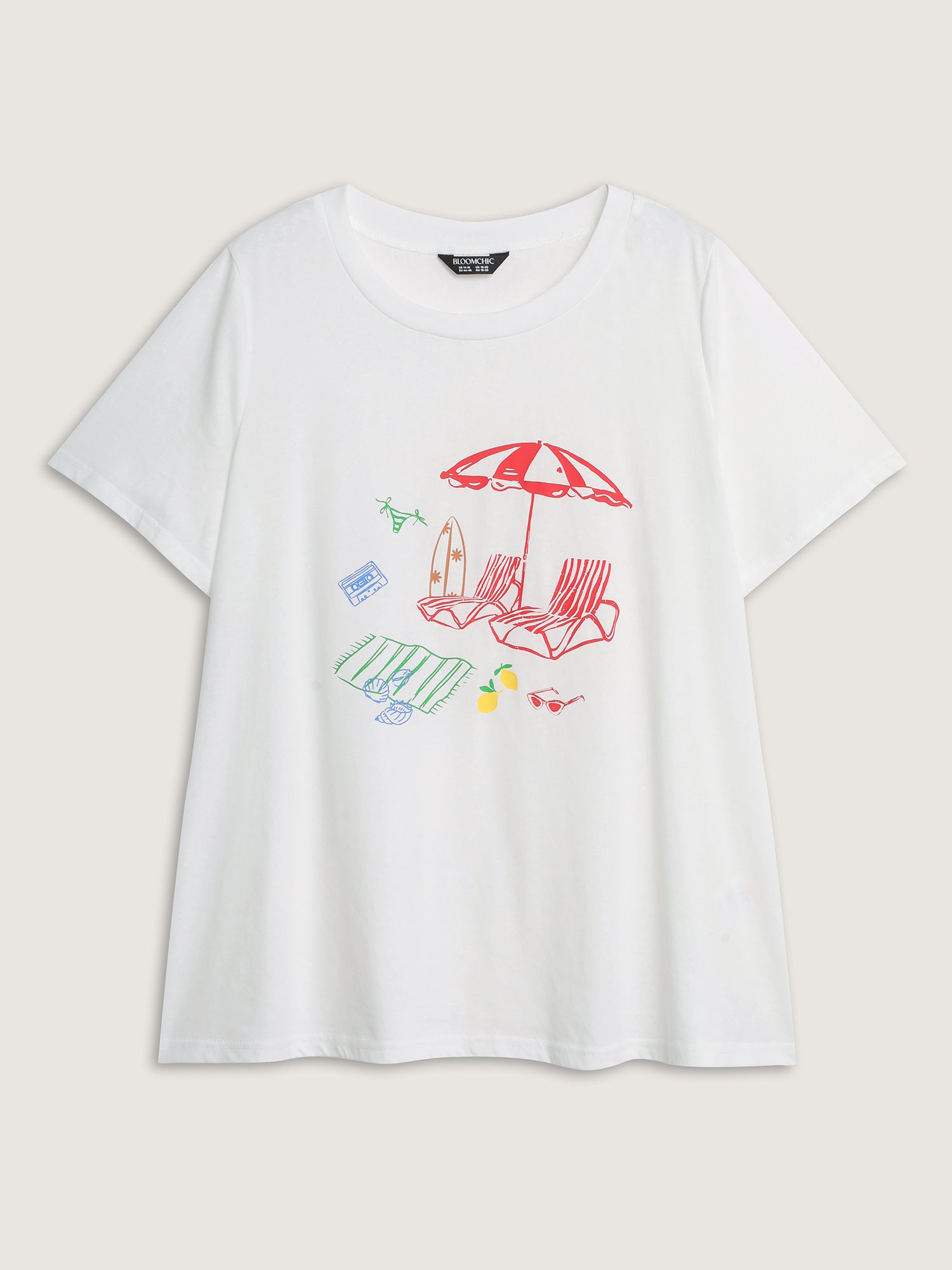 Shop Colorful Beach Print Round Neck Top now and redefine your style with confidence at BloomChic. Tailored for mid and plus-size women. This trendy Tops Women, sizes 10-30. Color:Original White;Style:Retro;Pattern Type:Art&design;Prints:Non;Neckline:Round Neck;Sleeve Type:Regular Sleeve;Pocket:No-pocket