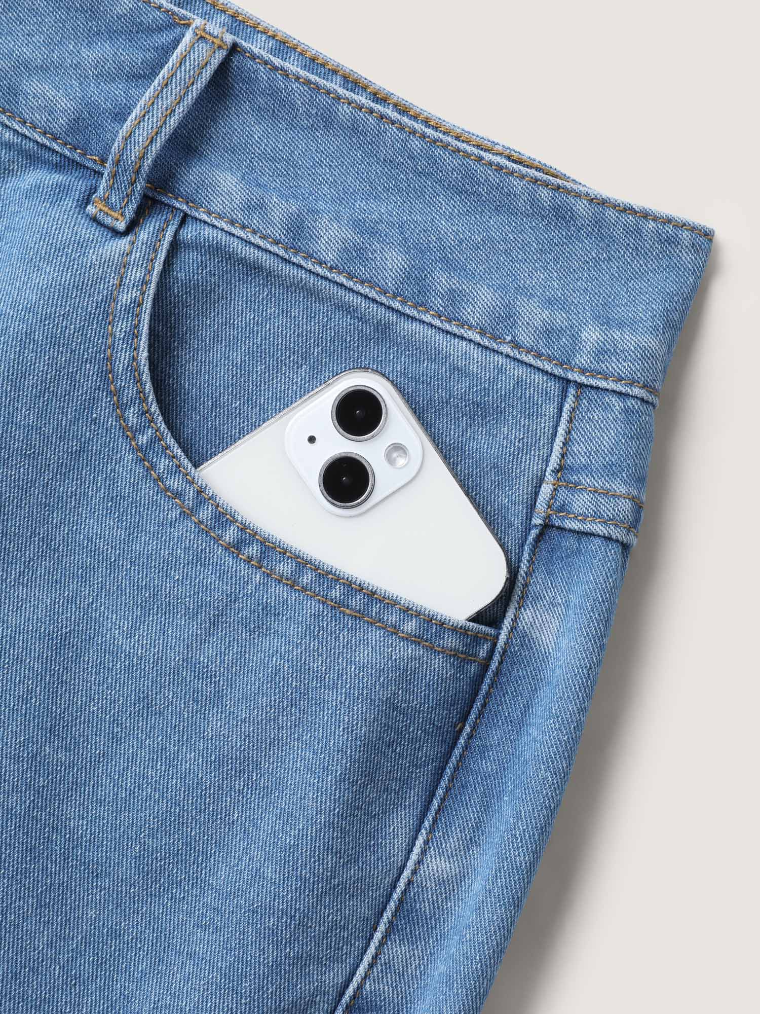 • Embroidered Hem Wide-Leg Denim Shorts