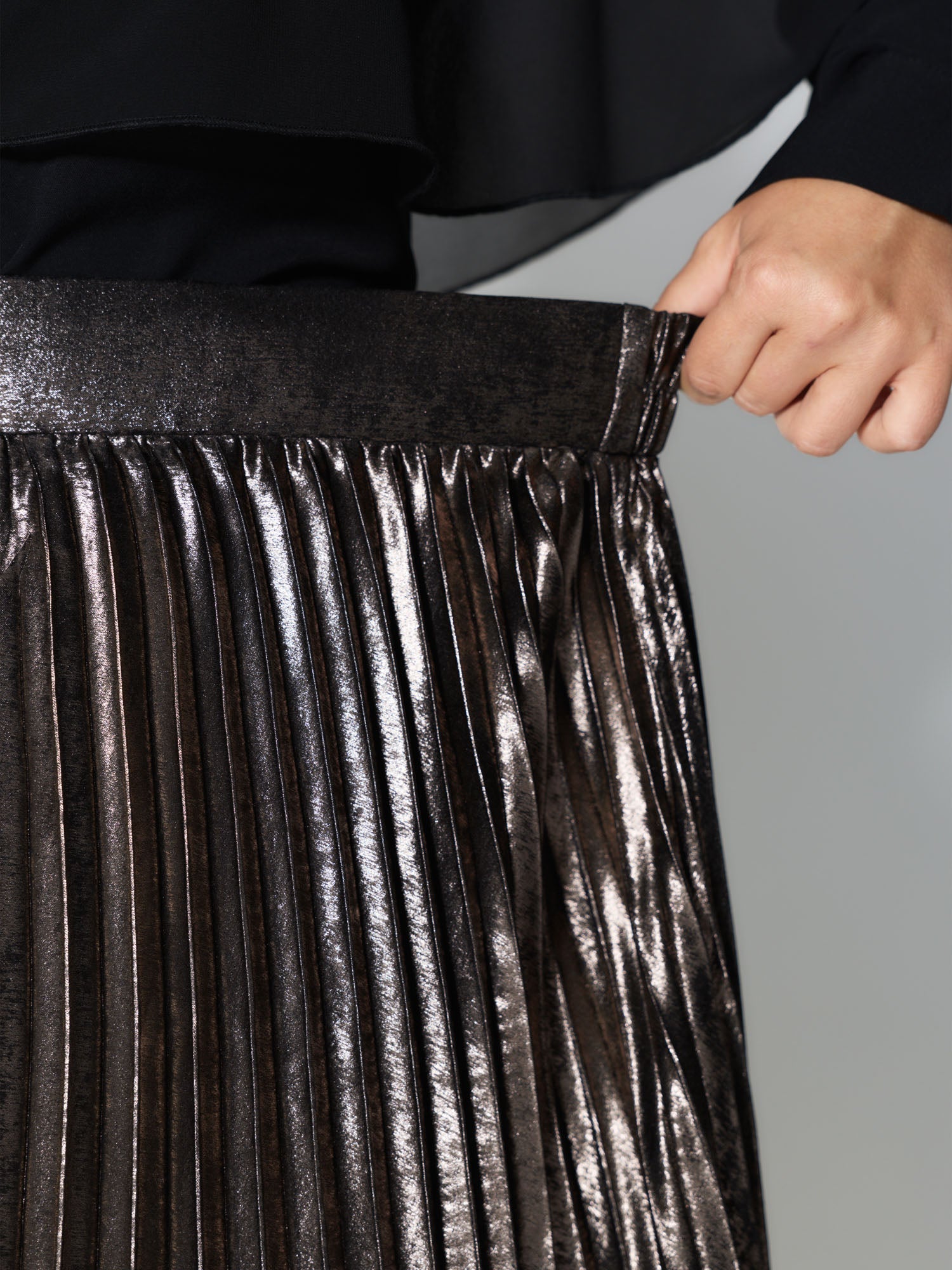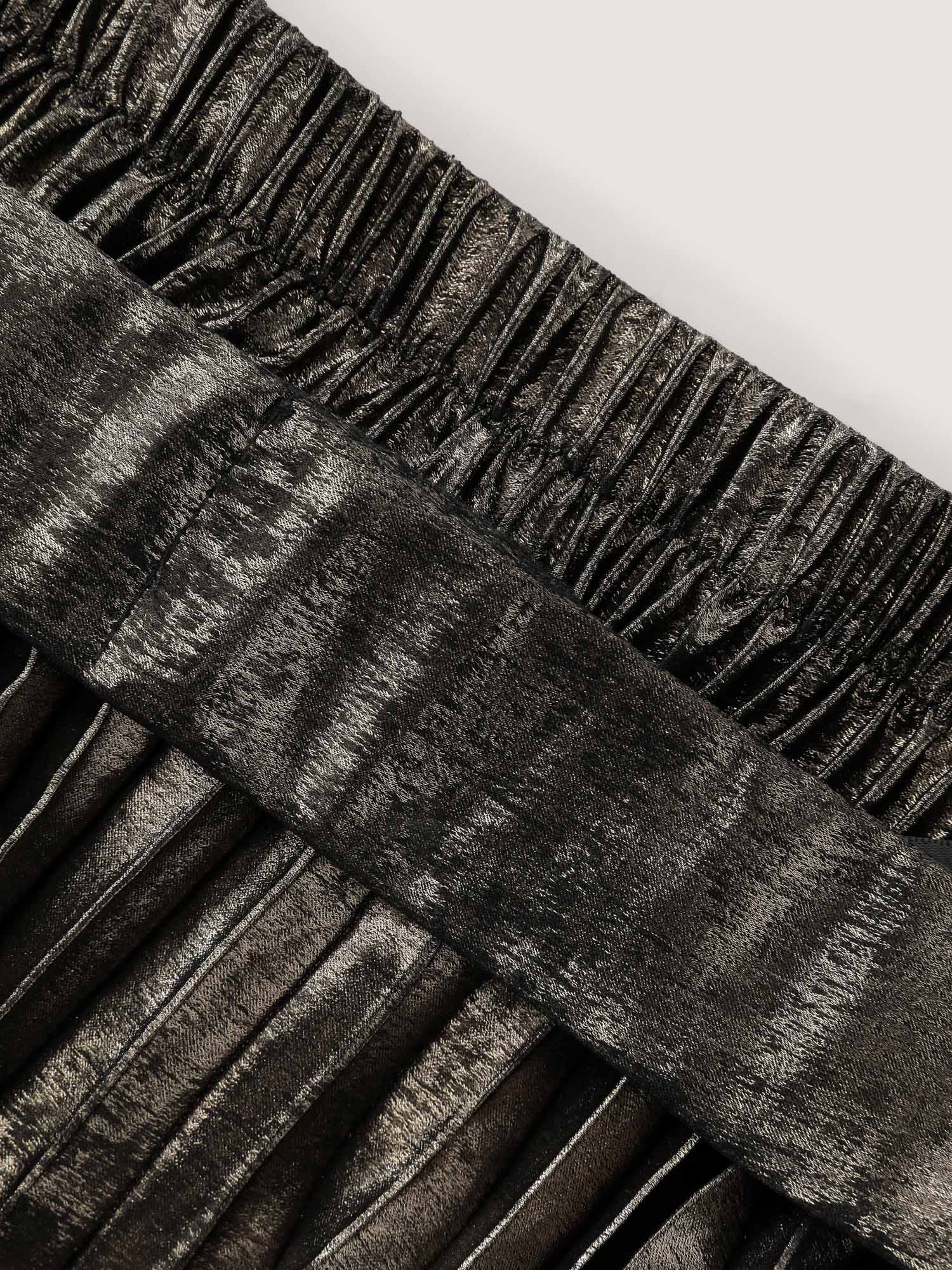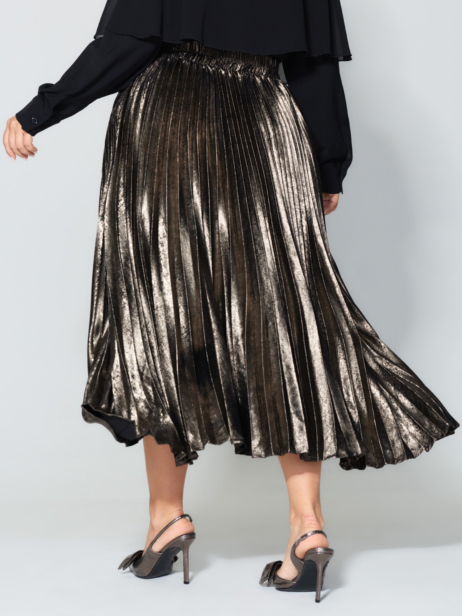 Shop Metallic Shimmer High-Low Hem Pleated Midi Skirt now and redefine your style with confidence at BloomChic. Tailored for mid and plus-size women. This trendy Bottoms Women, sizes 10-30. Color:DarkBrown;Style:Party&Cocktail;Prints:Non;Pocket:No-pocket;Belt:No-belt;Closure Type:Non
