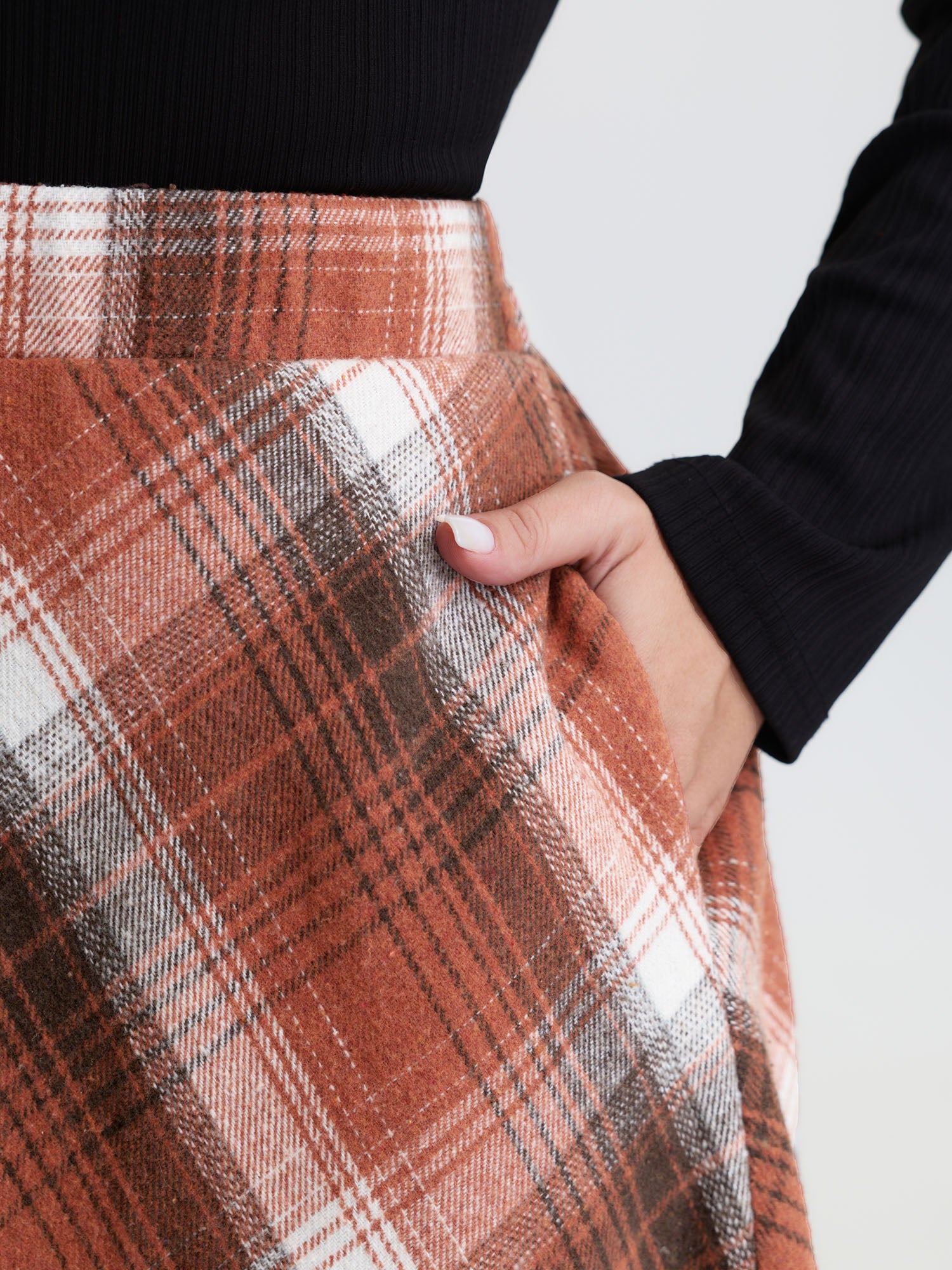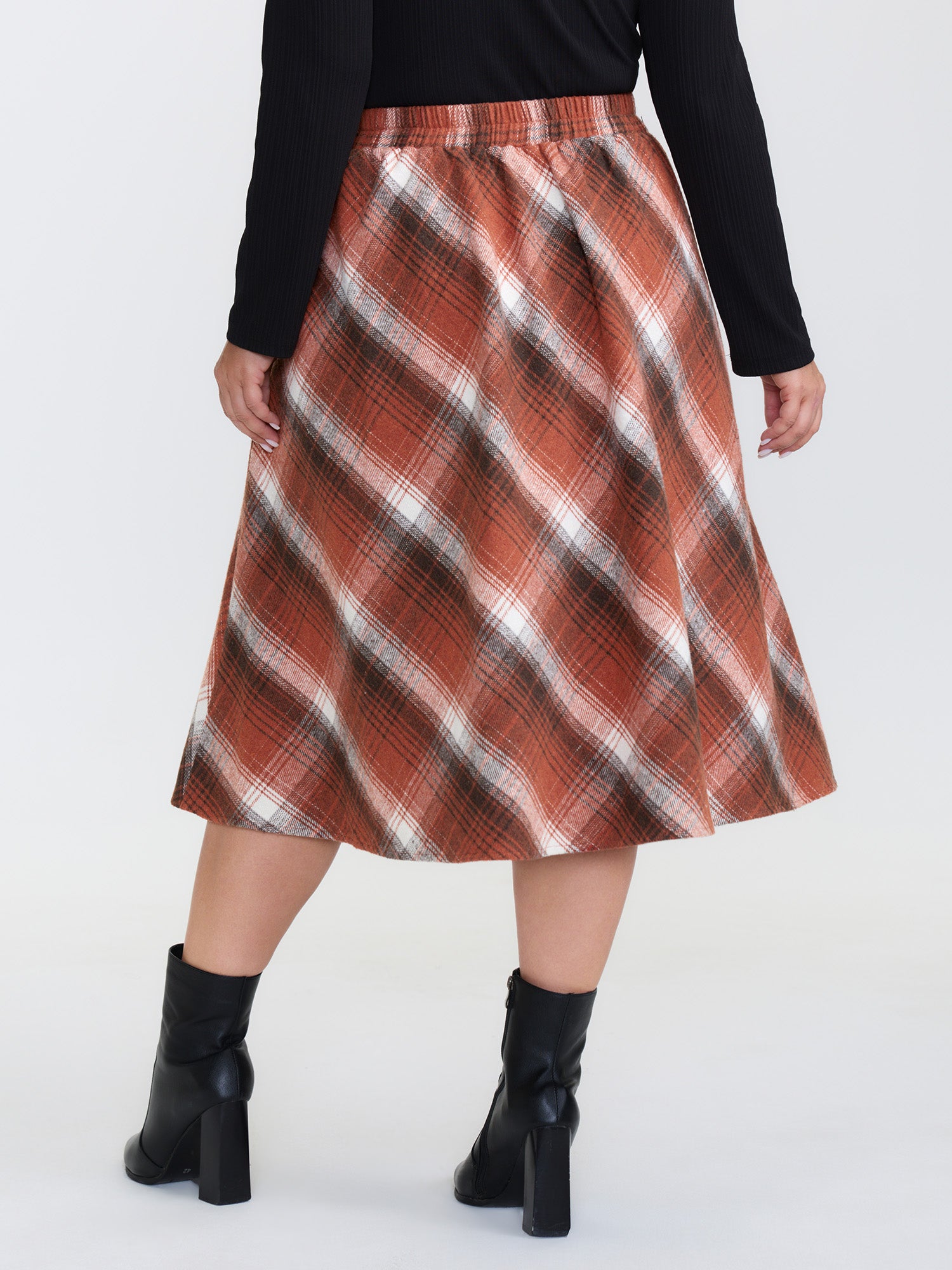 • Pumpkin Plaid Print Halloween Midi Skirt