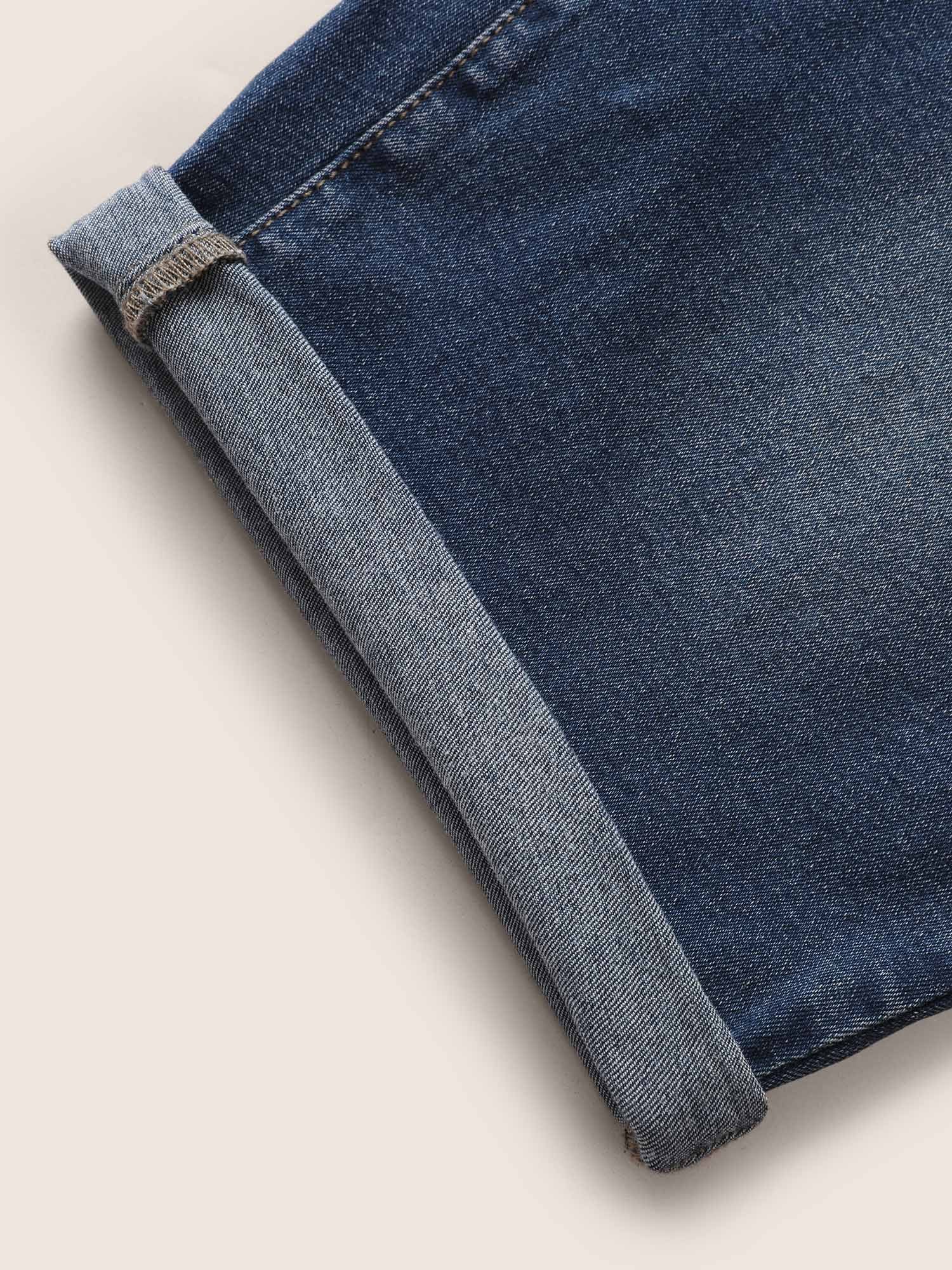 • Roll Hem Elastic Waist Dark Wash Denim Shorts