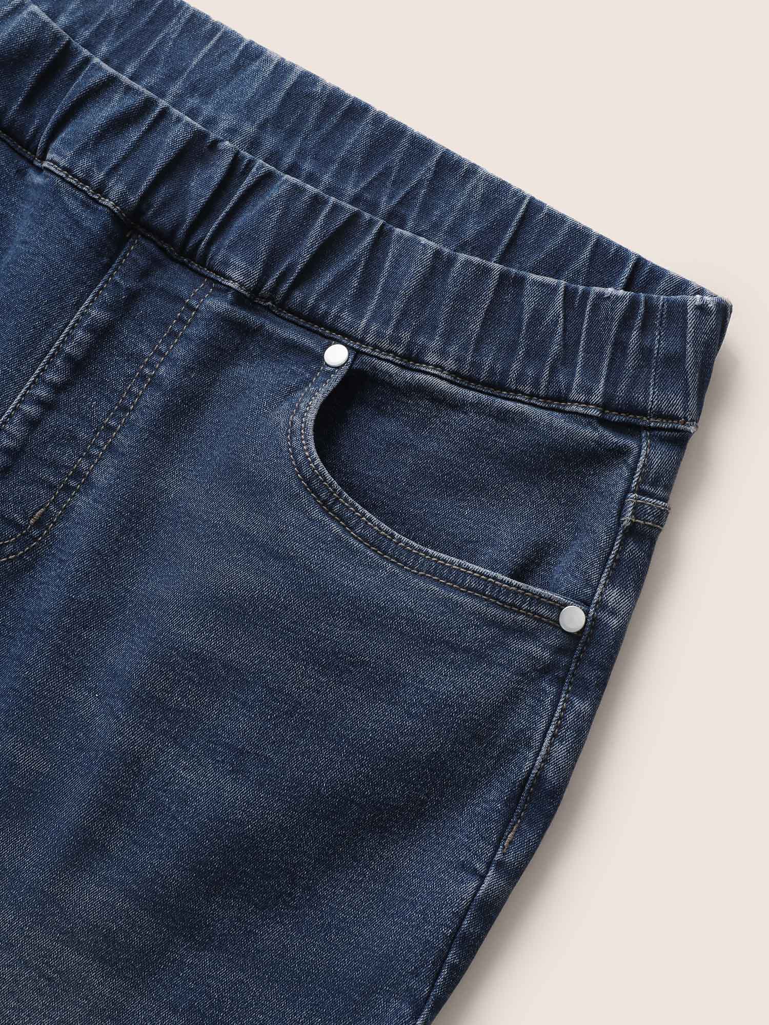 Roll Hem Elastic Waist Dark Wash Denim Shorts