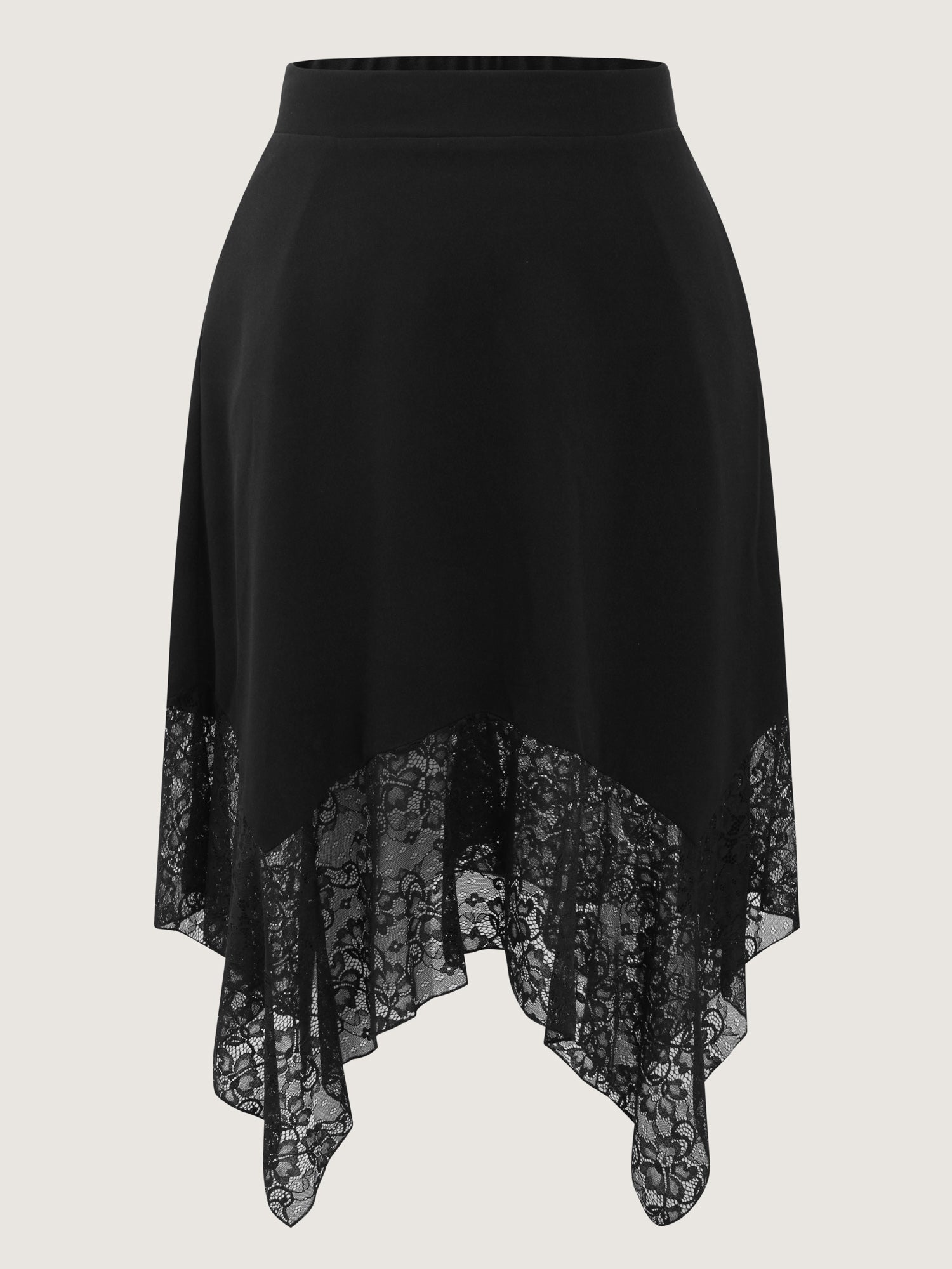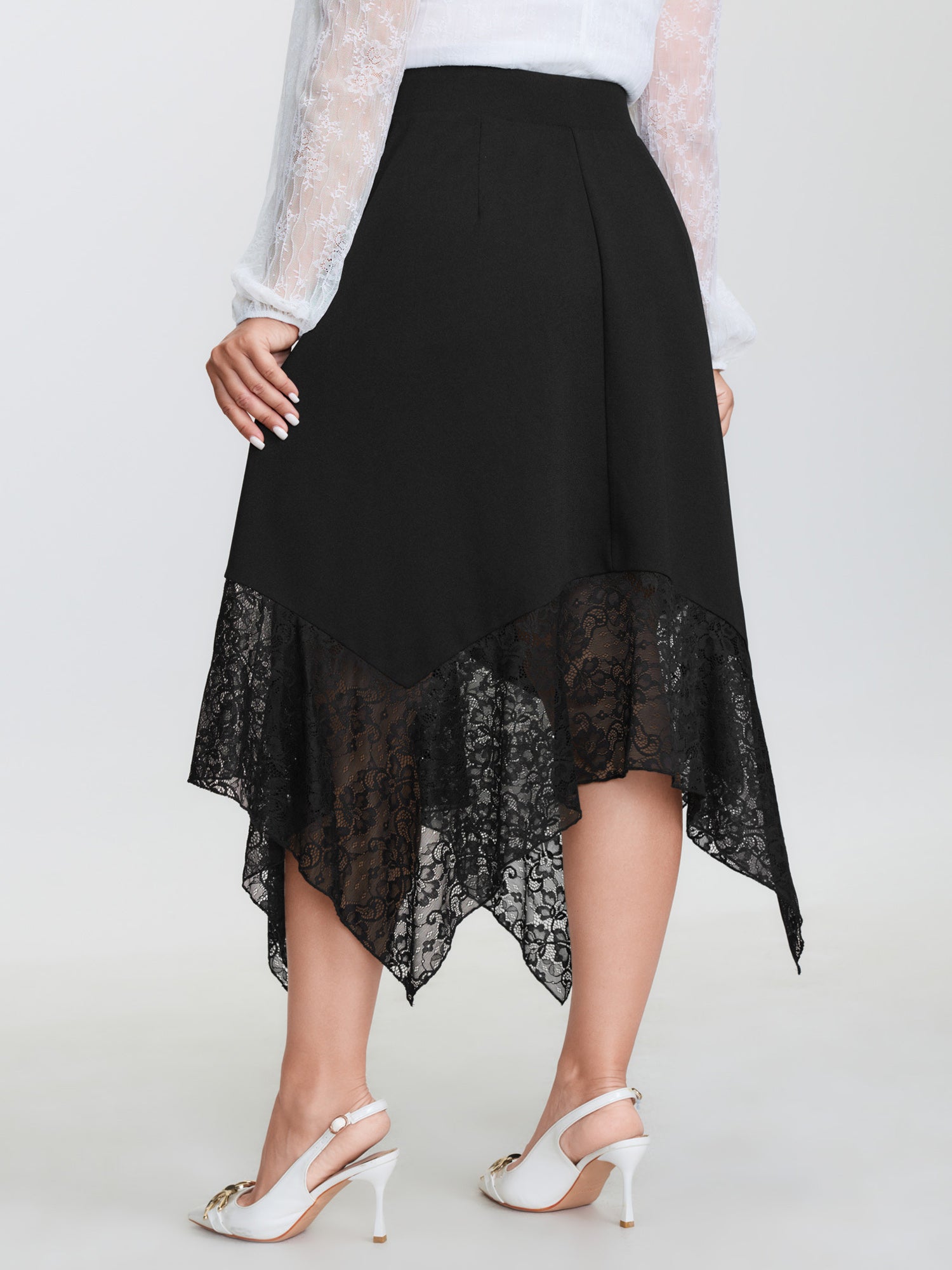 Shop Sheer Lace Handkerchief Hem Midi Skirt now and redefine your style with confidence at BloomChic. Tailored for mid and plus-size women. This trendy Bottoms Women, sizes 10-30. Color:Black;Style:Romantic;Prints:Synthetic texture;Details:Texture, See through, Patchwork;Pocket:Slanted pocket;Belt:No-belt;Closure Type:Non