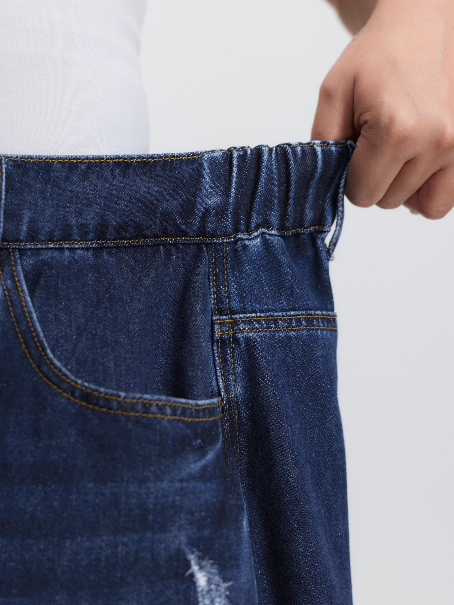• Stretchy Waist Bootcut Maxi Denim Skirt