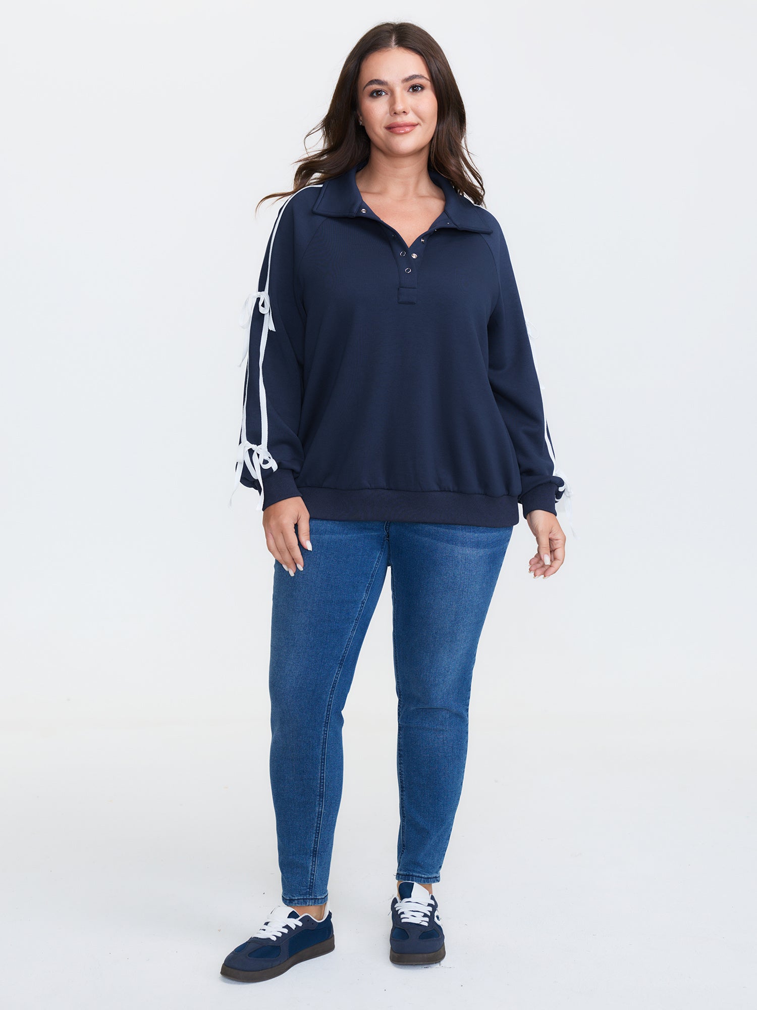 Shop Supersoft Ribbon Detail Contrast Sweatshirt now and redefine your style with confidence at BloomChic. Tailored for mid and plus-size women. This trendy Tops Women, sizes 10-30. Color:Navy;Style:Leisure;Neckline:Turtleneck;Sleeve Type:Raglan sleeve;Prints:Non;Details:Woven ribbon&lace trim, Contrast;Pocket:No-pocket;Snap Fastener:Snap fastener;Belt:No-belt;Closure Type:Half-open front