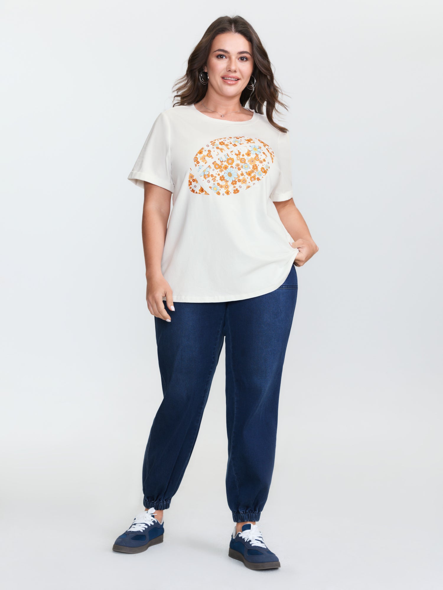 Shop Supersoft Rugby Pattern T-Shirt now and redefine your style with confidence at BloomChic. Tailored for mid and plus-size women. This trendy Tops Women, sizes 10-30. Color:White Smoke;Style:Leisure;Pattern Type:Sports;Prints:Ditsy floral;Neckline:Round Neck;Sleeve Type:Regular Sleeve;Pocket:No-pocket