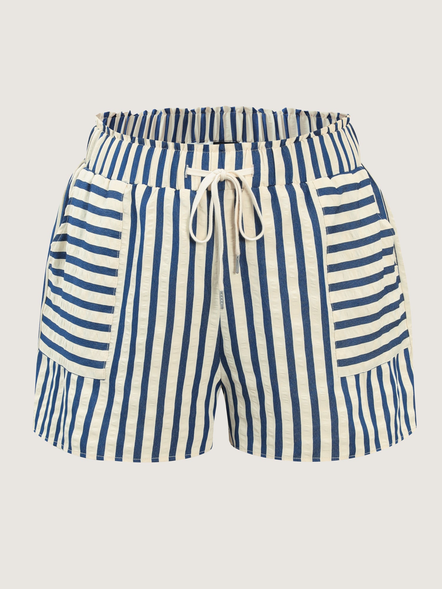 Shop Asymmetrical Stripes Pockets Lined Shorts now and redefine your style with confidence at BloomChic. Tailored for mid and plus-size women. This trendy Bottoms Women, sizes 10-30. Color:Medium Blue;Style:Leisure;Waist Design:Mid Rise;Prints:Stripes;Details:Drawstring, Texture;Pocket:Patch pocket;Belt:No-belt;Closure Type:Non
