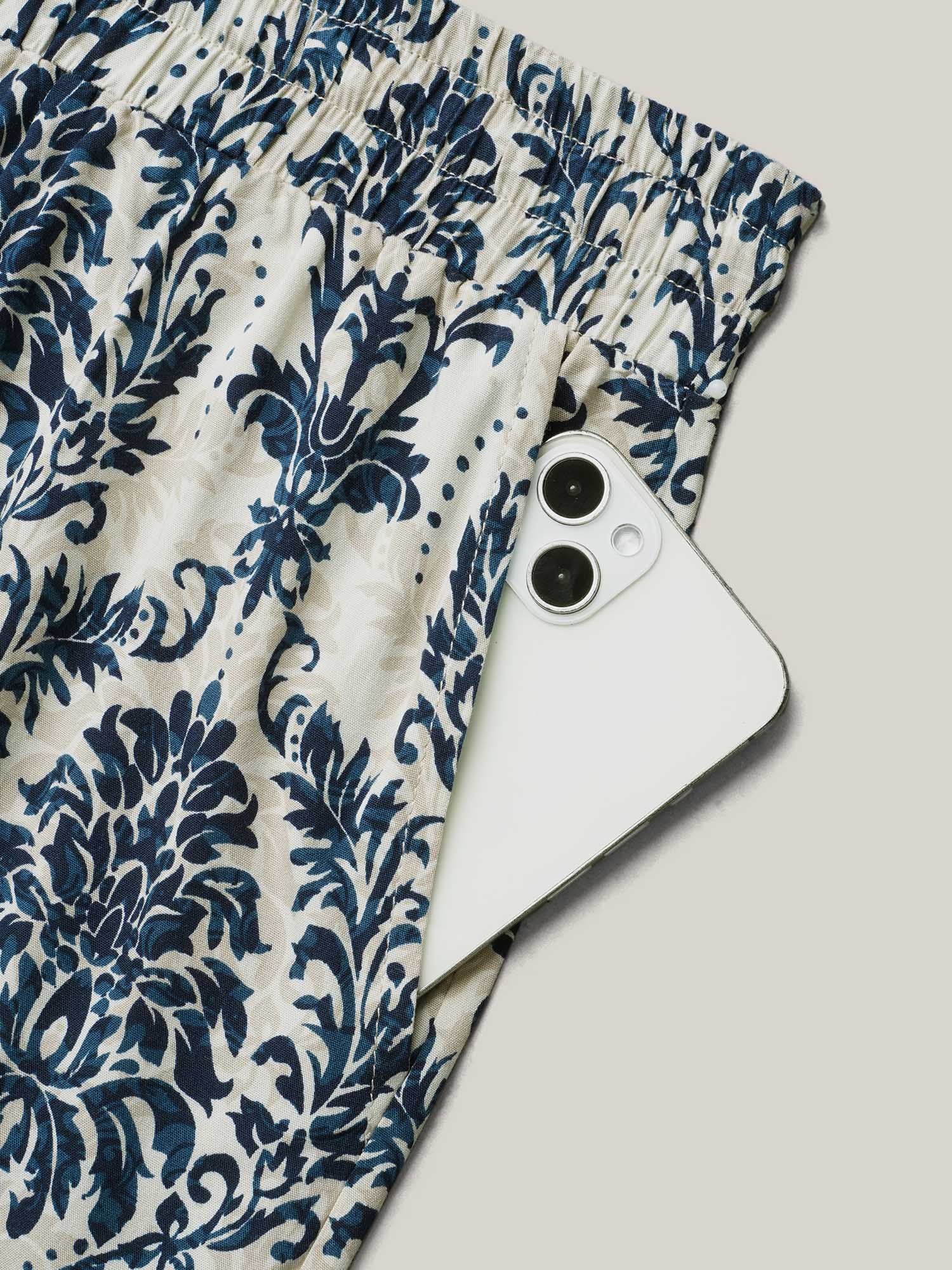 Damask Print Tassel Straight-Leg Pants