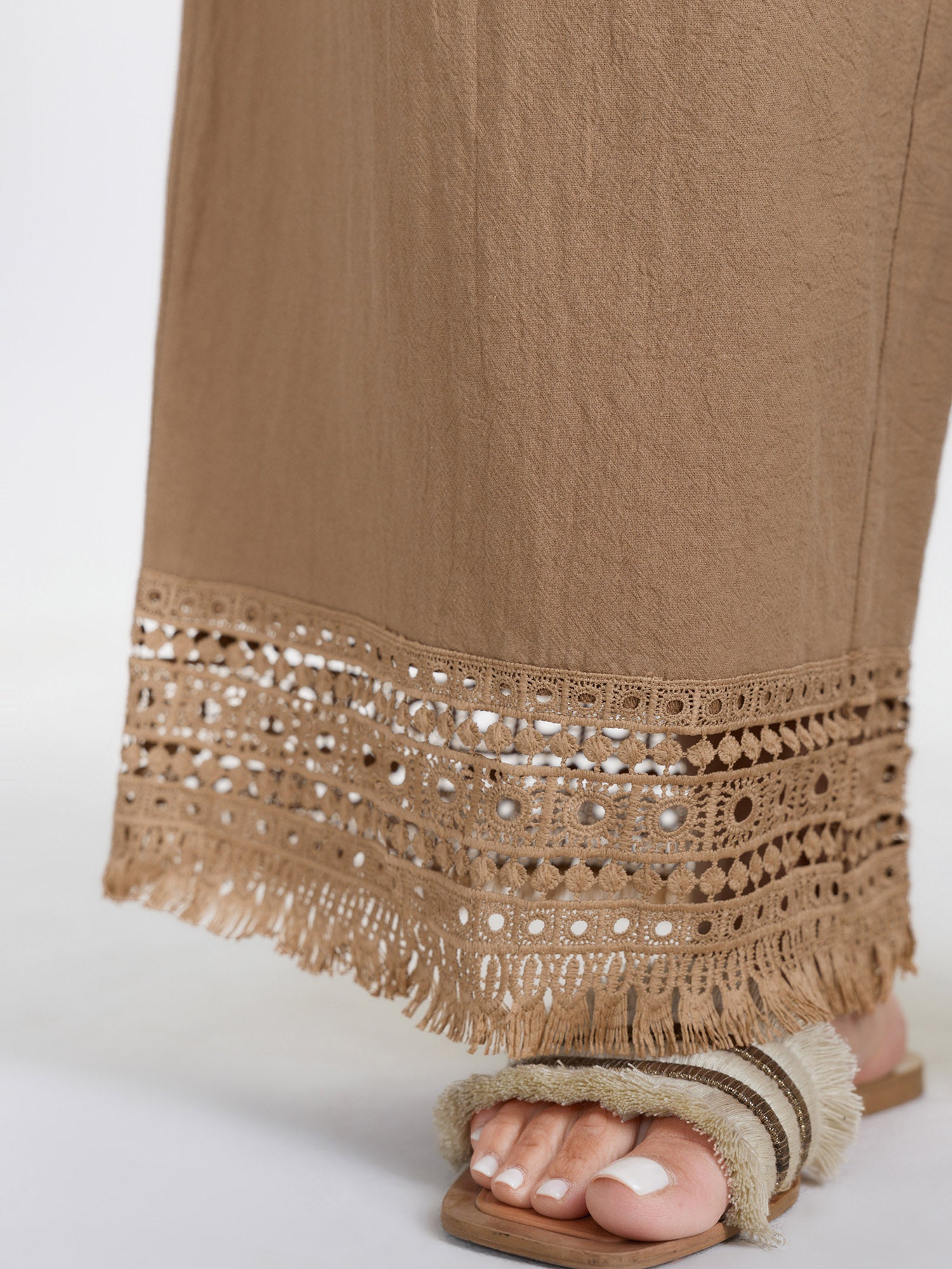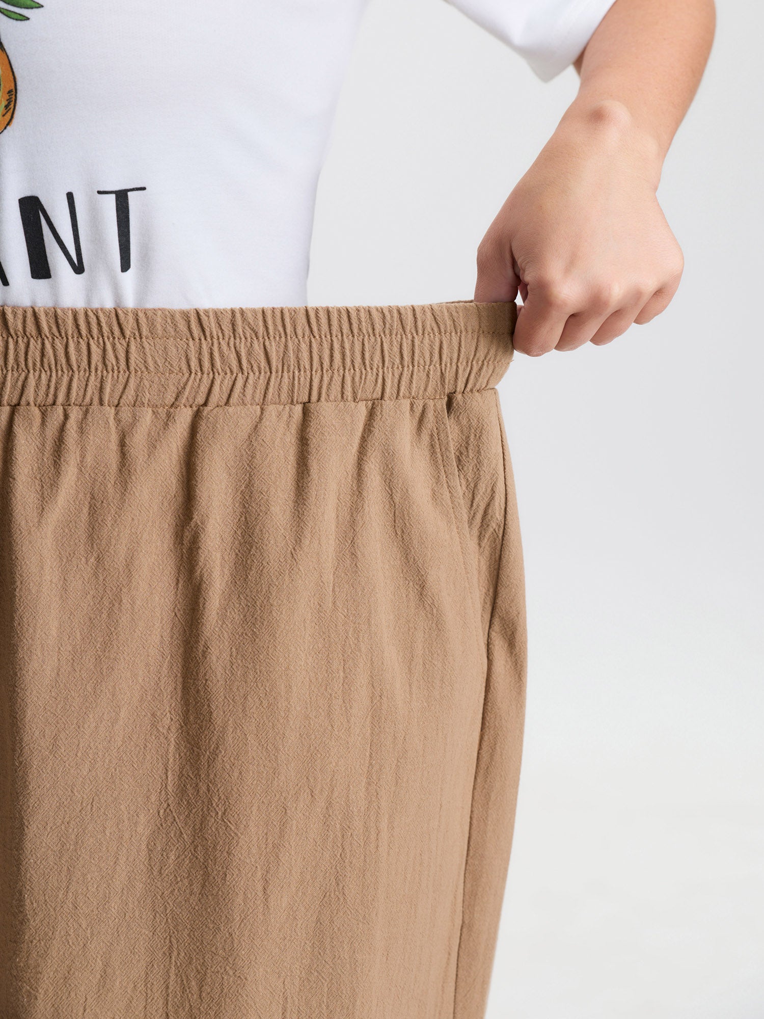 Shop Cotton Pull-On Straight Leg Pants now and redefine your style with confidence at BloomChic. Tailored for mid and plus-size women. This trendy Bottoms Women, sizes 10-30. Color:Tan;Style:Boho;Waist Design:Mid Rise;Prints:Non;Pocket:No-pocket;Belt:No-belt;Closure Type:Non