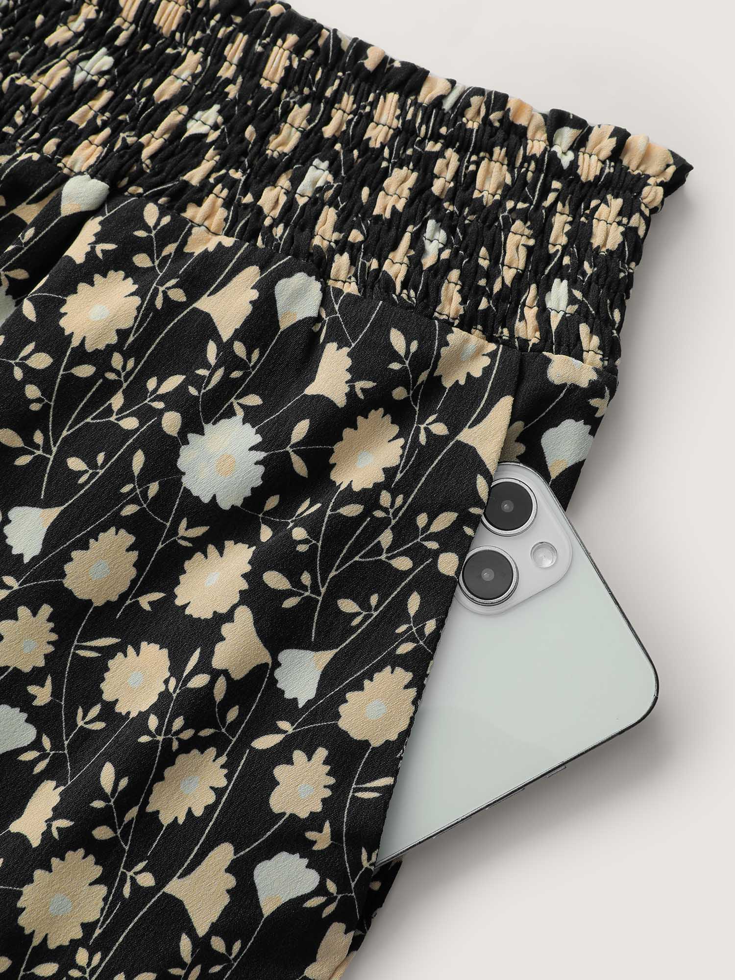 Shop Floral Print Shirred Wide Waistband Tiered Pants now and redefine your style with confidence at BloomChic. Tailored for mid and plus-size women. This trendy Bottoms Women, sizes 10-30. Color:BlackFlower;Waist Design:Mid Rise;Prints:Floral;Details:Shirred;Pocket:Slanted pocket;Belt:No-belt;Closure Type:Non