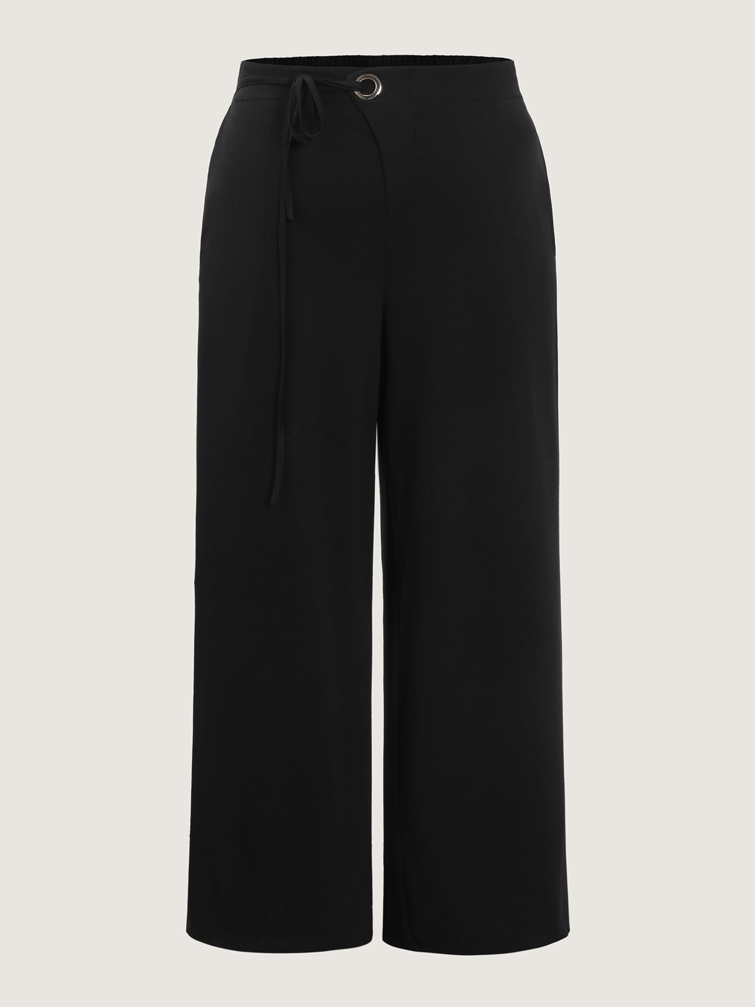 Shop Metal Buckle Wide-Leg Pants now and redefine your style with confidence at BloomChic. Tailored for mid and plus-size women. This trendy Bottoms Women, sizes 10-30. Color:Black;Style:Leisure;Waist Design:High Rise;Prints:Non;Details:Tie knot;Pocket:Side seam pocket;Belt:No-belt;Closure Type:Non