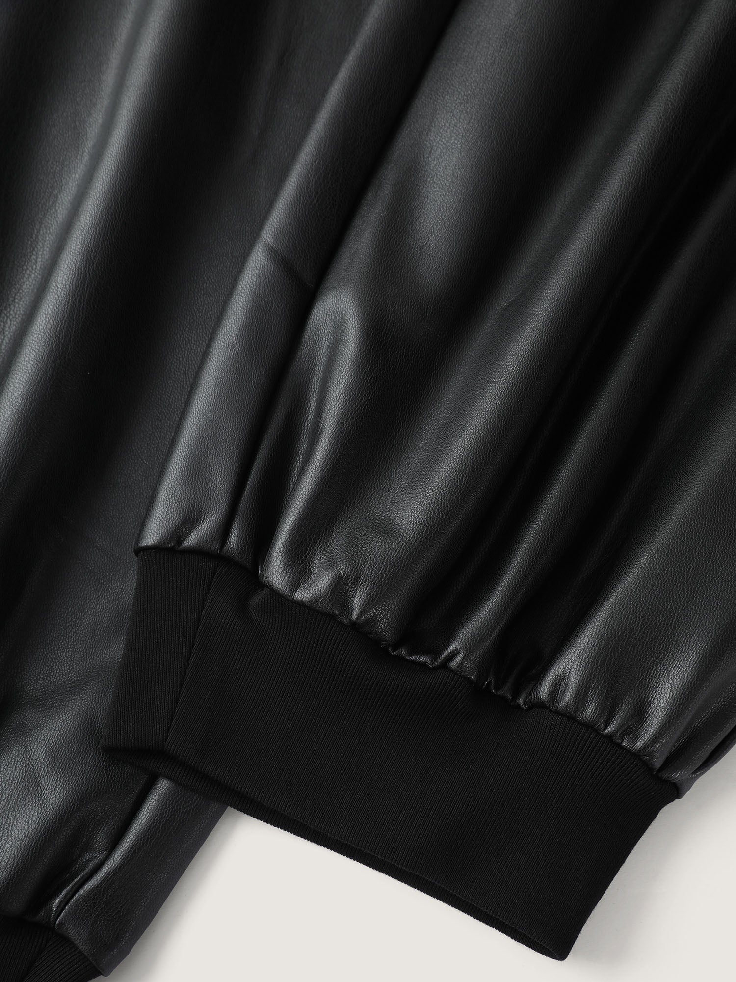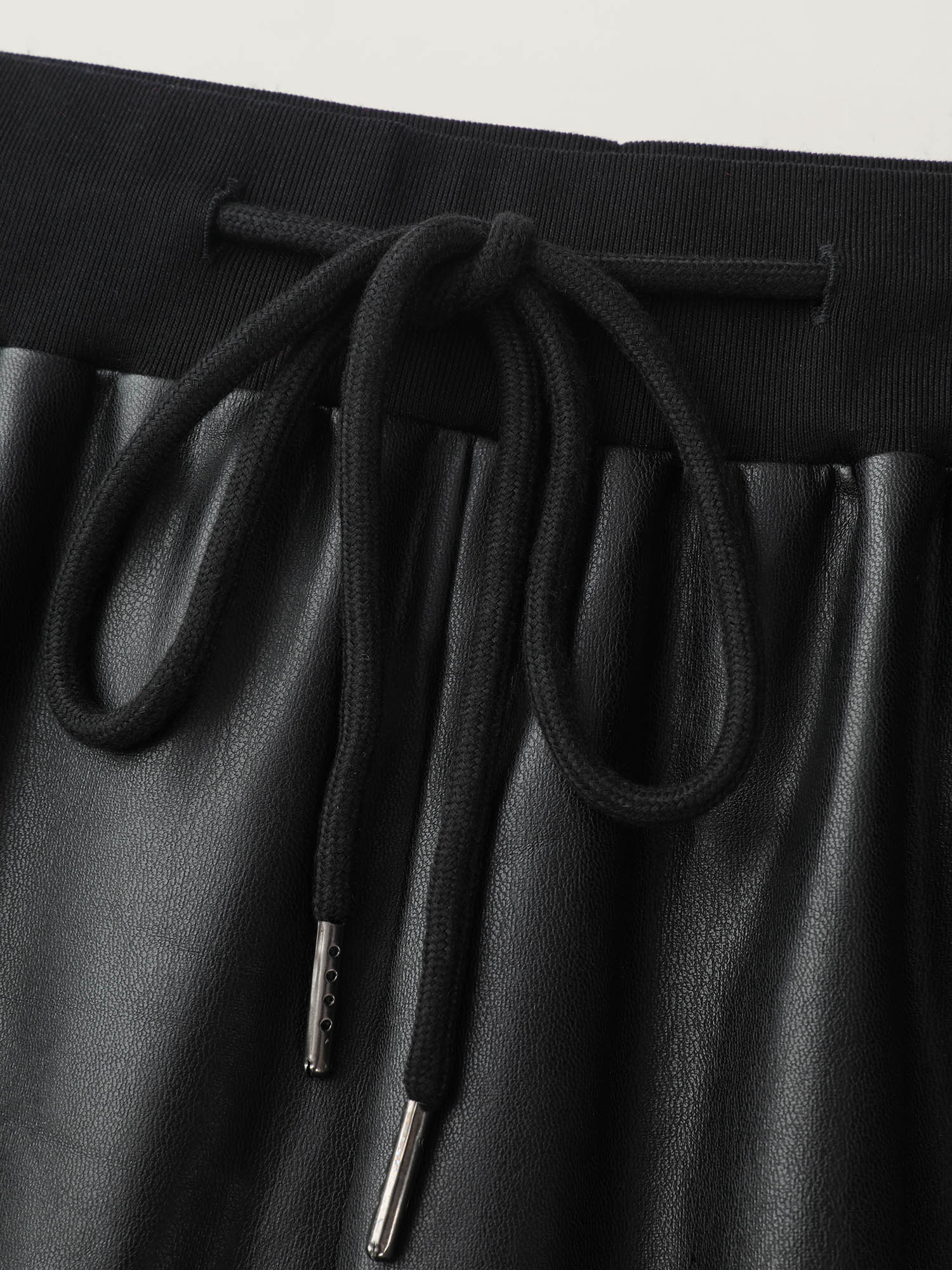 • Ribbed Trim Spliced Leather Drawstring Pants