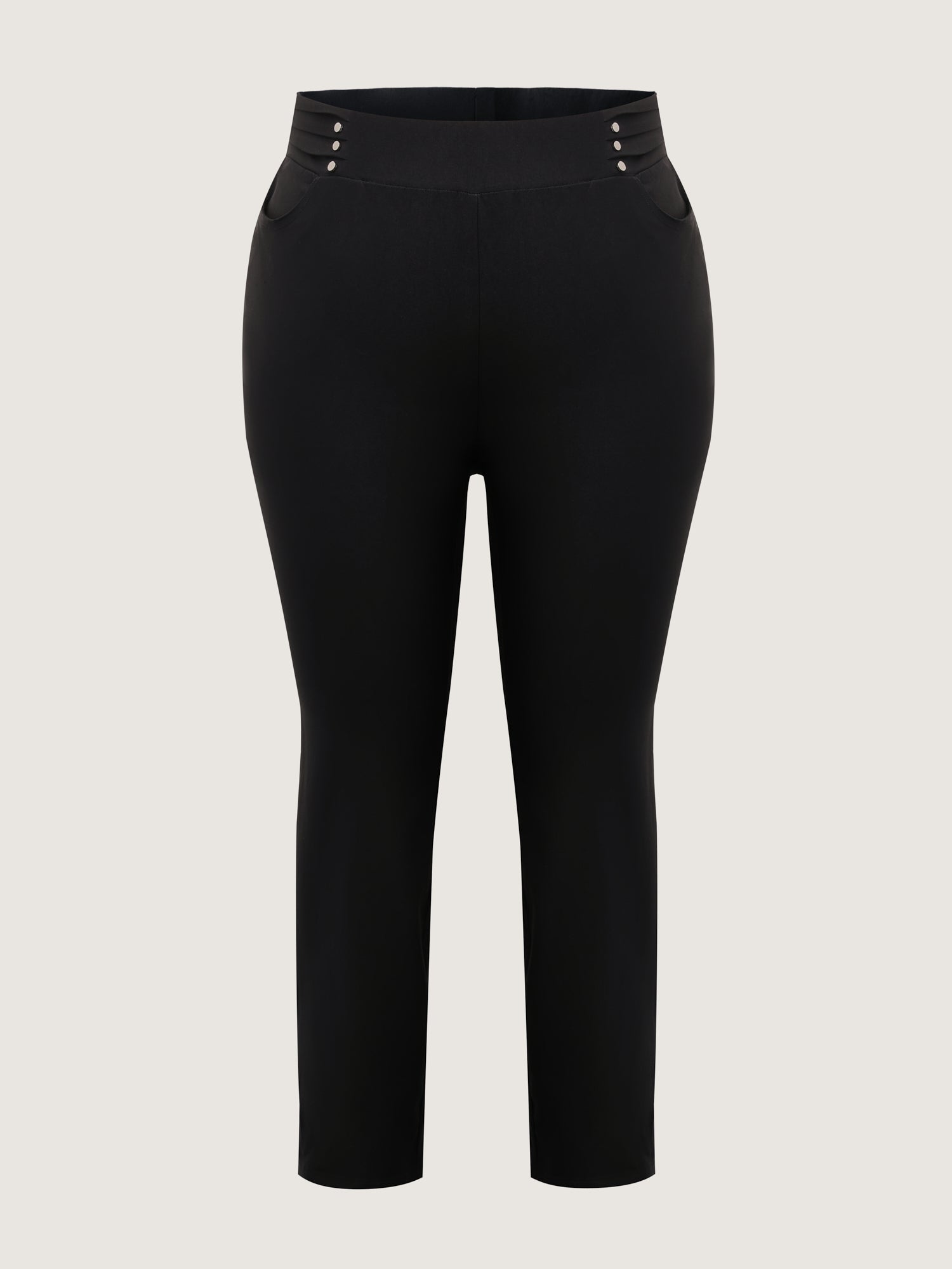 Shop Rivets Wide Waistband Stretchy Pants now and redefine your style with confidence at BloomChic. Tailored for mid and plus-size women. This trendy Bottoms Women, sizes 10-30. Color:Black;Style:Office;Waist Design:Mid Rise;Prints:Non;Details:Non;Pocket:Slanted pocket;Belt:No-belt;Closure Type:Non