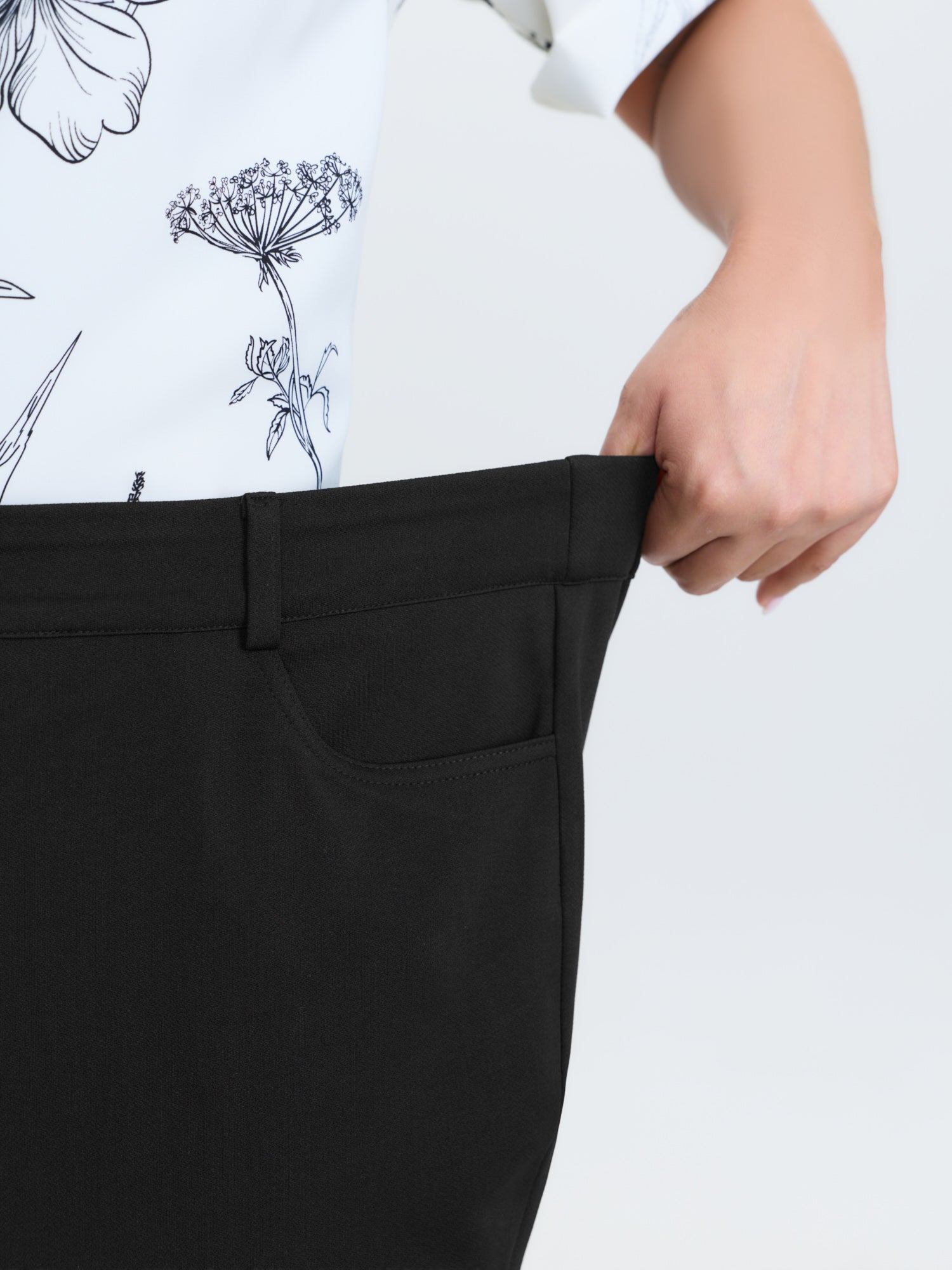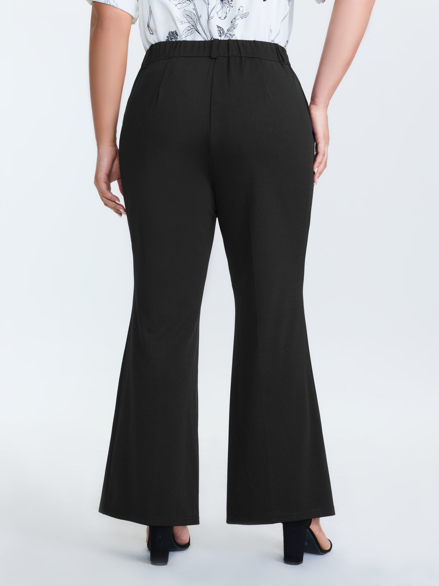 Shop Stretchy Waist Crease Line Flared Pants now and redefine your style with confidence at BloomChic. Tailored for mid and plus-size women. This trendy Bottoms Women, sizes 10-30. Color:Black;Style:Office;Waist Design:Mid Rise;Prints:Non;Pocket:Slanted pocket;Belt:No-belt;Closure Type:Non