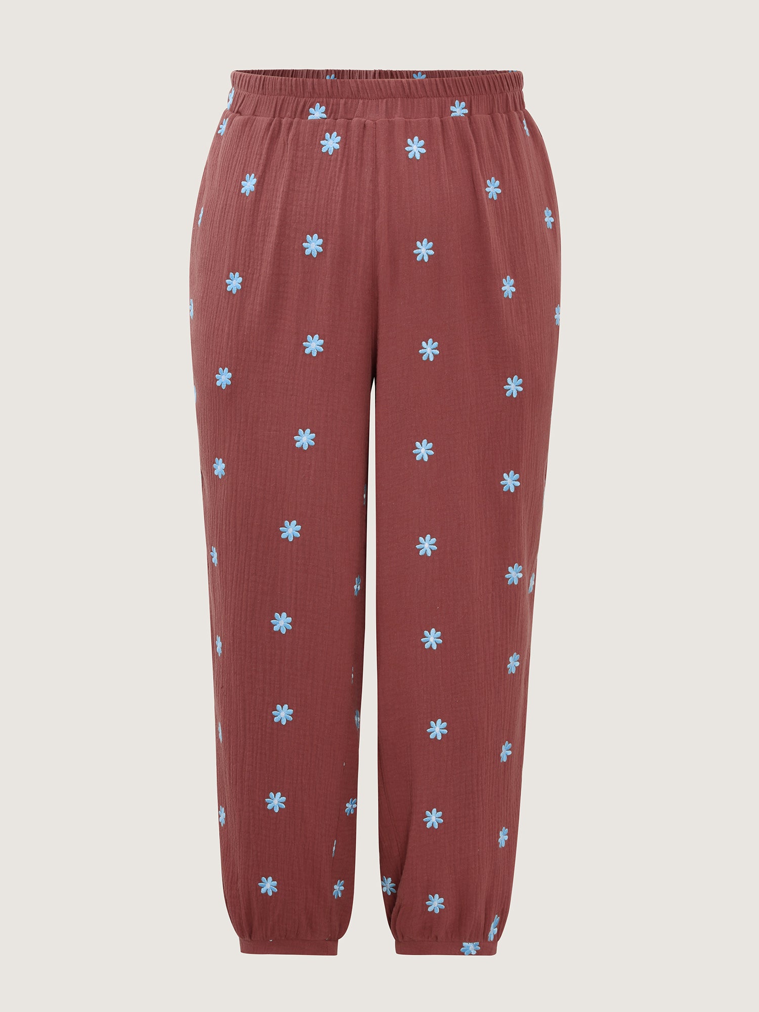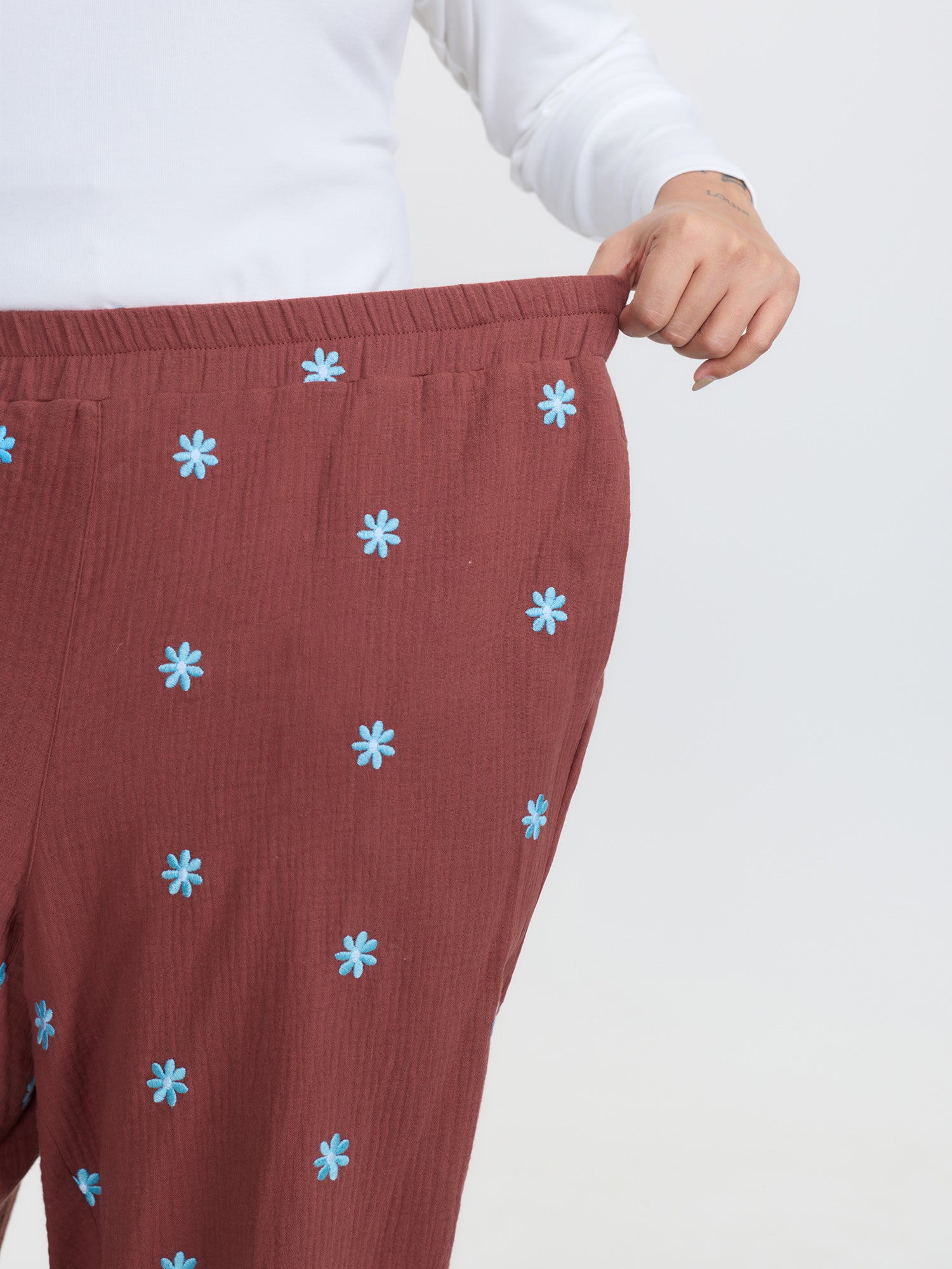 Shop Supersoft Floral Embroidered Pants now and redefine your style with confidence at BloomChic. Tailored for mid and plus-size women. This trendy Bottoms Women, sizes 10-30. Color:Rust;Style:Playful;Waist Design:Mid Rise;Prints:Non;Details:Embroidered;Pocket:Side seam pocket;Belt:No-belt;Closure Type:Non