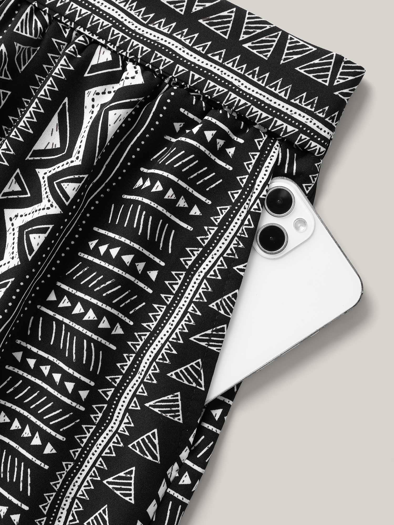 Waist-Tie Wide-Leg Boho Print Pants