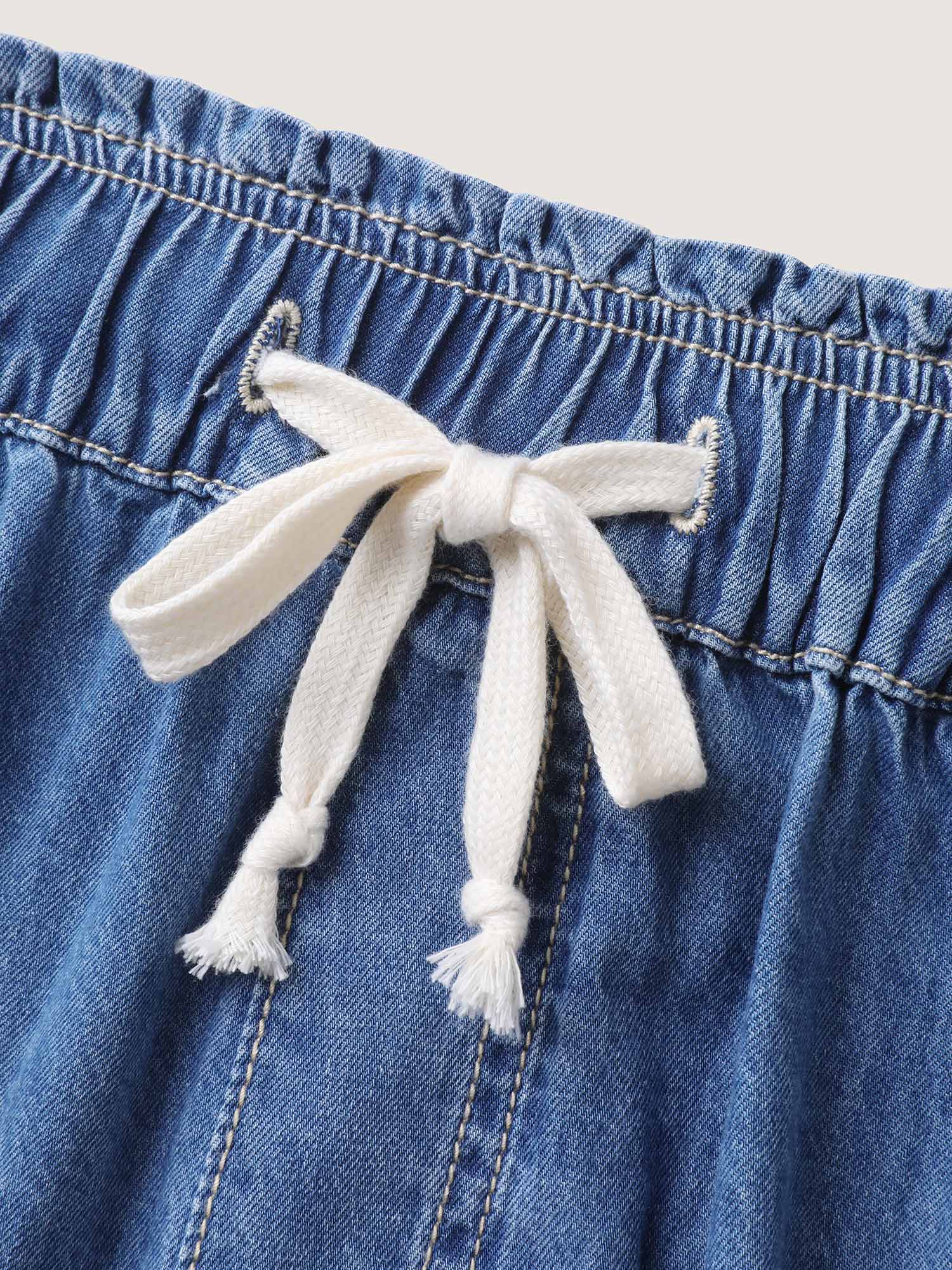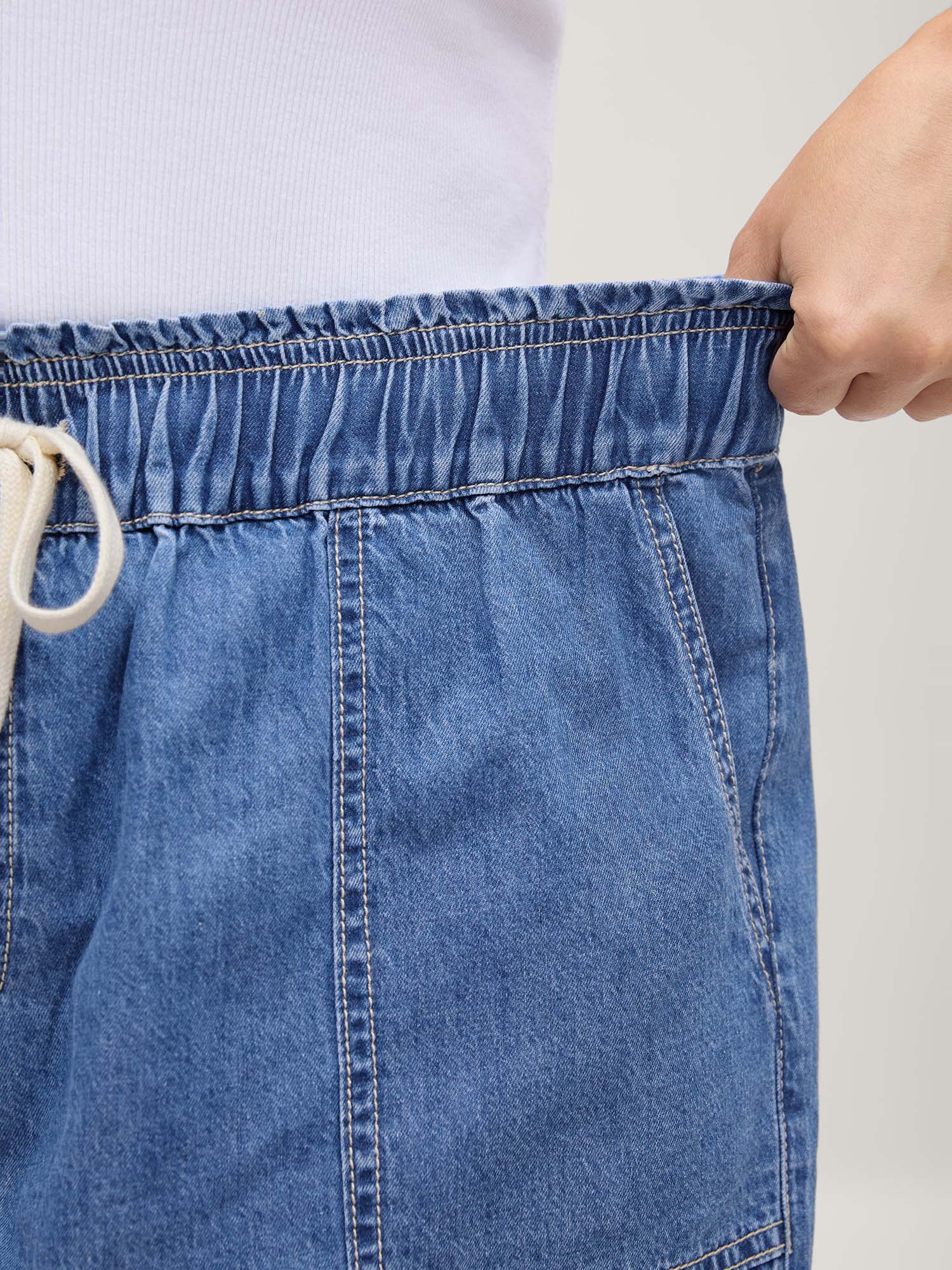 • Cotton Stretchy Waist Drawstring Classic Denim Shorts