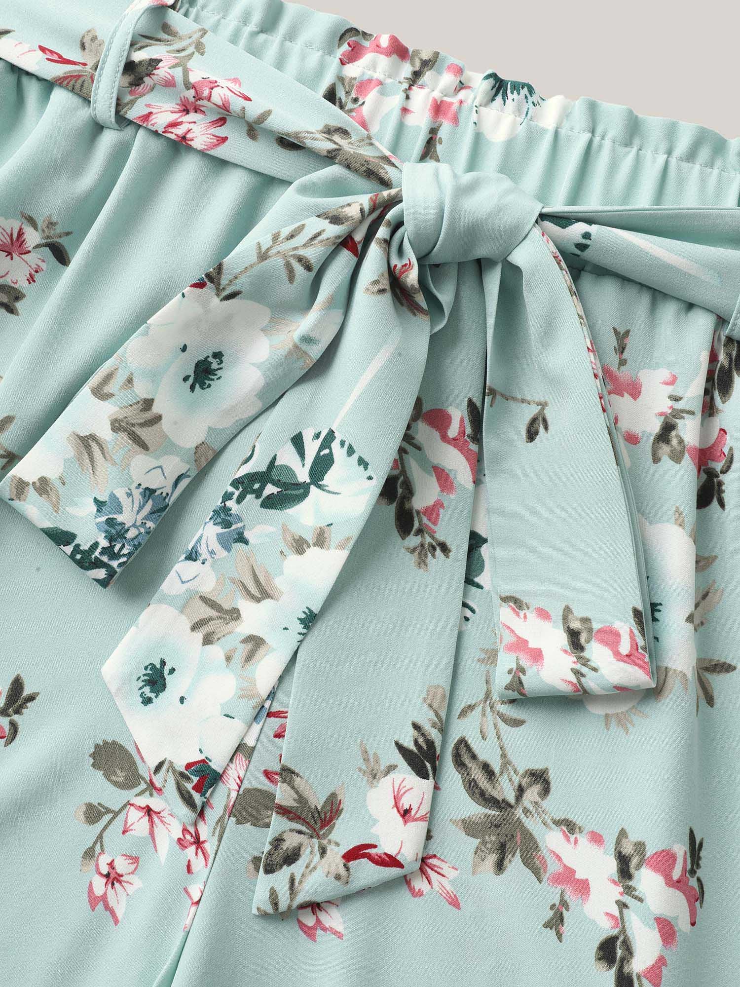 Shop Fresh Floral Print Belted Shorts now and redefine your style with confidence at BloomChic. Tailored for mid and plus-size women. This trendy Bottoms Women, sizes 10-30. Color:Mint;Style:Formal Everyday-Elegant;Waist Design:Mid Rise;Prints:Floral;Details:Tie knot;Pocket:Slanted pocket;Belt:Belt;Closure Type:Non