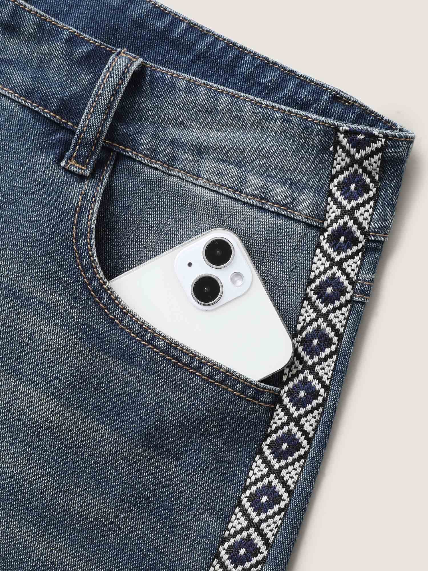 Lace Trim Classic Cut Denim Shorts