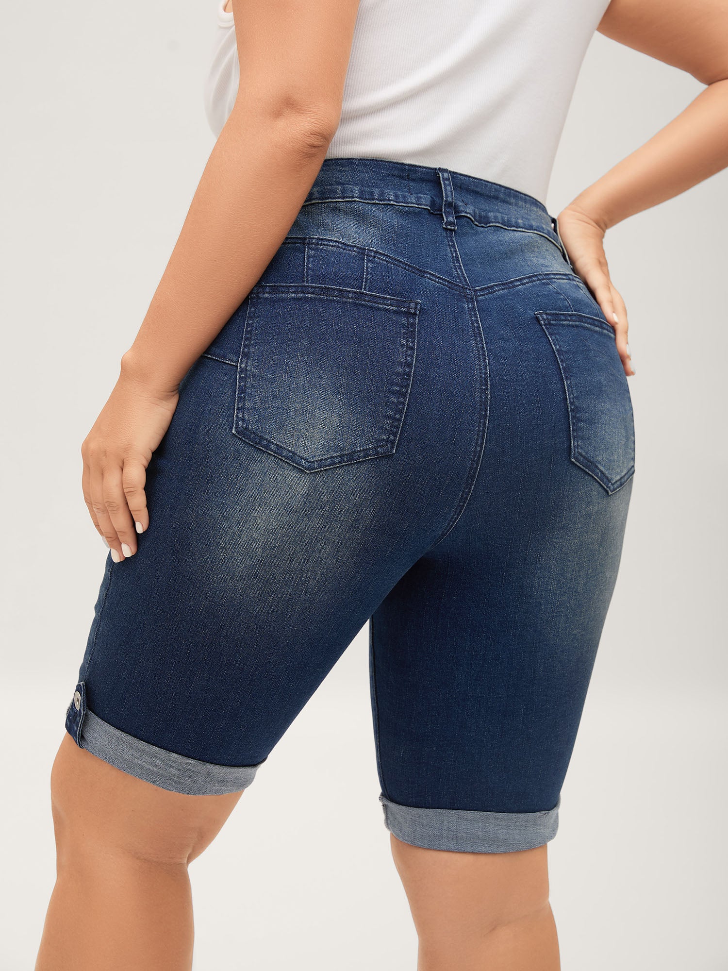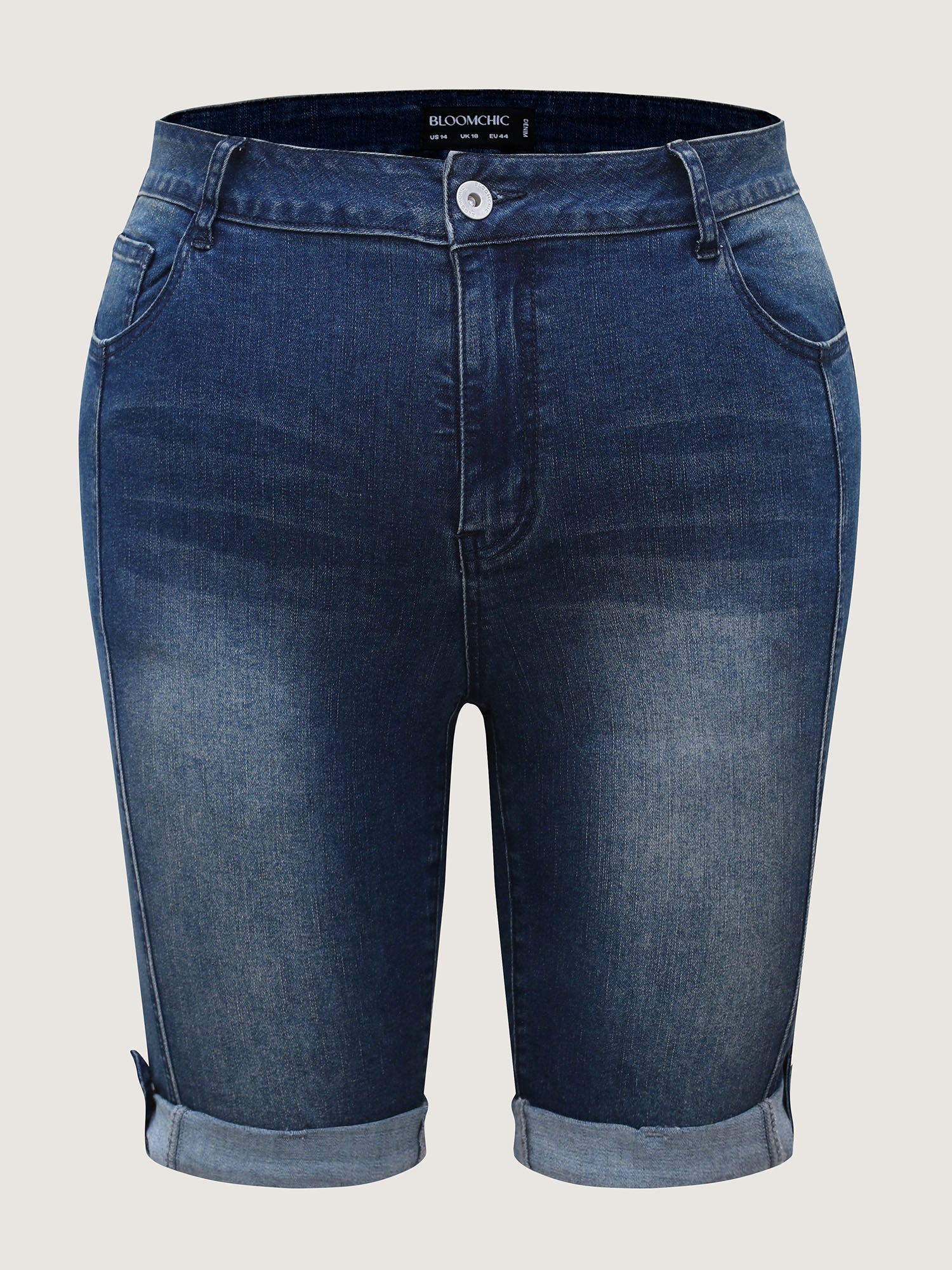 Shop Rolled Hem Skinny-Fit Denim Shorts now and redefine your style with confidence at BloomChic. Tailored for mid and plus-size women. This trendy Denim Women, sizes 10-30. Color:Midblue;Prints:Non;Pocket:Slanted pocket;Belt:No-belt;Closure Type:Zipper;Wash:Medium Wash
