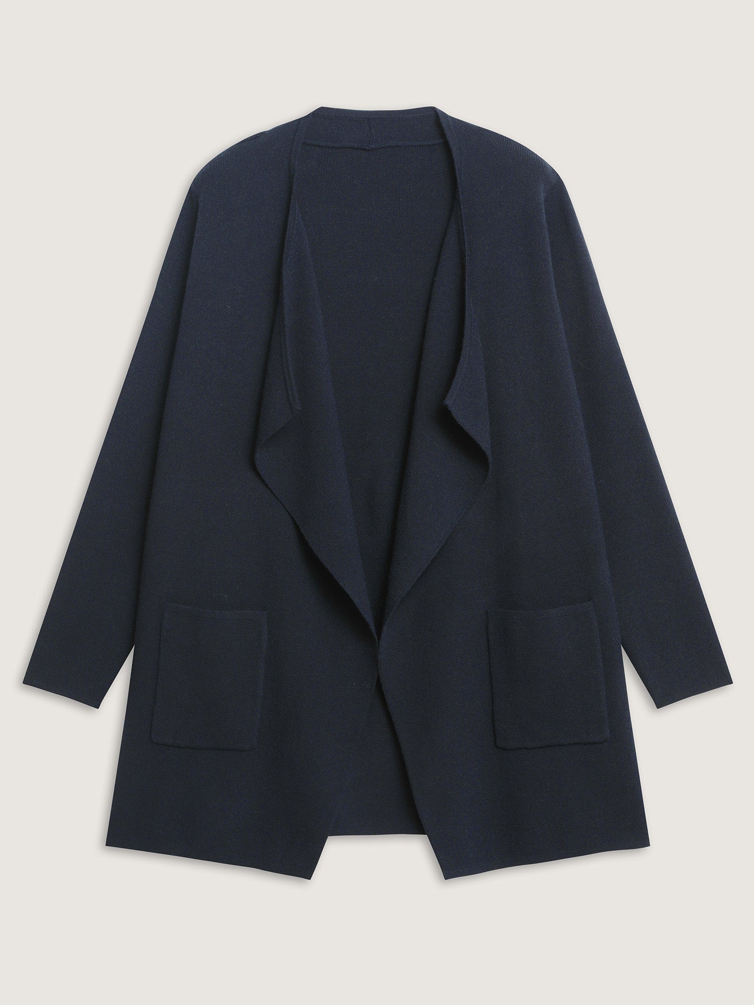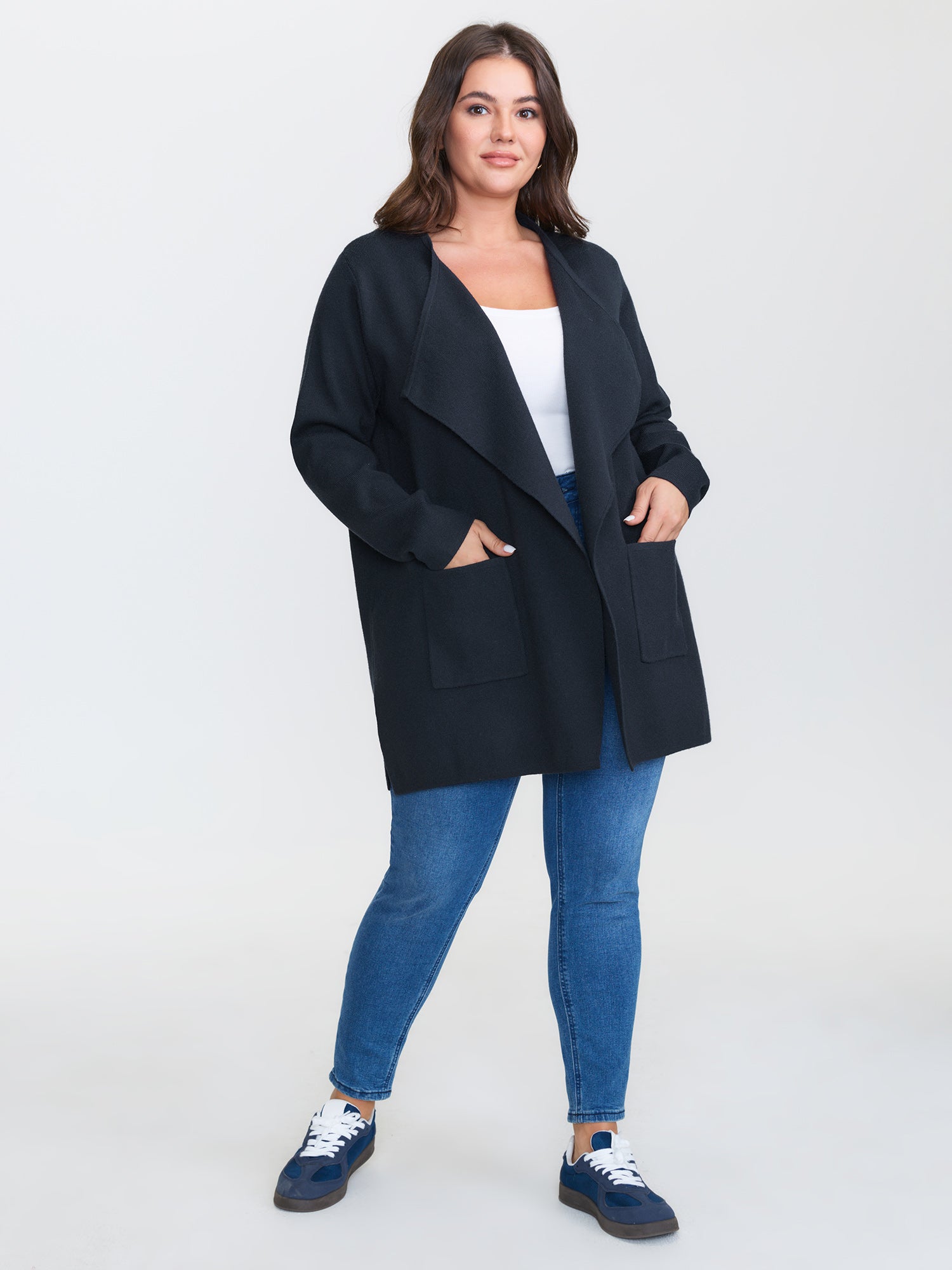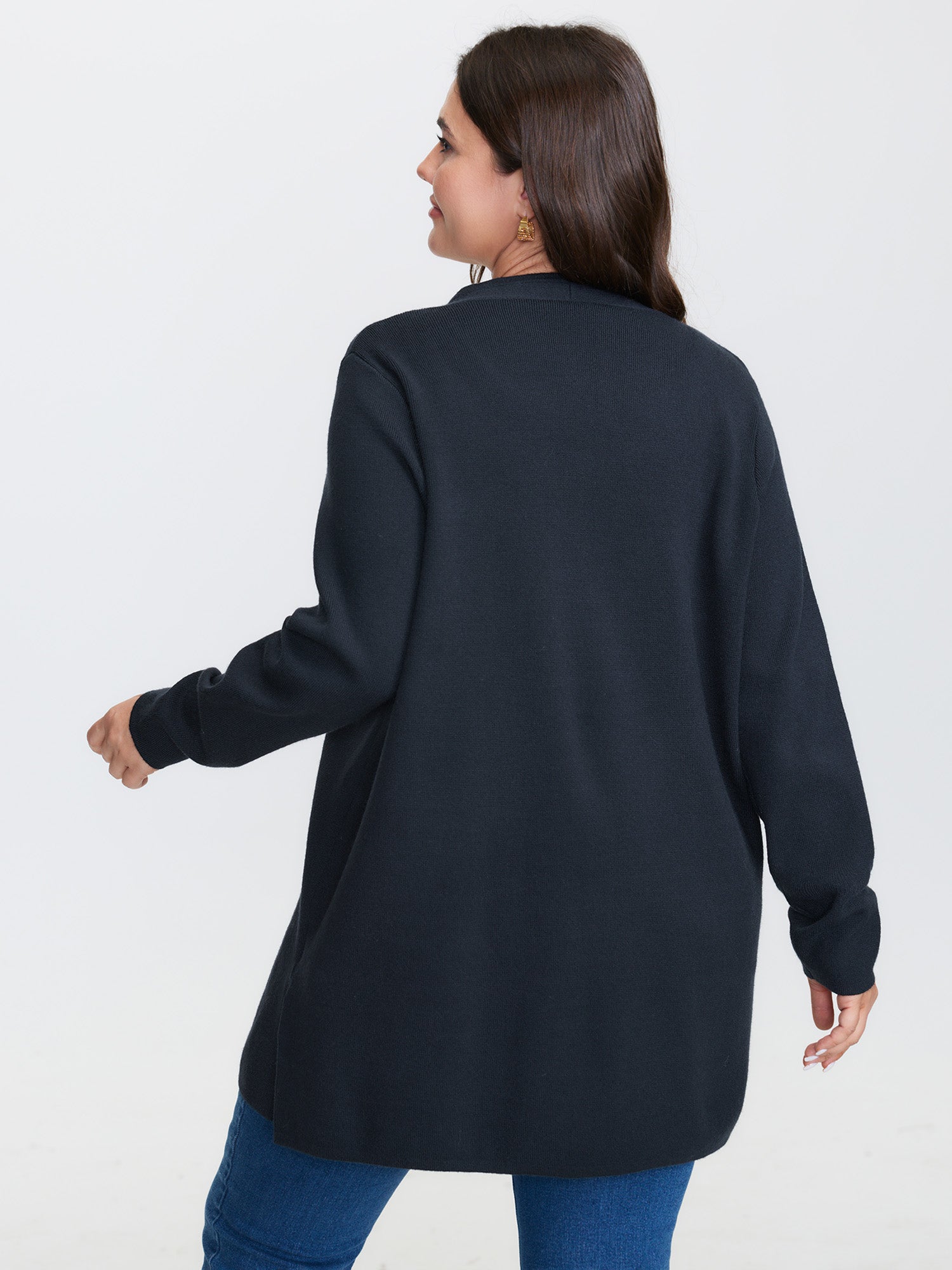 Shop Asymmetrical Notched Lapel Collar Open Cardigan now and redefine your style with confidence at BloomChic. Tailored for mid and plus-size women. This trendy Sweaters Cardigans Women, sizes 10-30. Color:Navy;Style:Leisure;Neckline:Lapel Collar;Sleeve Type:Raglan sleeve;Prints:Non;Details:Asymmetrical;Pocket:Patch pocket;Belt:No-belt;Closure Type:Open front without closure