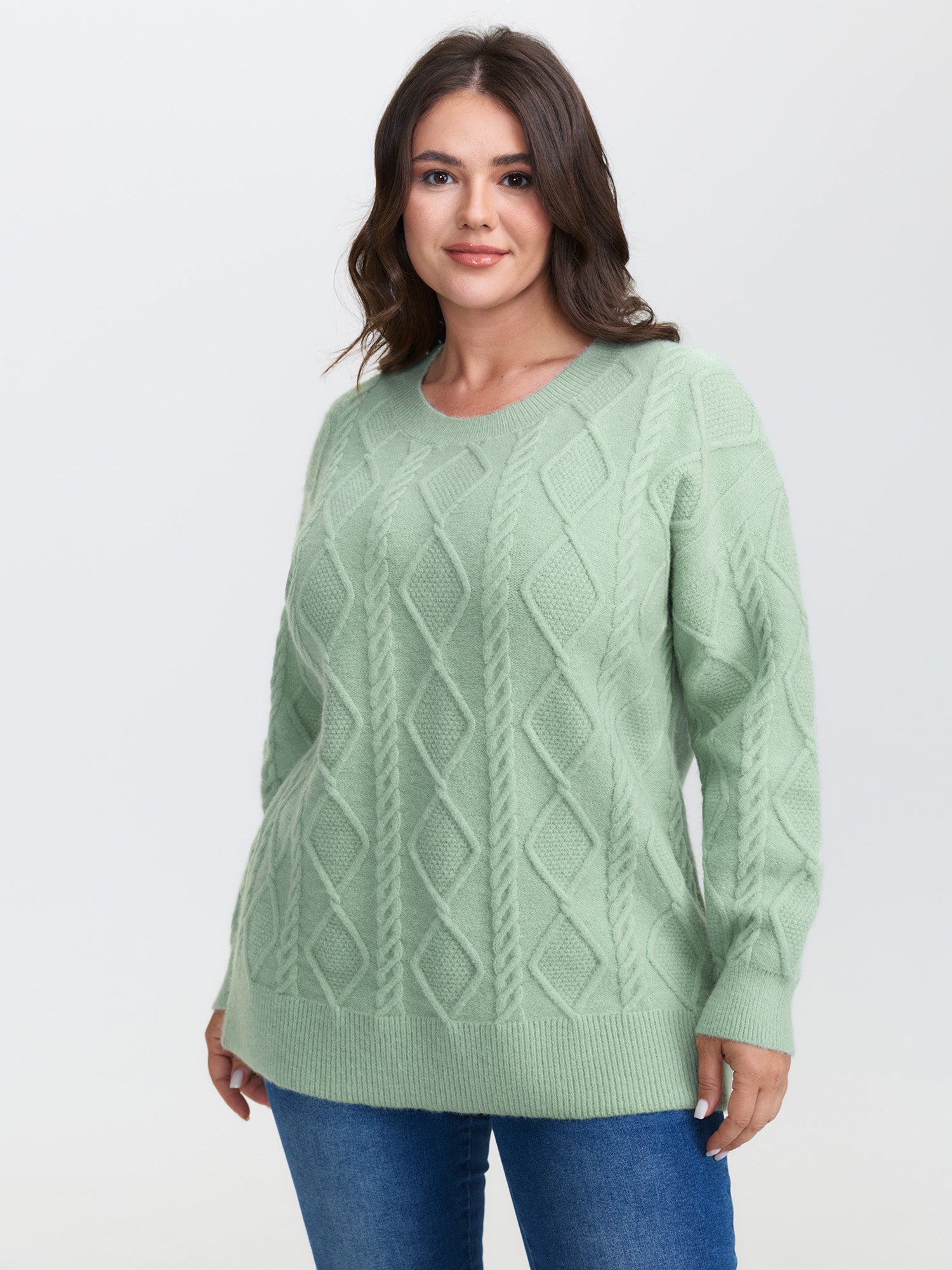 Shop Cableknit Round Neck Ribbed Hem Pullover now and redefine your style with confidence at BloomChic. Tailored for mid and plus-size women. This trendy Sweaters Cardigans Women, sizes 10-30. Color:Mint;Style:Leisure;Neckline:Round Neck;Sleeve Type:Drop shoulder sleeve;Prints:Non;Details:Cable Knit, Texture;Pocket:No-pocket;Belt:No-belt;Closure Type:Non