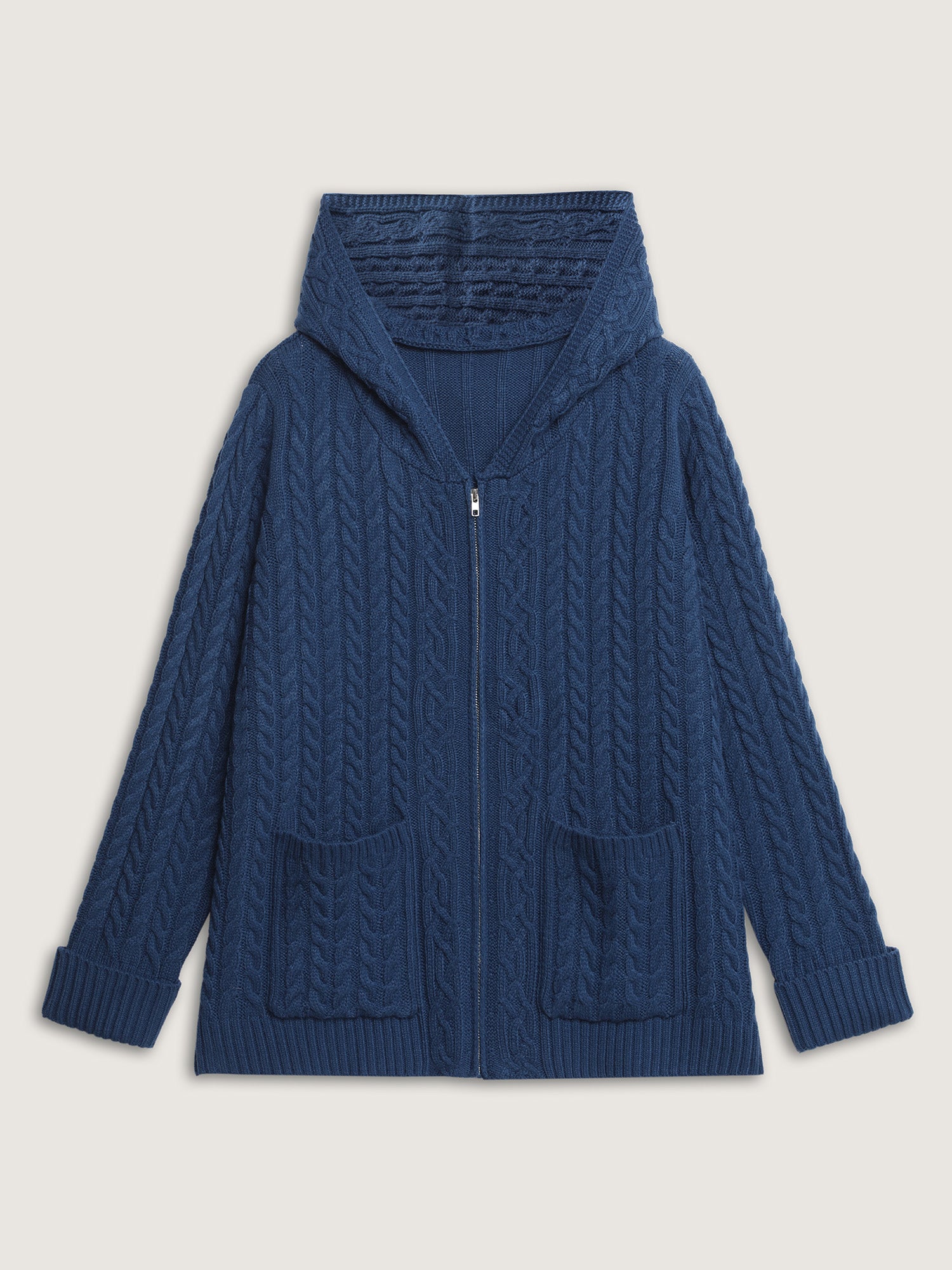 Shop Cableknit Zipper Hooded Knit Cardigan now and redefine your style with confidence at BloomChic. Tailored for mid and plus-size women. This trendy Sweaters Cardigans Women, sizes 10-30. Color:Aegean;Style:Leisure;Neckline:Hooded;Sleeve Type:Regular Sleeve;Prints:Non;Details:Cable Knit, Texture;Pocket:Patch pocket;Belt:No-belt;Closure Type:Zipper