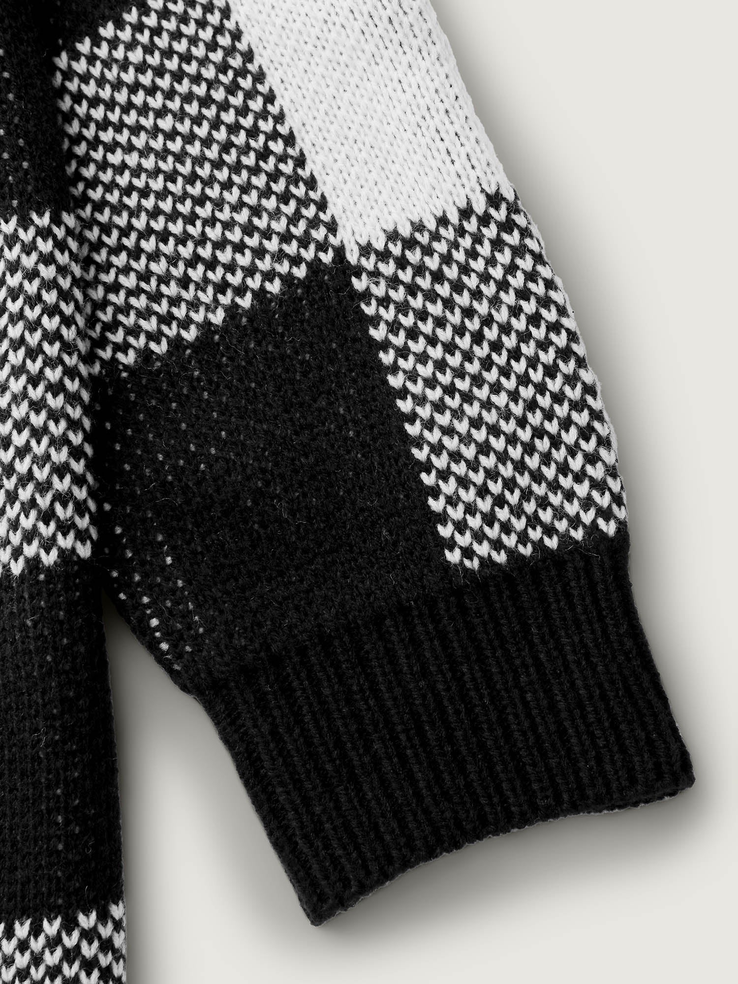 Checkered Jacquard Folded Collar Knit Cardigan