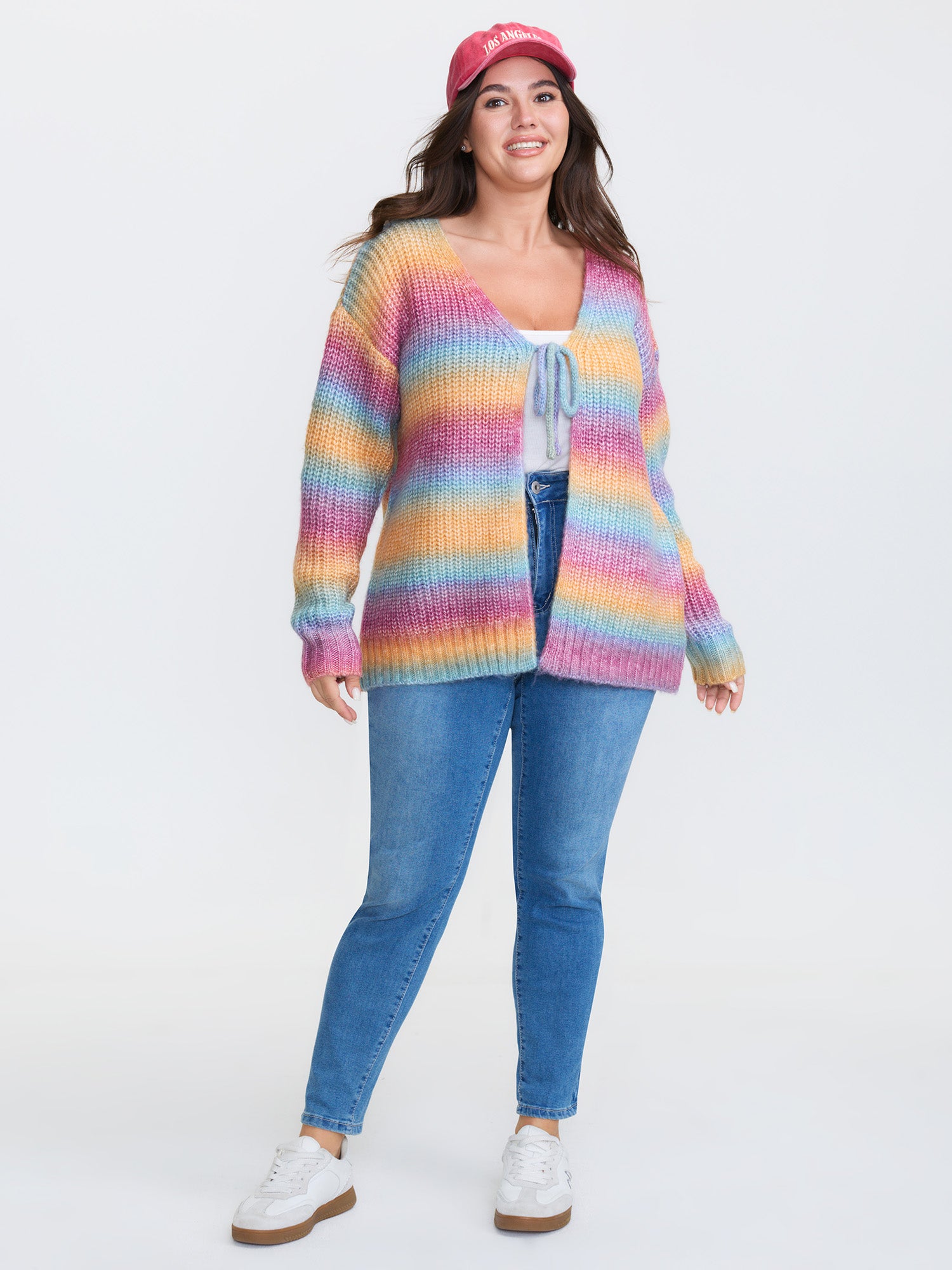 Shop Colorful Front-Tie Heather Knit Cardigan now and redefine your style with confidence at BloomChic. Tailored for mid and plus-size women. This trendy Sweaters Cardigans Women, sizes 10-30. Color:Multicolor;Style:Playful;Neckline:Deep V-neck;Sleeve Type:Drop shoulder sleeve;Prints:Ombre;Details:Tie knot;Pocket:No-pocket;Belt:No-belt;Closure Type:Tie belt