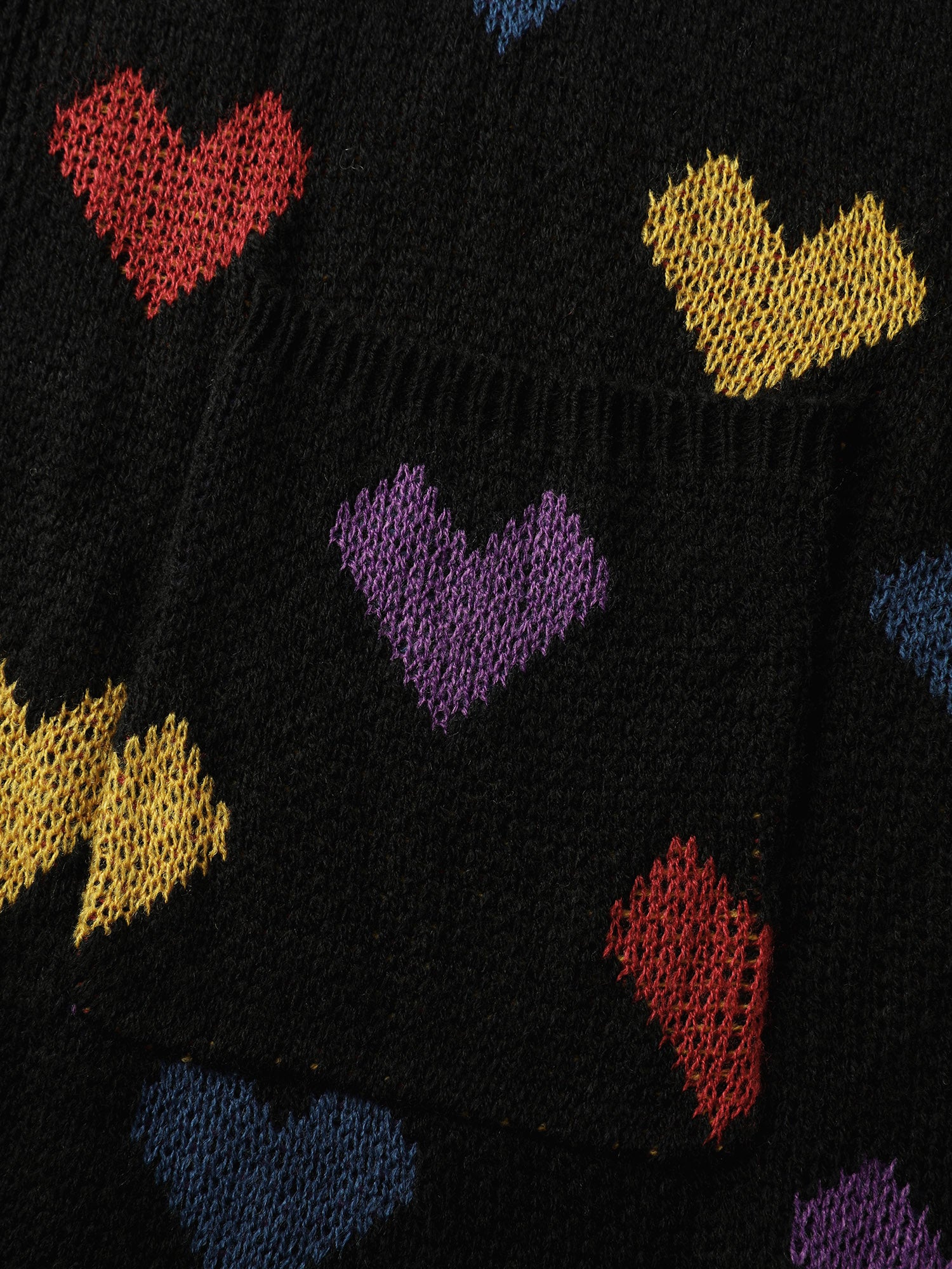 Colorful Hearts Jacquard Pockets Knit Cardigan