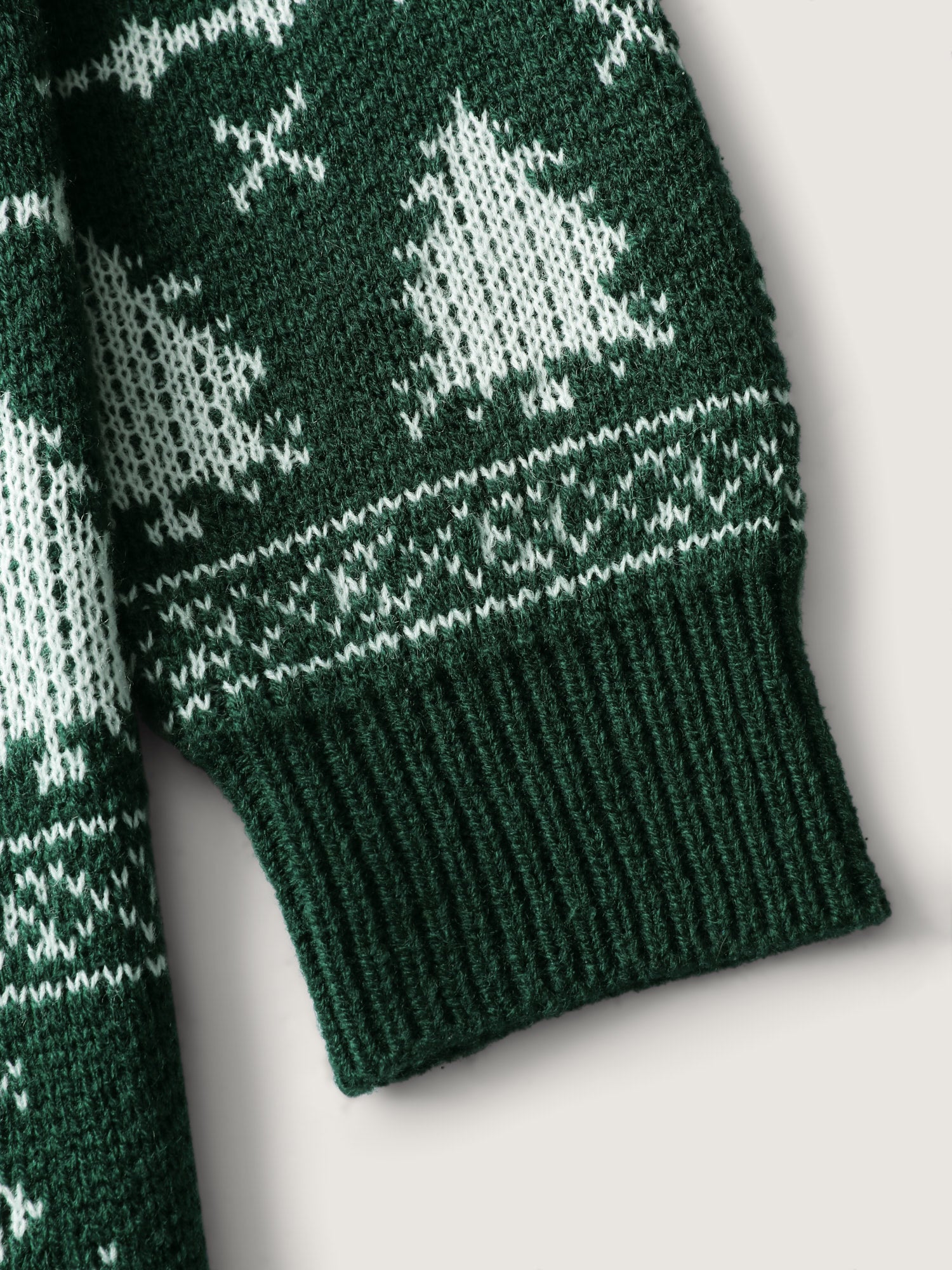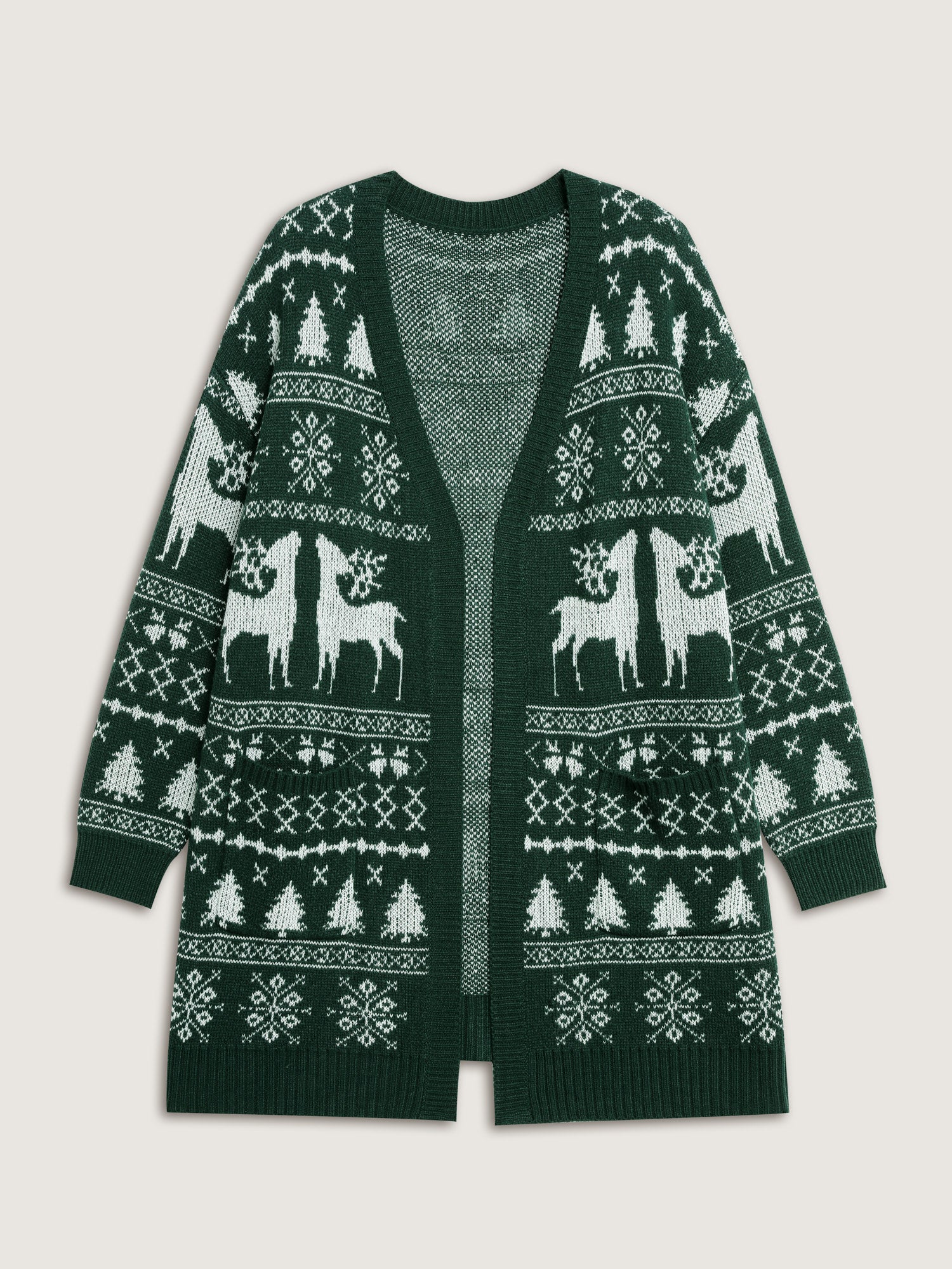 Elk Christmas Print Jacquard Open-Front Knit Cardigan