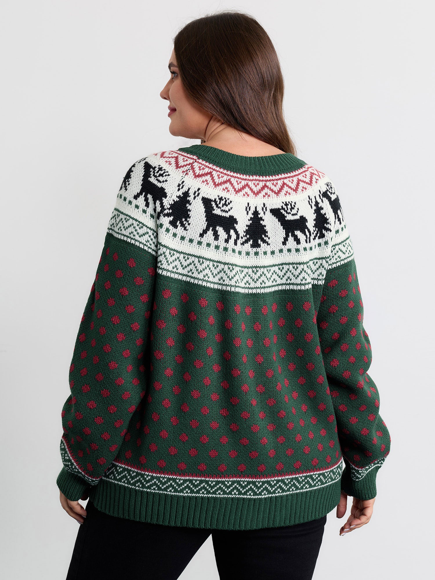 Shop Fair-Isle Holiday Buttons Knit Cardigan now and redefine your style with confidence at BloomChic. Tailored for mid and plus-size women. This trendy Sweaters Cardigans Women, sizes 10-30. Color:DarkGreen;Neckline:Round Neck;Sleeve Type:Raglan sleeve;Pattern Type:Christmas;Prints:Polka dots;Details:Contrast;Pocket:No-pocket;Belt:No-belt;Closure Type:Button