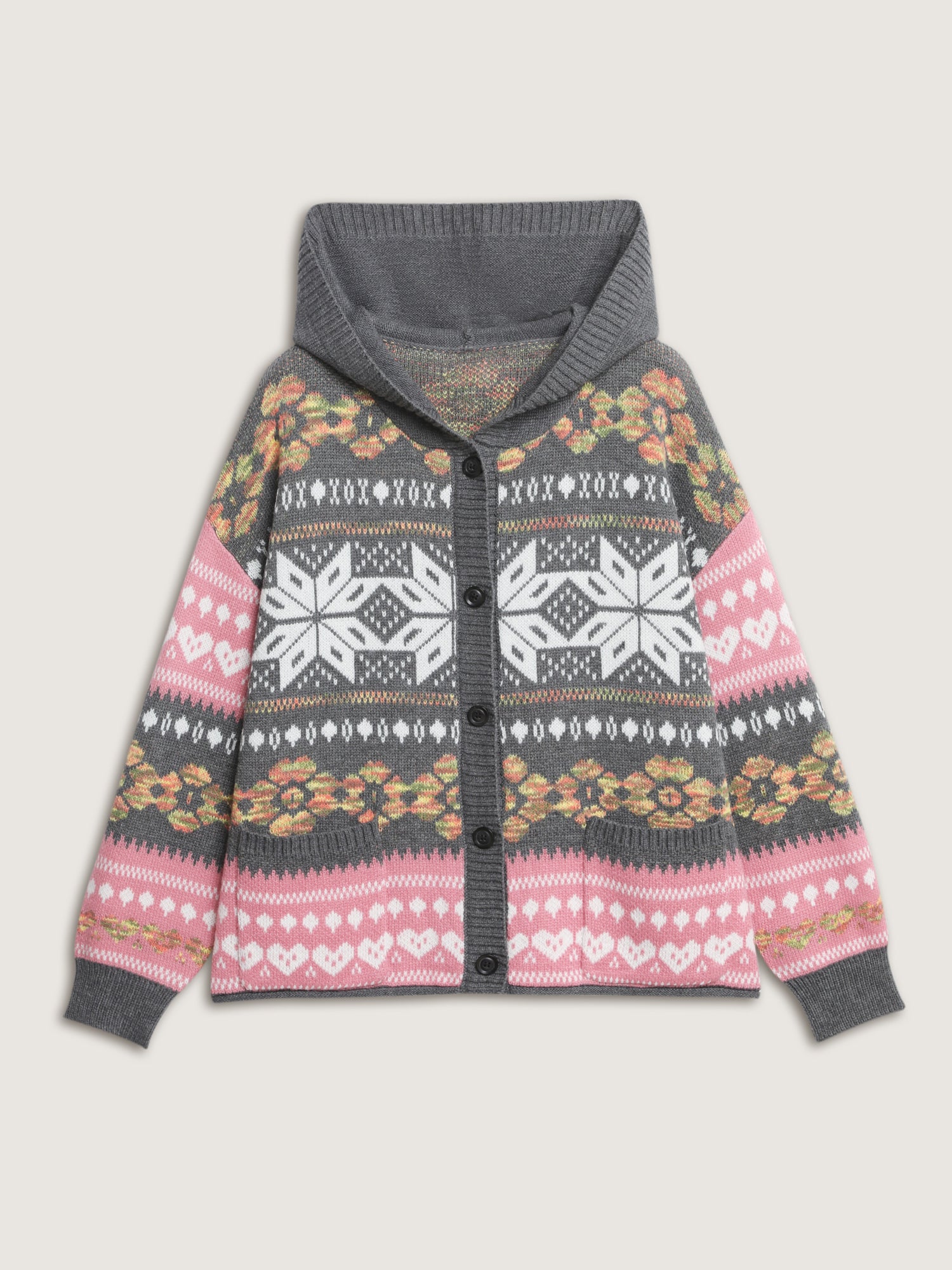 Shop Fair-Isle Pattern Jacquard Knit Cardigan now and redefine your style with confidence at BloomChic. Tailored for mid and plus-size women. This trendy Sweaters Cardigans Women, sizes 10-30. Color:Dark Gray;Style:Leisure;Neckline:Turtleneck;Sleeve Type:Drop shoulder sleeve;Prints:Bohemian print;Details:Button, Contrast;Pocket:Patch pocket;Belt:No-belt;Closure Type:Button