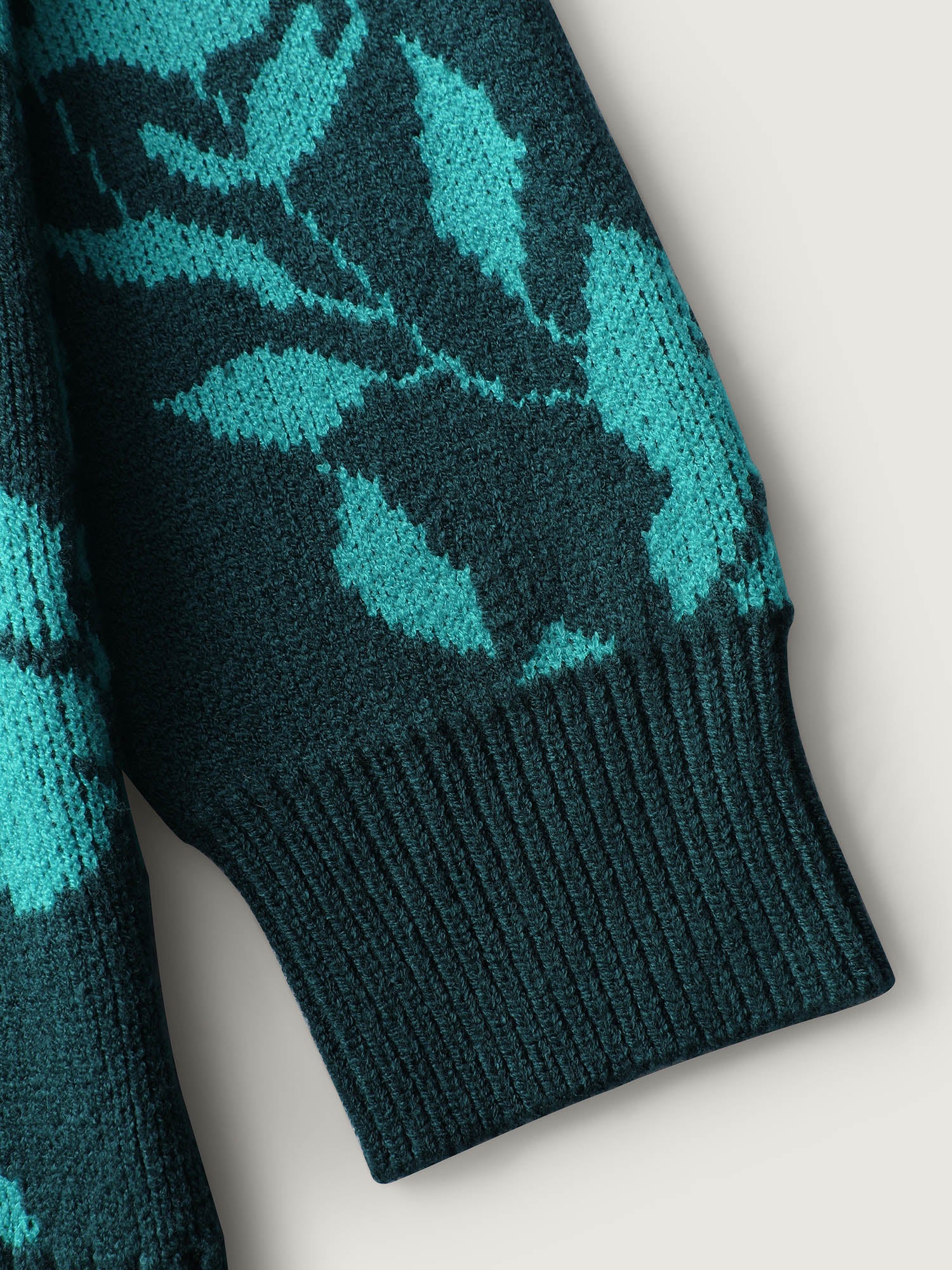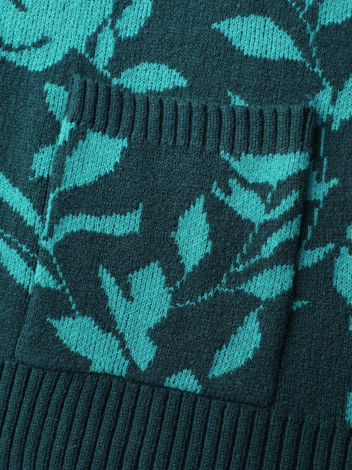 Floral Print V-Neck Ribbed Knit Cardigan
