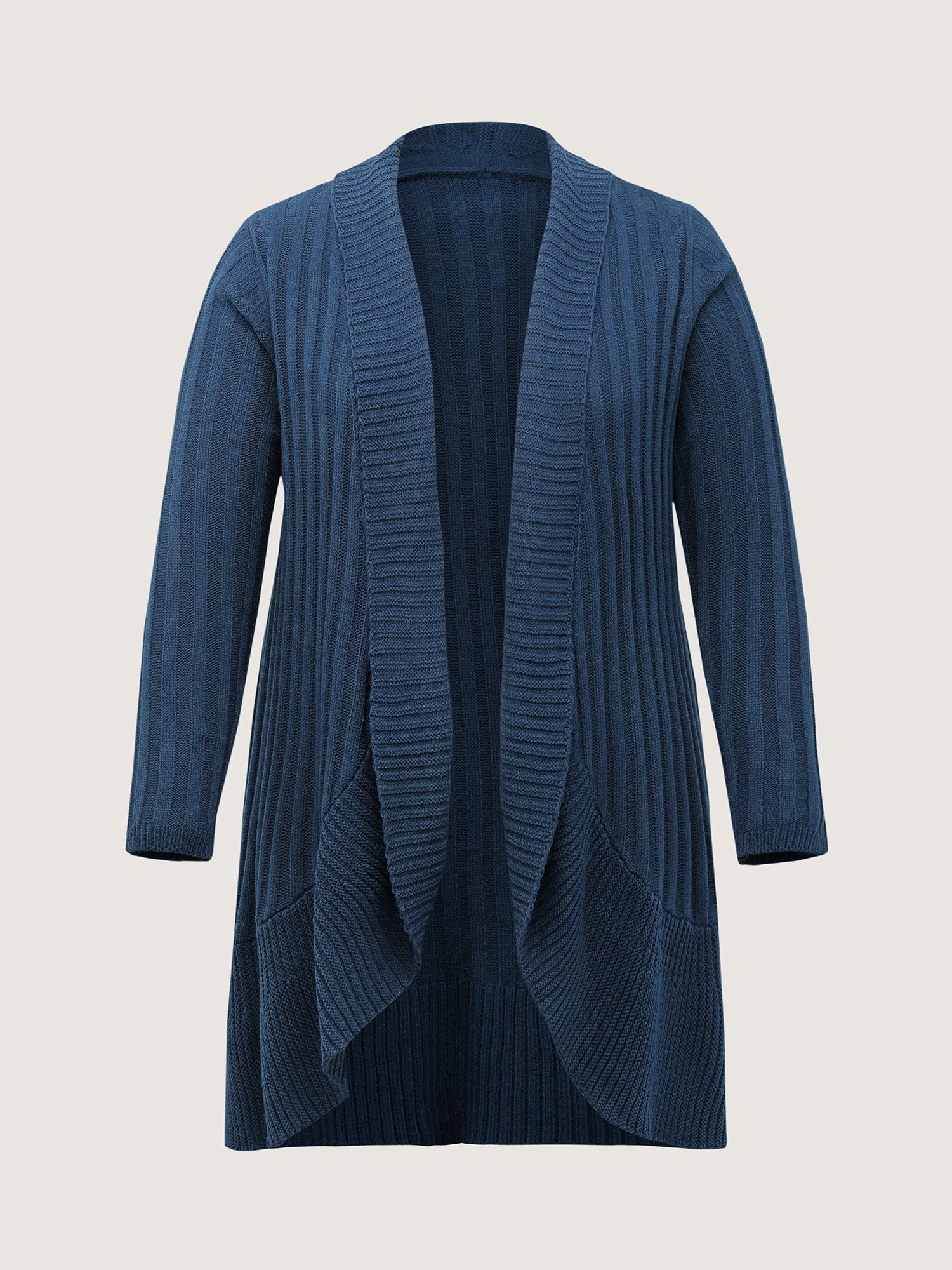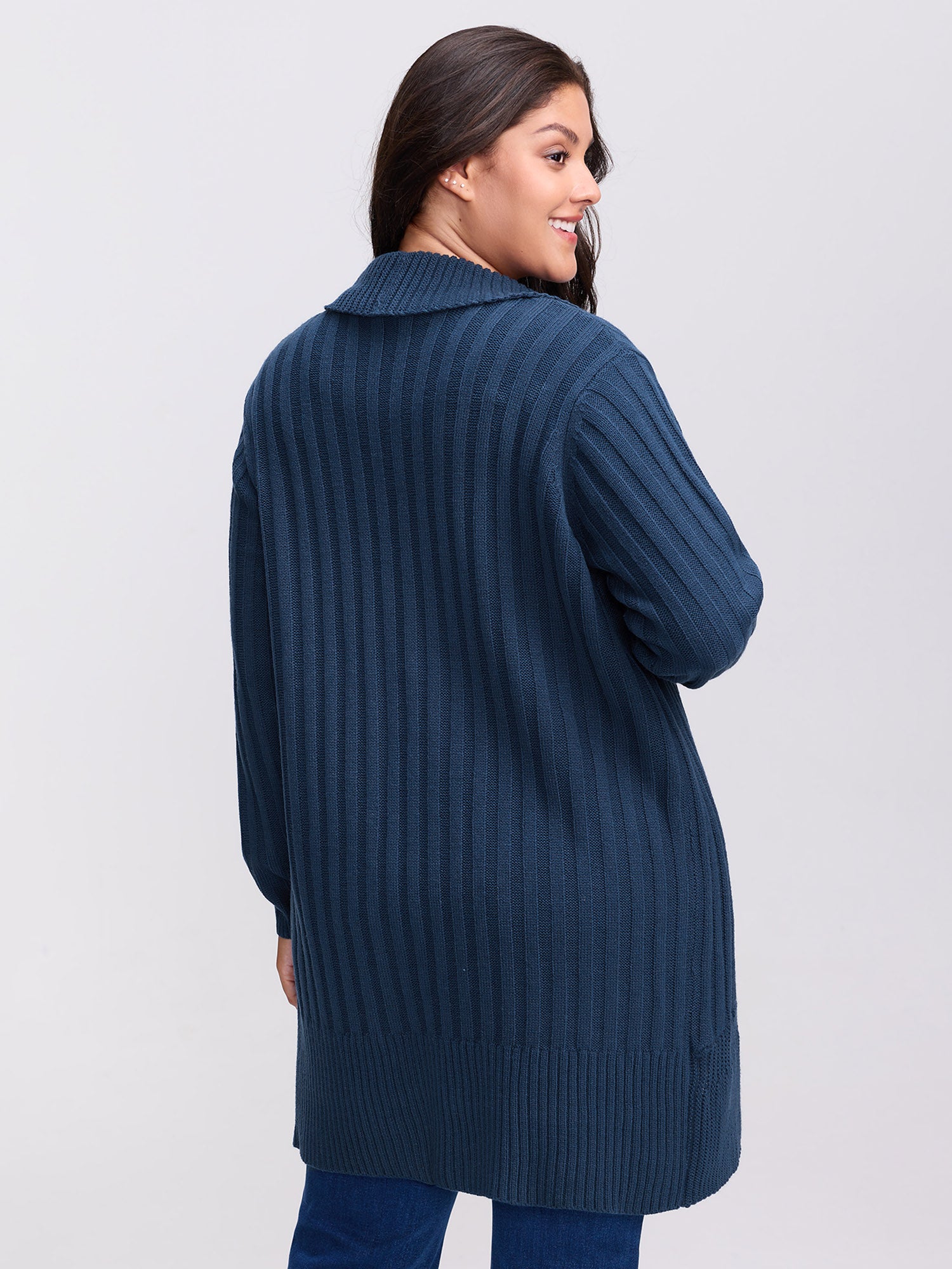 Folded Collar Ribbed Curvy Knit Cardigan