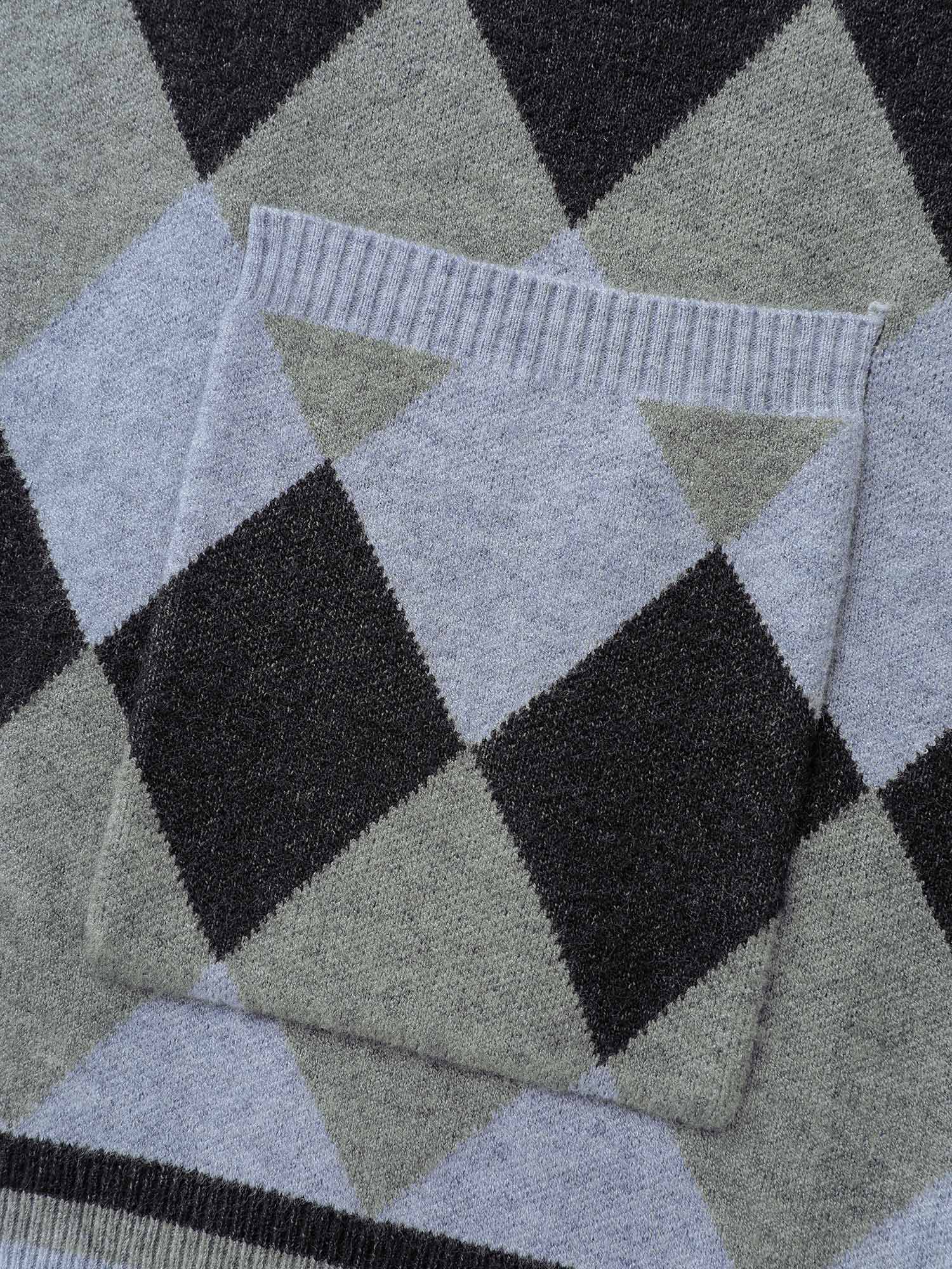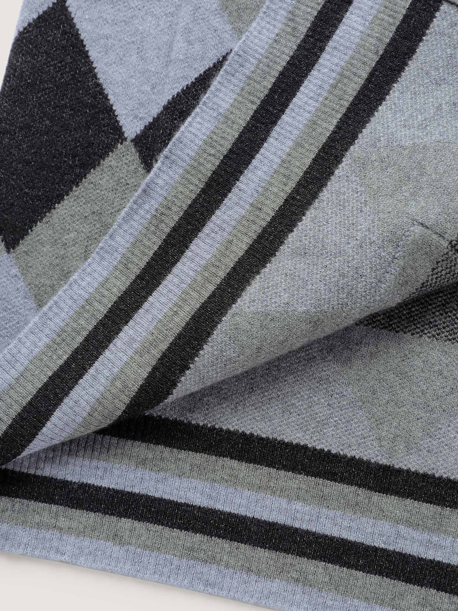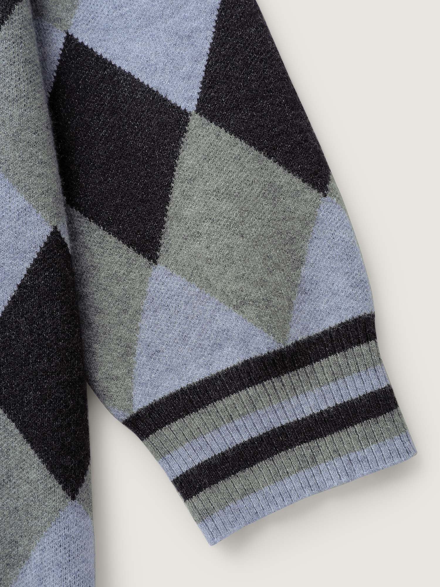 Geometrical Pattern Open-Front Knit Cardigan
