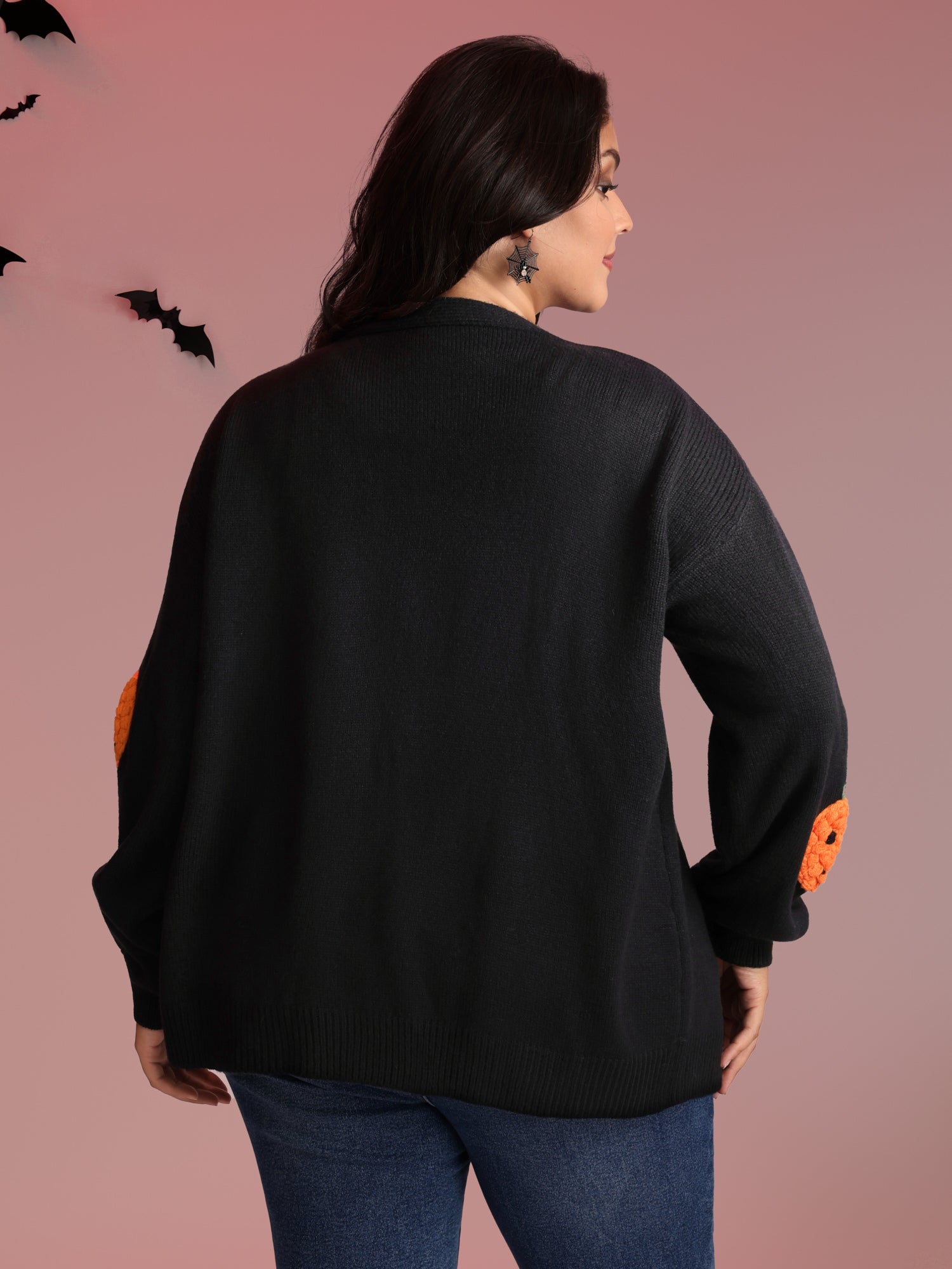Shop Happy Pumpkin Crochet Knit Cardigan now and redefine your style with confidence at BloomChic. Tailored for mid and plus-size women. This trendy Sweaters Cardigans Women, sizes 10-30. Color:Black;Neckline:Kimono collar;Sleeve Type:Drop shoulder sleeve;Prints:Fruit and vegetable print;Details:Crochet;Pocket:No-pocket;Belt:No-belt;Closure Type:Open front without closure