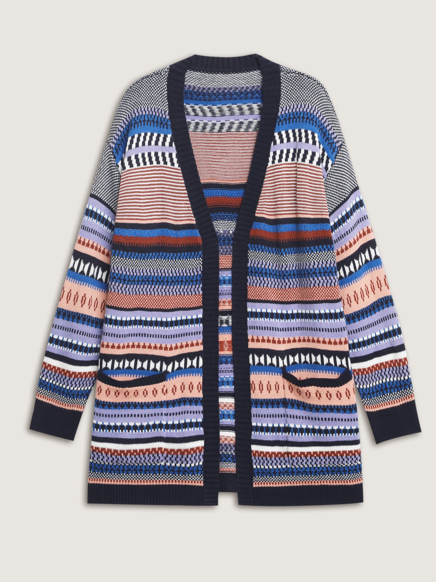 Shop Multicolor Stripe Jacquard Pockets Knit Cardigan now and redefine your style with confidence at BloomChic. Tailored for mid and plus-size women. This trendy Sweaters Cardigans Women, sizes 10-30. Color:Midnight;Style:Playful;Neckline:Kimono collar;Sleeve Type:Drop shoulder sleeve;Prints:Geometric & color block;Details:Contrast;Pocket:Patch pocket;Belt:No-belt;Closure Type:Open front without closure