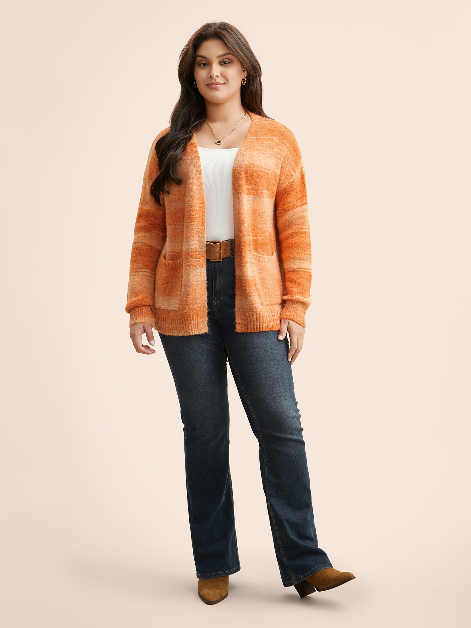 Shop Ombre Patch Pocket Drop Shoulder Cardigan now and redefine your style with confidence at BloomChic. Tailored for mid and plus-size women. This trendy Sweaters Cardigans Women, sizes 10-30. Season:Winter;Color:Brightorange;Style:Casual;Neckline:Kimono collar;Sleeve Type:Drop shoulder sleeve;Prints:Ombre;Details:Non;Pocket:Patch pocket;Snap Fastener:No-snap fastener;Belt:No-belt;Closure Type:Open front without closure