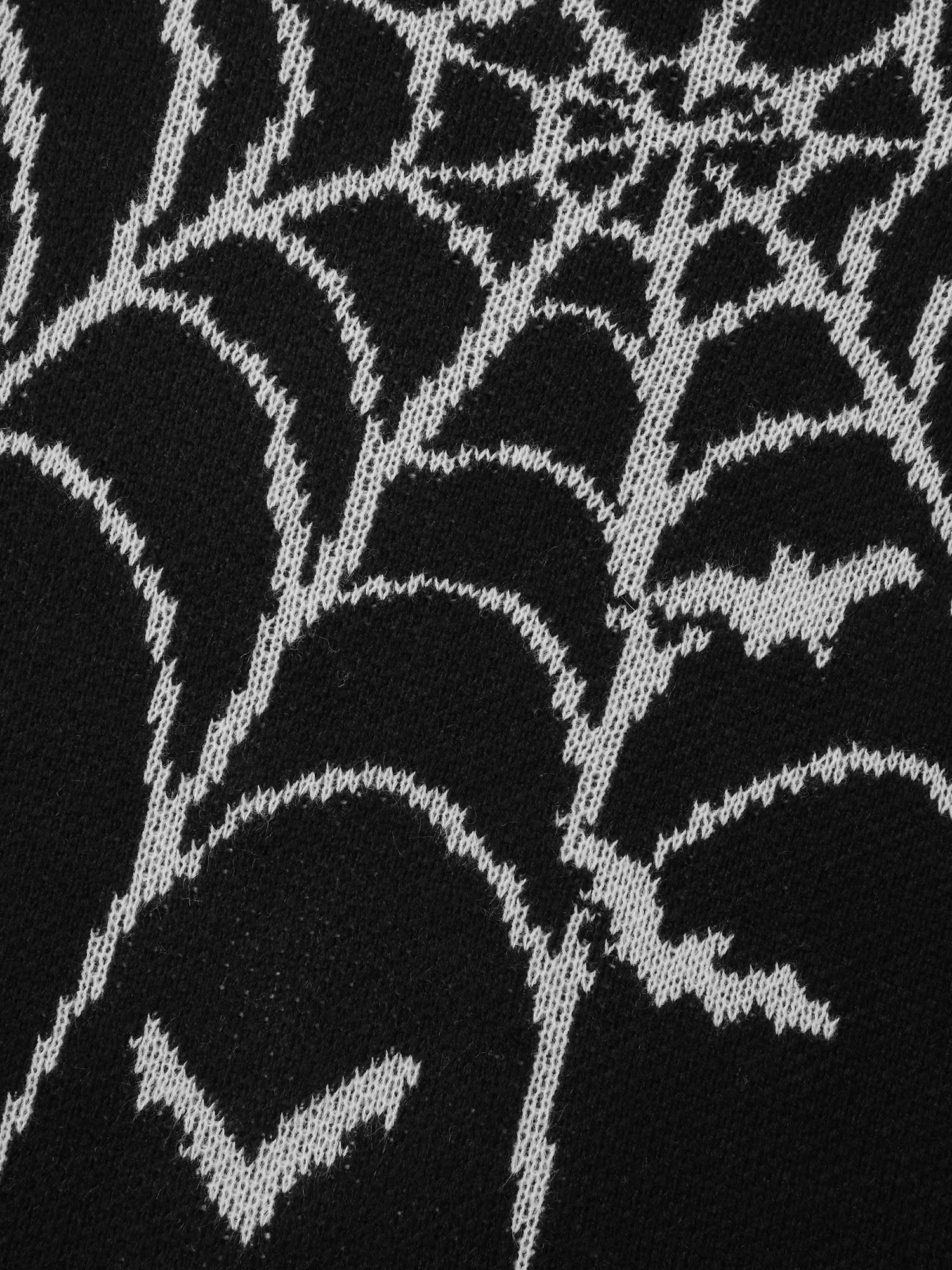 Spiderweb Bat Jacquard Pockets Knit Cardigan