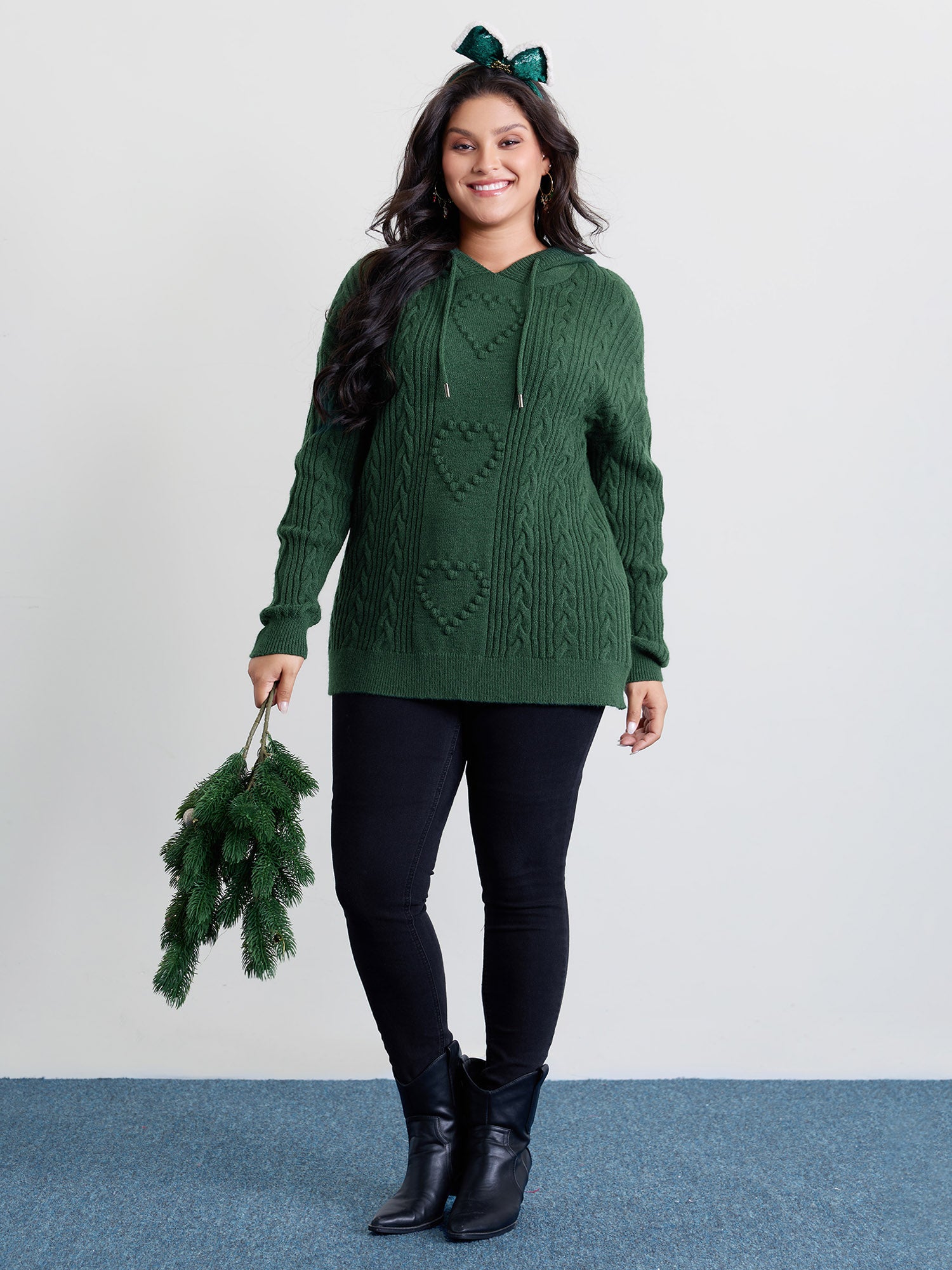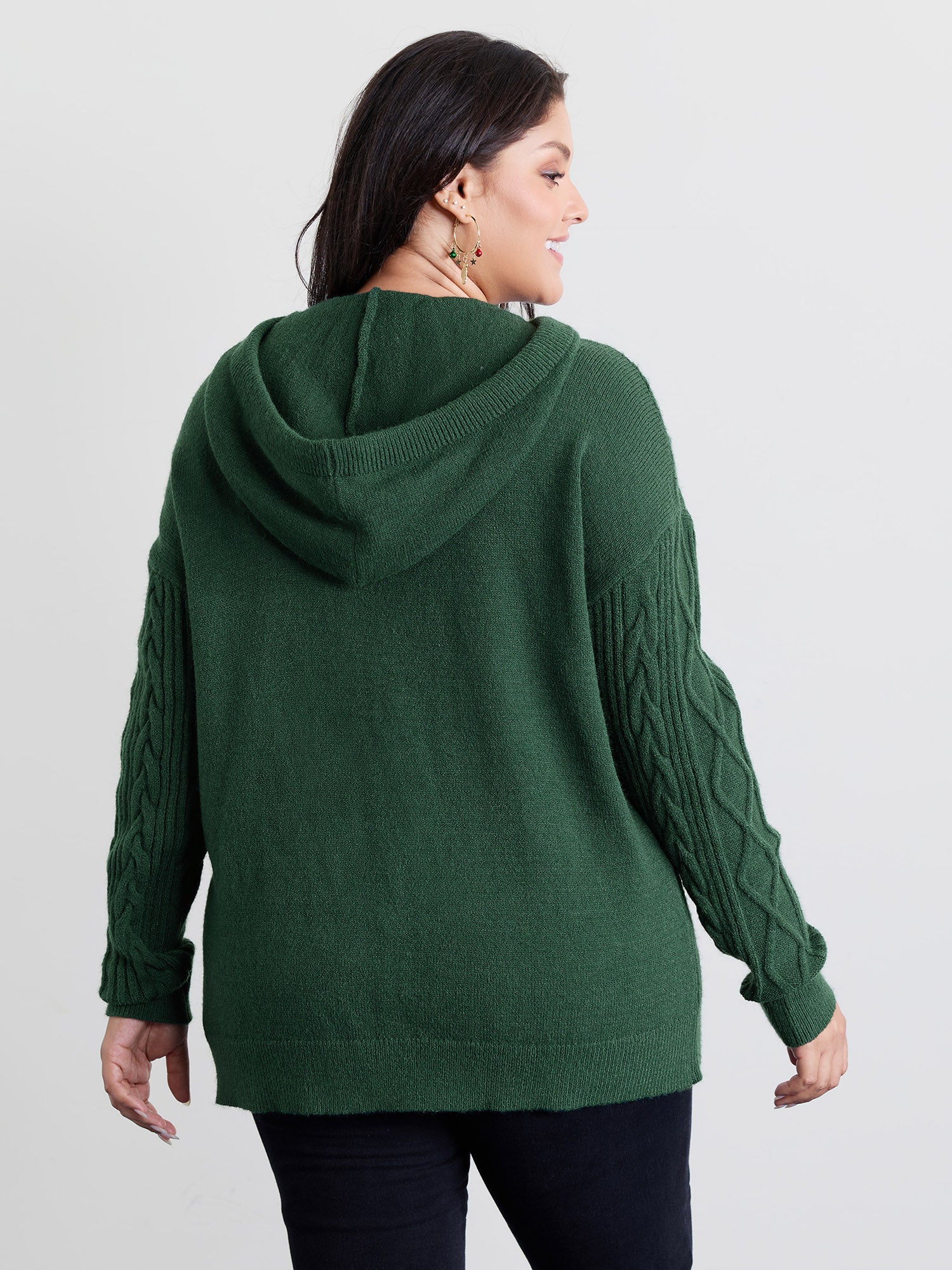 Shop Stretchy Textured Hooded Drawstring Pullover now and redefine your style with confidence at BloomChic. Tailored for mid and plus-size women. This trendy Sweaters Cardigans Women, sizes 10-30. Color:DarkGreen;Neckline:Hooded;Sleeve Type:Drop shoulder sleeve;Prints:Non;Details:Texture, Cable Knit;Pocket:No-pocket;Belt:No-belt;Closure Type:Non