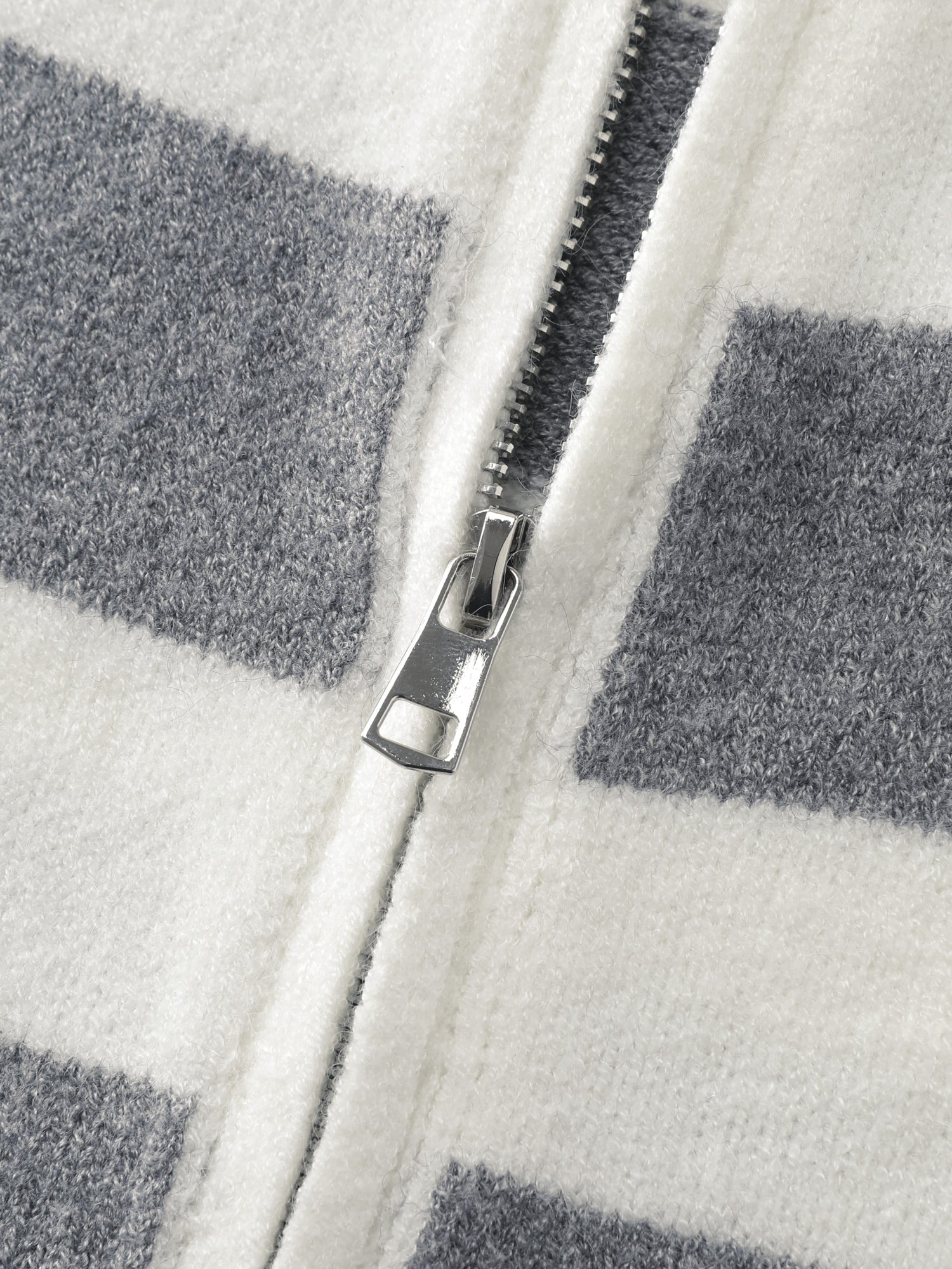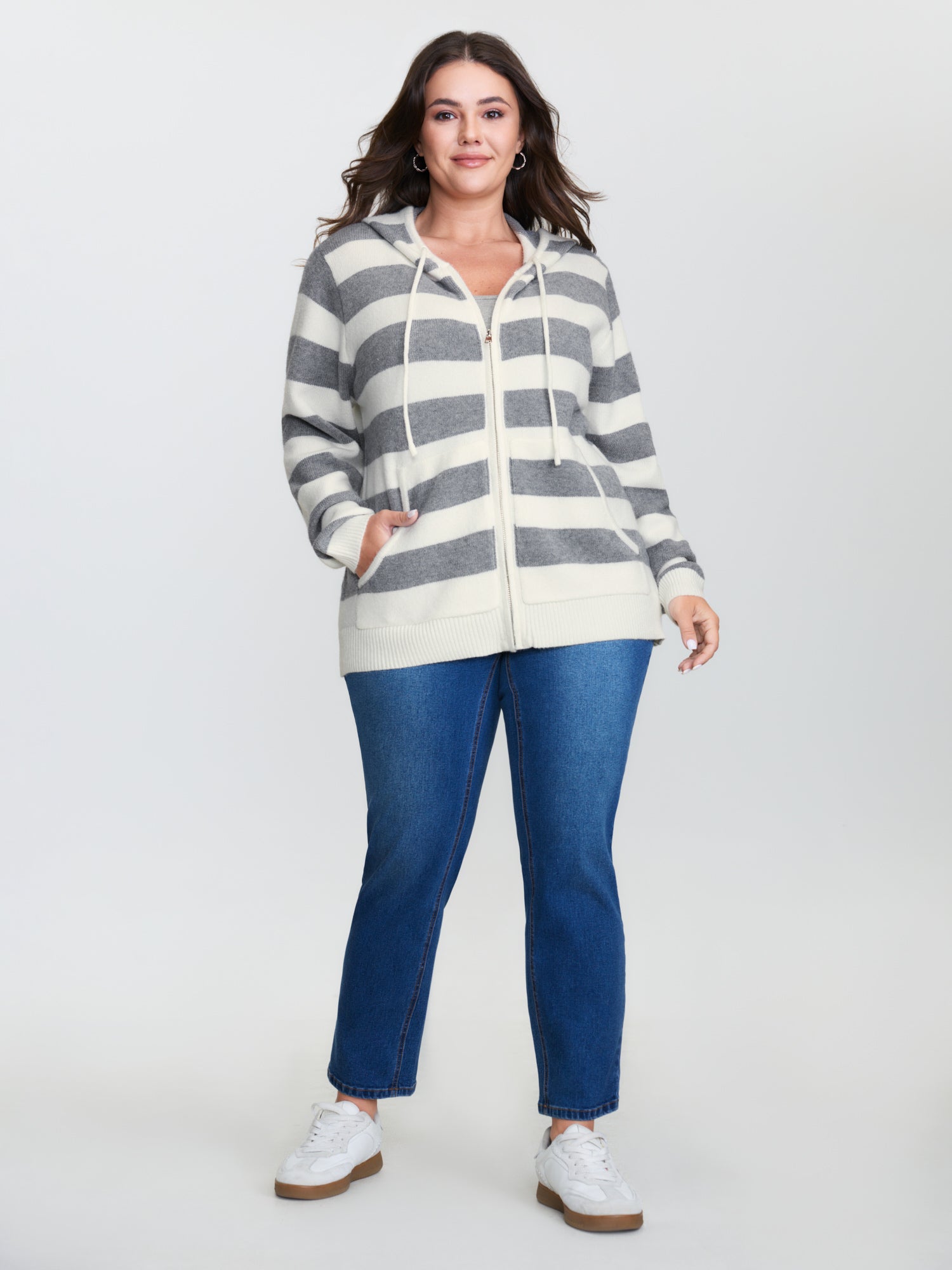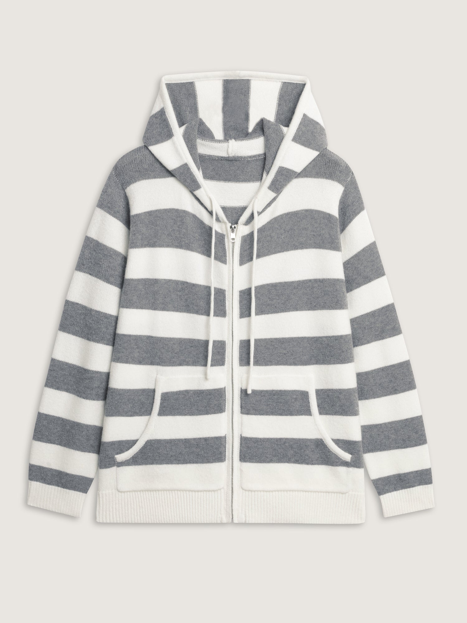 Shop Striped Color Contrast Hooded Cardigan now and redefine your style with confidence at BloomChic. Tailored for mid and plus-size women. This trendy Sweaters Cardigans Women, sizes 10-30. Color:Medium Gray;Style:Leisure;Neckline:Hooded;Sleeve Type:Regular Sleeve;Prints:Stripes;Details:Contrast, Drawstring;Pocket:Patch pocket;Belt:No-belt;Closure Type:Zipper