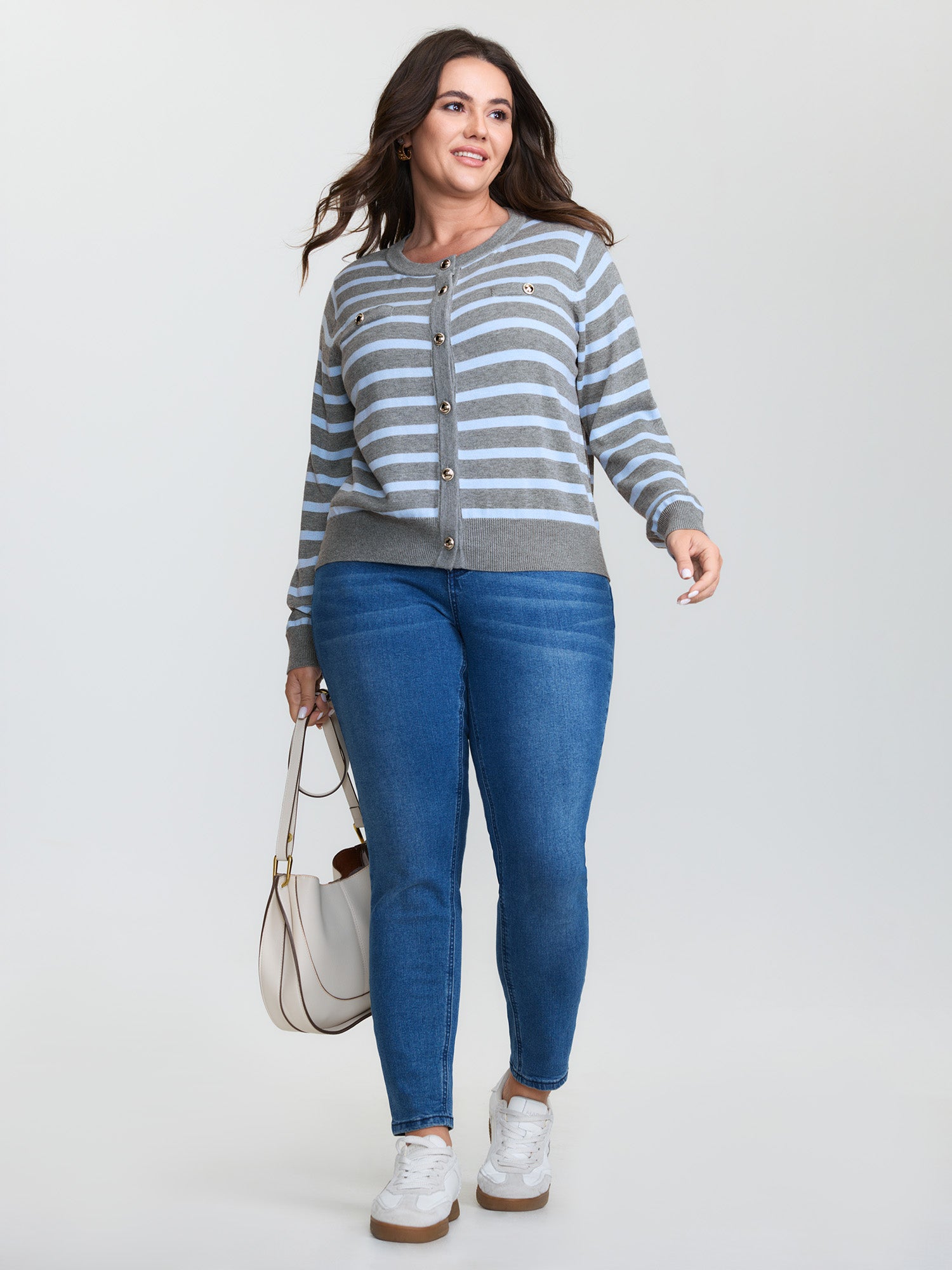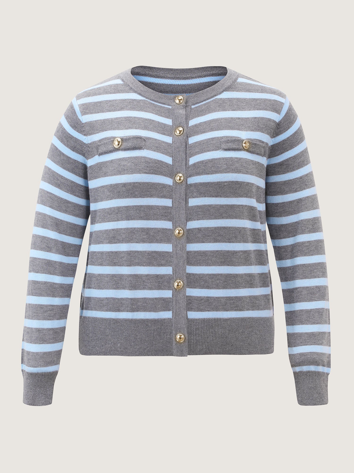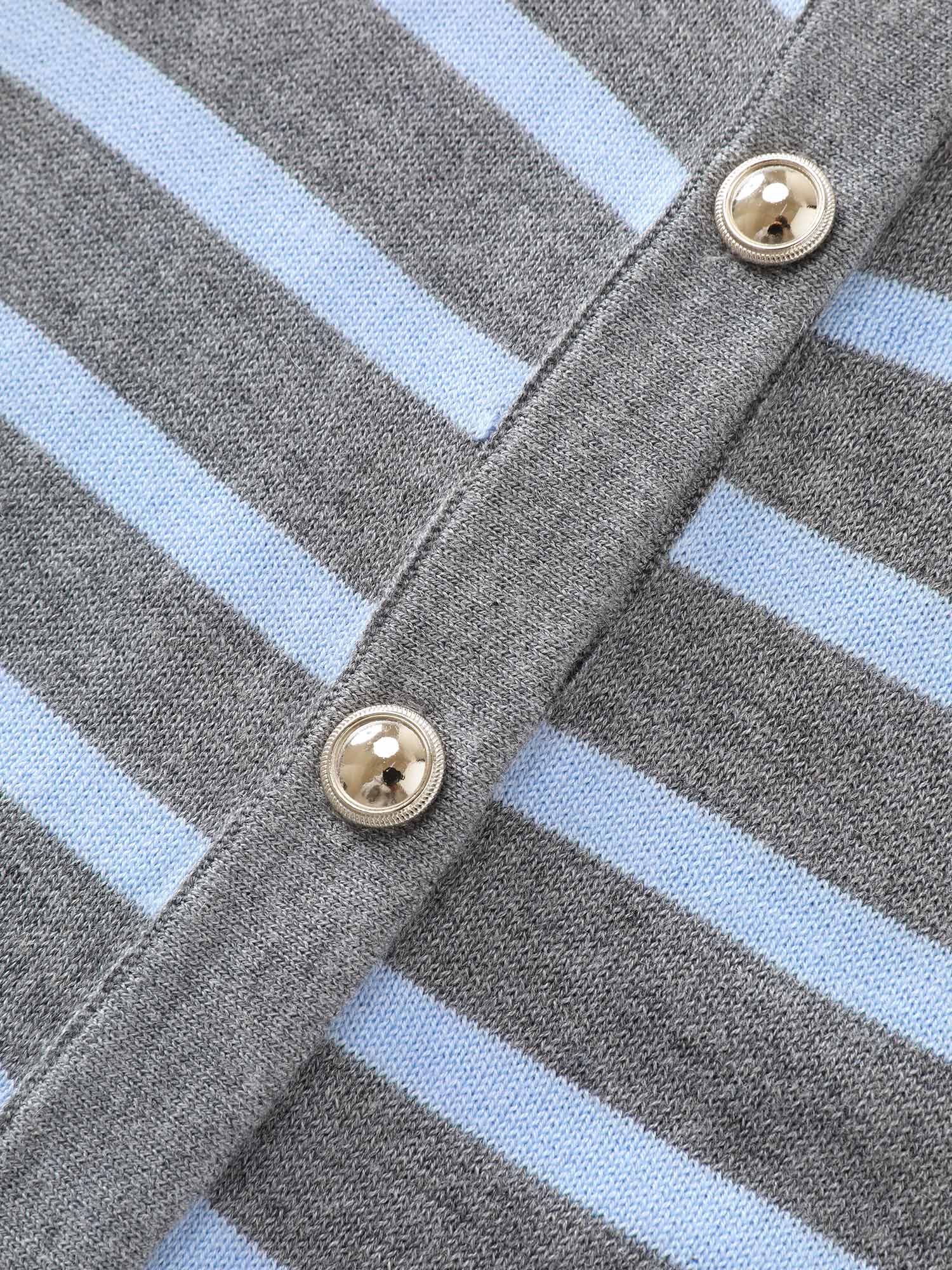 Shop Striped Metallic Button Knit Cardigan now and redefine your style with confidence at BloomChic. Tailored for mid and plus-size women. This trendy Sweaters Cardigans Women, sizes 10-30. Color:Medium Gray;Style:Leisure;Neckline:Round Neck;Sleeve Type:Regular Sleeve;Prints:Stripes;Details:Contrast, Button;Pocket:No-pocket;Belt:No-belt;Closure Type:Button