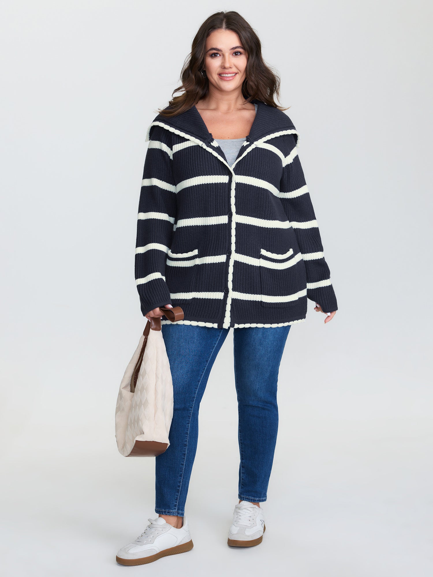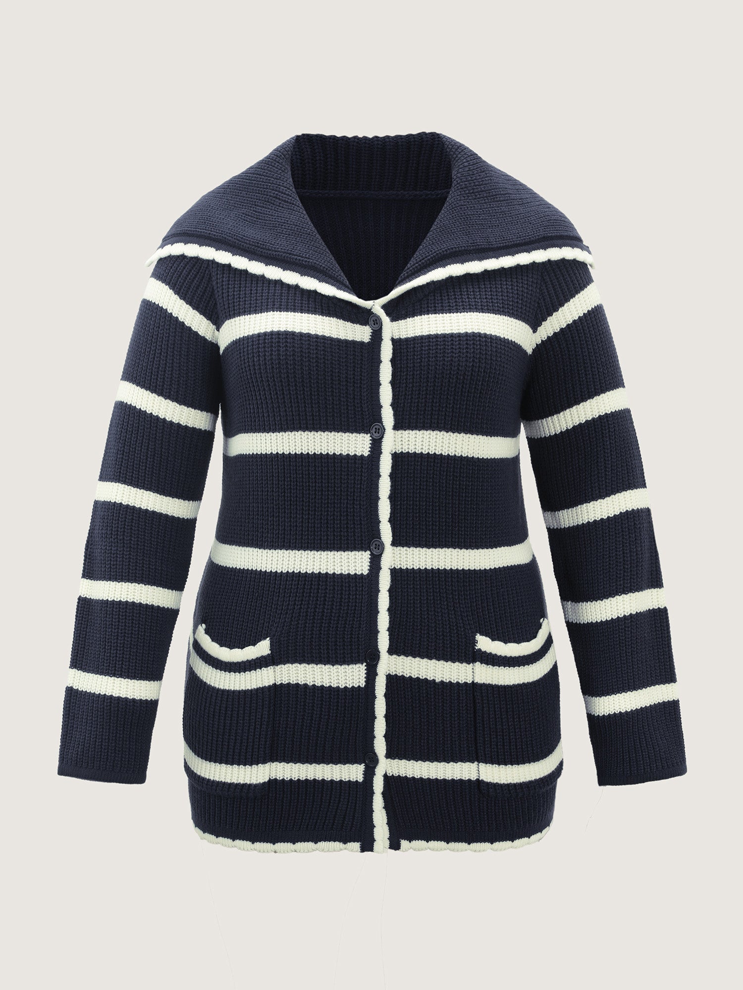 Shop Striped Sailor Collar Pockets Knit Cardigan now and redefine your style with confidence at BloomChic. Tailored for mid and plus-size women. This trendy Sweaters Cardigans Women, sizes 10-30. Color:Indigo;Style:Leisure;Neckline:Sailor Collar;Sleeve Type:Regular Sleeve;Prints:Geometric & color block;Details:Button;Pocket:Patch pocket;Belt:No-belt;Closure Type:Button