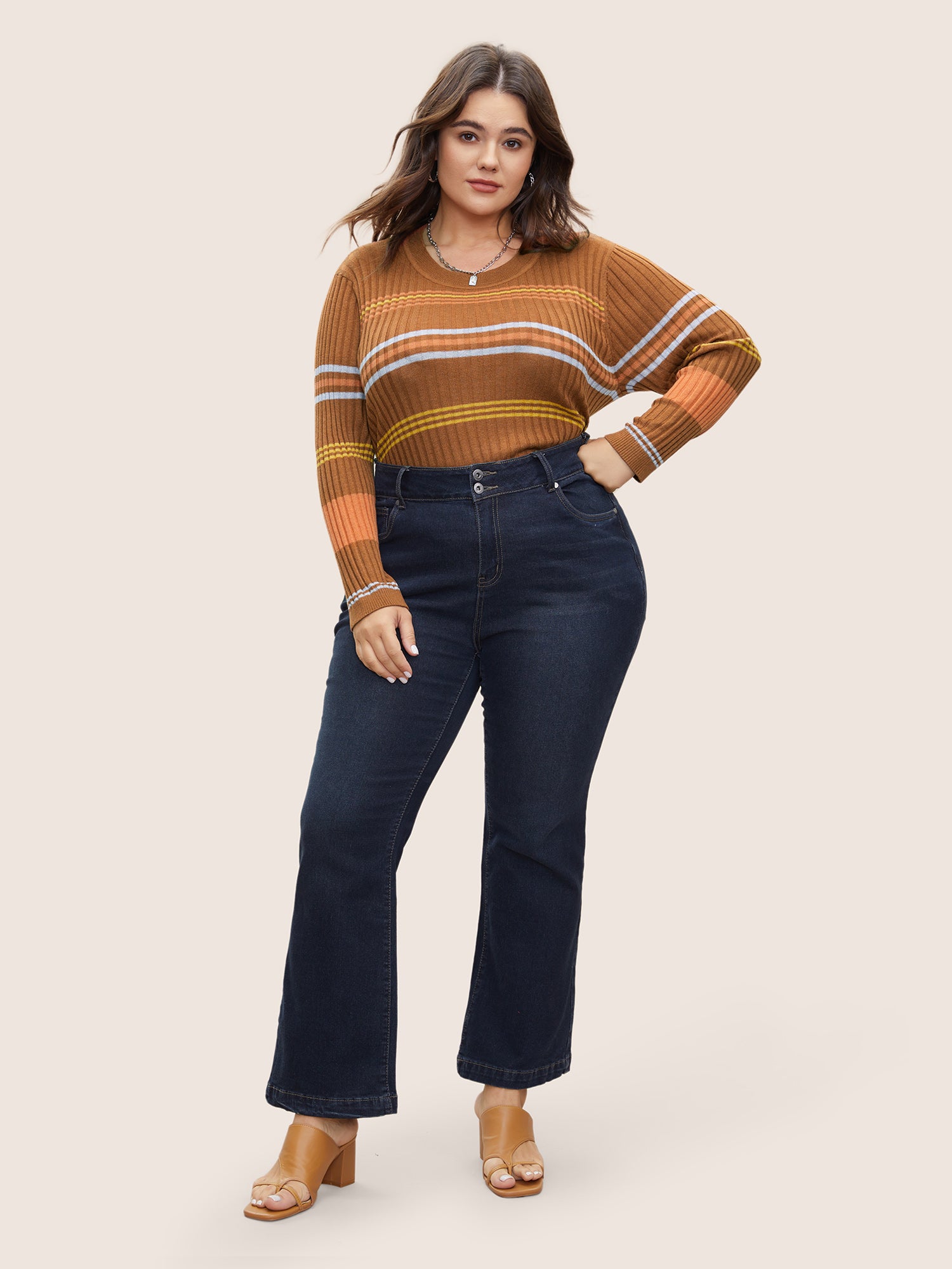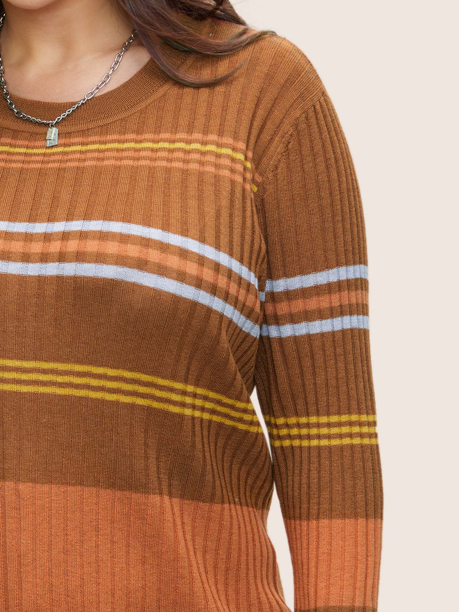 Shop Supersoft Essentials Contrast Striped Pullover now and redefine your style with confidence at BloomChic. Tailored for mid and plus-size women. This trendy Sweaters Cardigans Women, sizes 10-30. Season:Spring;Color:Rust;Neckline:Round Neck;Sleeve Type:Regular Sleeve;Pattern Type:Striped, Colorblock;Pocket:No-pocket;Belt:No-belt