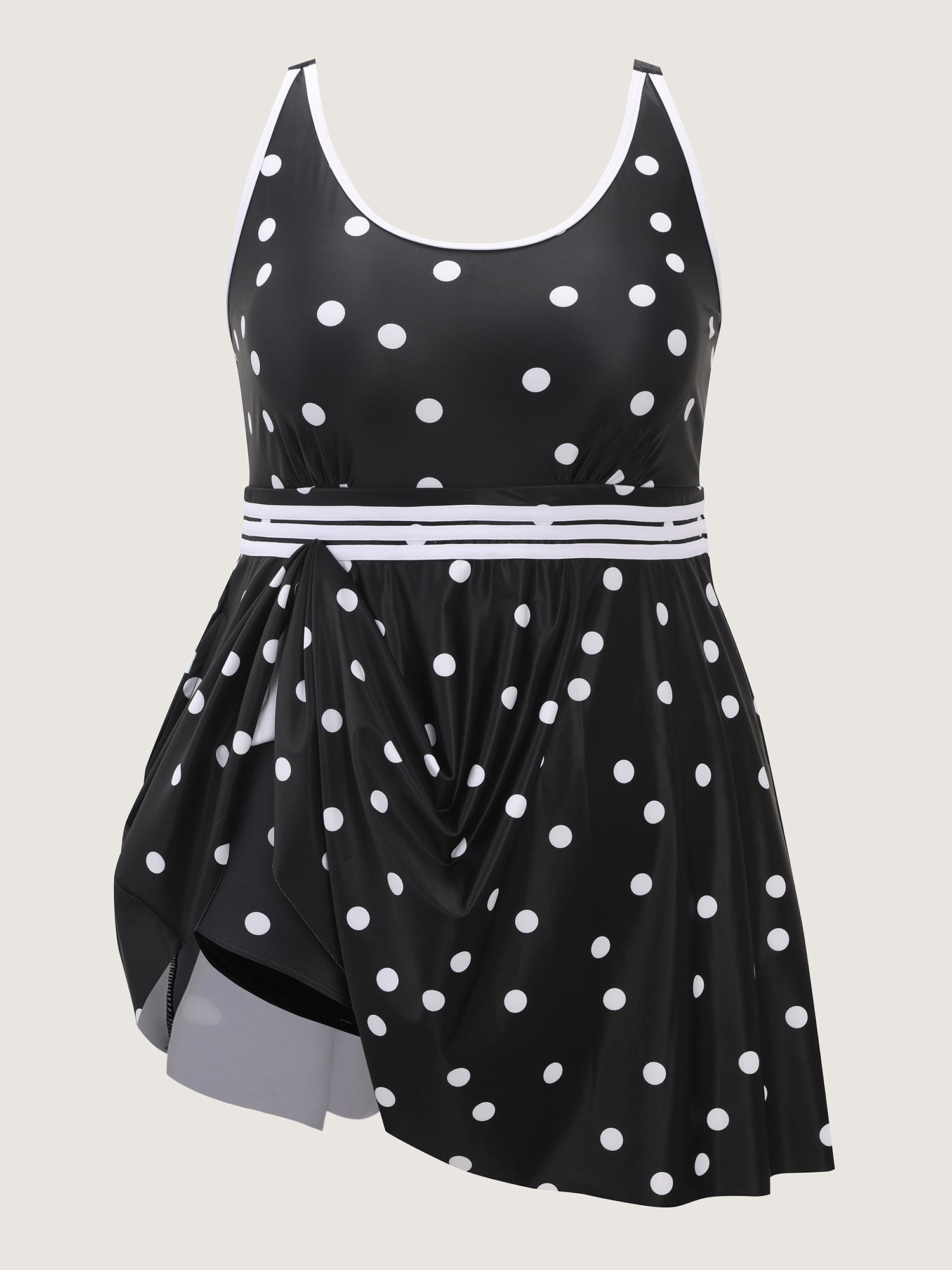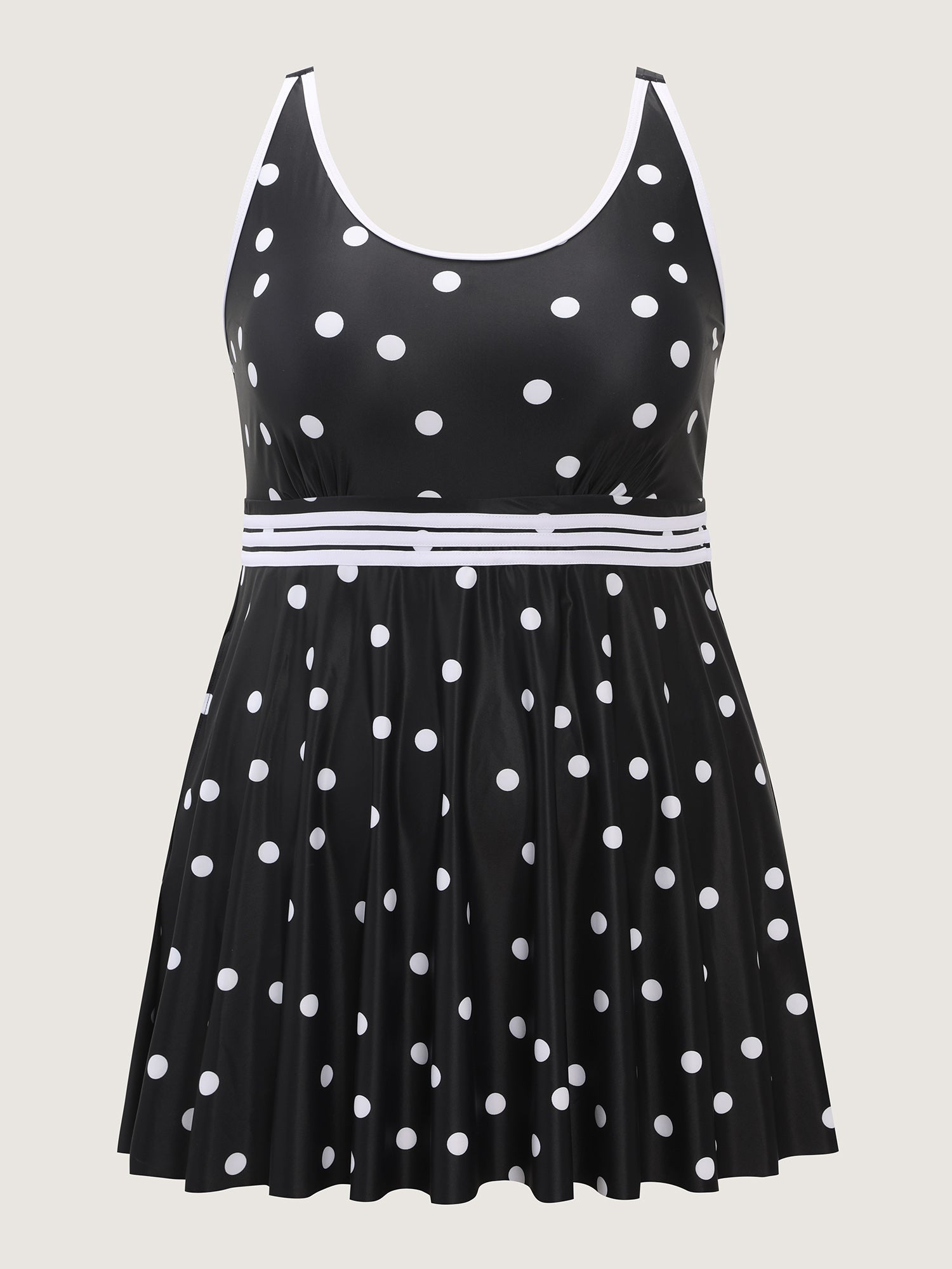 Shop Anti-Float Ties Polka Dot Swim Dress now and redefine your style with confidence at BloomChic. Tailored for mid and plus-size women. This trendy Swimwear Women, sizes 10-30. Color:Black;Style:Resort;Cup Type:Removable cups;Coverage:Full;Neckline:U-neck;Sleeve Type:Sleeveless;Prints:Polka dots;Pocket:Slanted pocket;Belt:No-belt;Chest pad:Removable Padding;Lining:Lining;Closure Type:Non;Structural function:Cinched & Flared,Adaptive-Fit,Anti-Float Ties;One-piece or split swim dresses:Built-in bottoms;Swimsuit types:Built-in Bikini Dress;Functional Fabric:UPF 50 Sun Protection