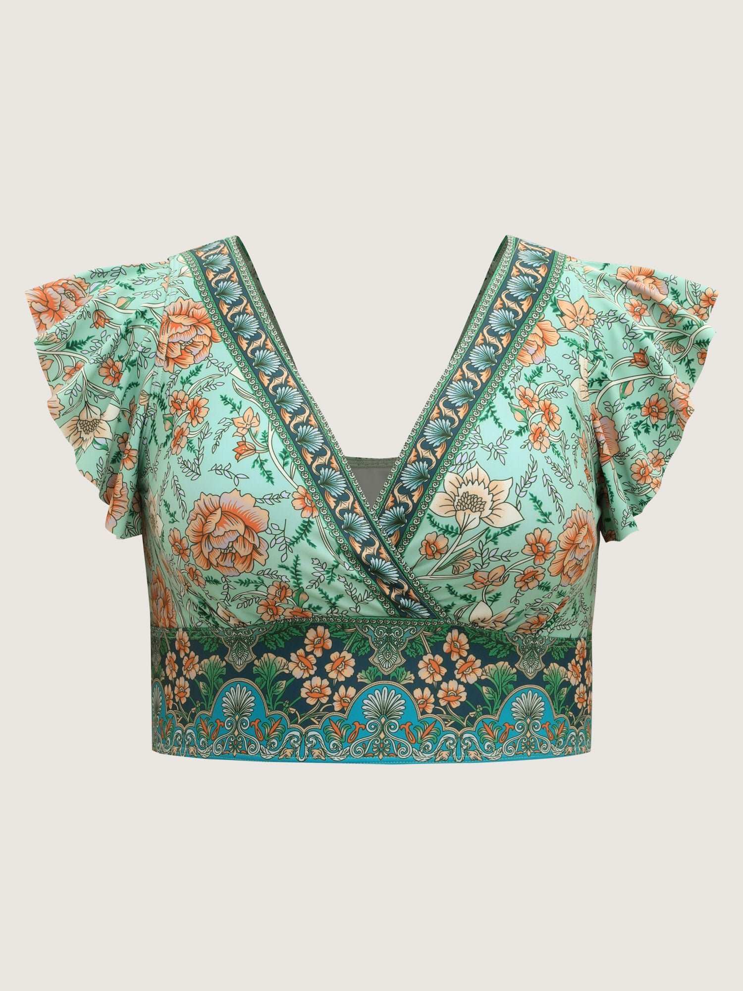 Breezy Floral Print Ruffled Swim Top